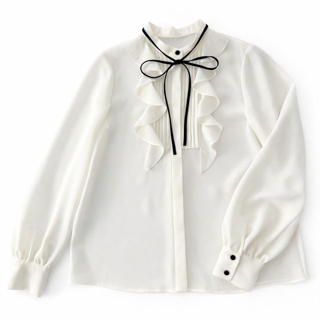 フロントタック 配色ナローボウタイフリルブラウス《PASSIONE パシオーネ》