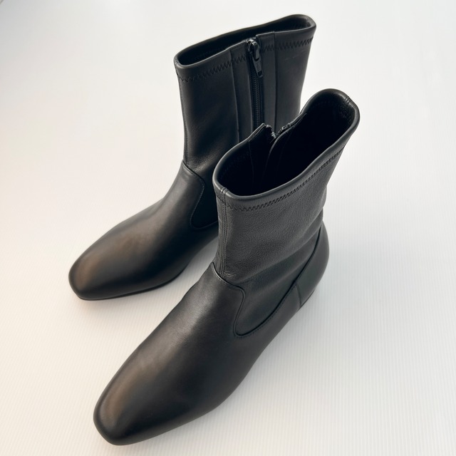 ストレッチショートブーツ《 BARCLAY バークレー》 ・ソフトスクエアなつま先が上品なストレッチブーツです。 ・しなやかな革がフィットしてくれて 脚をキレイにみせてくれます。 ・ミニマルなデザインのヒールタイプは どんなスタイリングにもマッチしてくれる万能な一足。 〔素材〕表(牛革×羊革) 裏(生地/人工皮革(抗菌・防臭機能)) 中敷素材(合皮※半敷(抗菌・防臭機能)) ソール素材(合成ゴム) 〔カラー〕ブラック 〔サイズ〕22.5/24.0 (㎝) 〔靴幅〕2E 〔ヒール〕ローヒール - BARCLAY - こだわりは「ニッポン発 知的上質感」。 凛としたトラディショナルスタイルをベースに コテンポラリーなトレンドを程よくミックス 上質素材を活かしたデザインが足もとを美しく飾ります。 自社ファクトリーで100年近く続いた靴づくり。 「ファッション×ファンクション(機能性)」をキーワードに ニッポン女性の足を知り尽くした手練れの職人が 一足一足大切にお作りしています。 Made in Kobe,Nipponnの快適な履き心地をお愉しみください。 Casablancaは BARCLAY 正規取扱店です。 *ご購入前に* ABOUT(ショップ情報)をご一読頂きますようお願いいたします。 https://casablancamt.base.shop/about