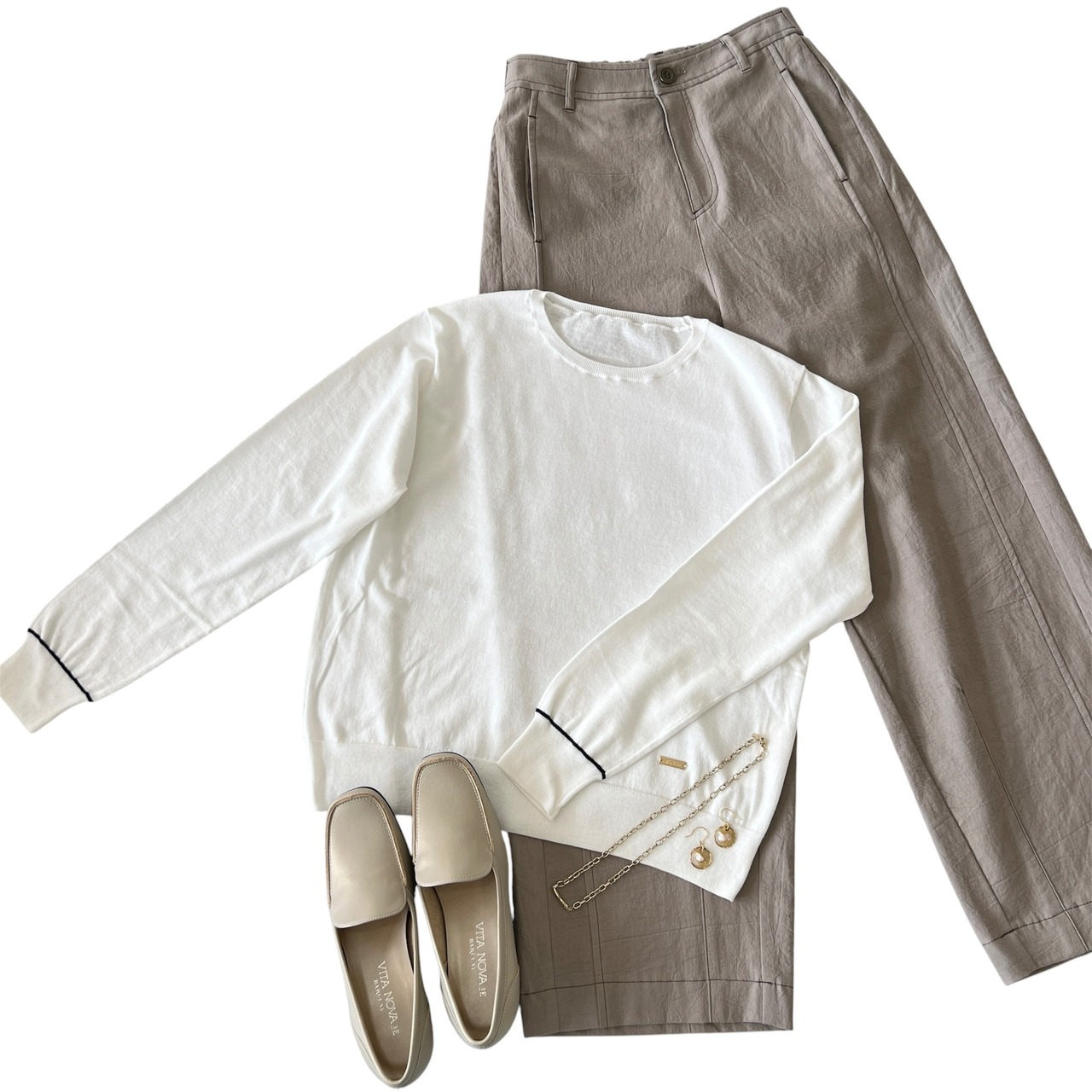 袖口ライン クルーネックニット《Pizzo Bianco ピッツオ ビアンコ》