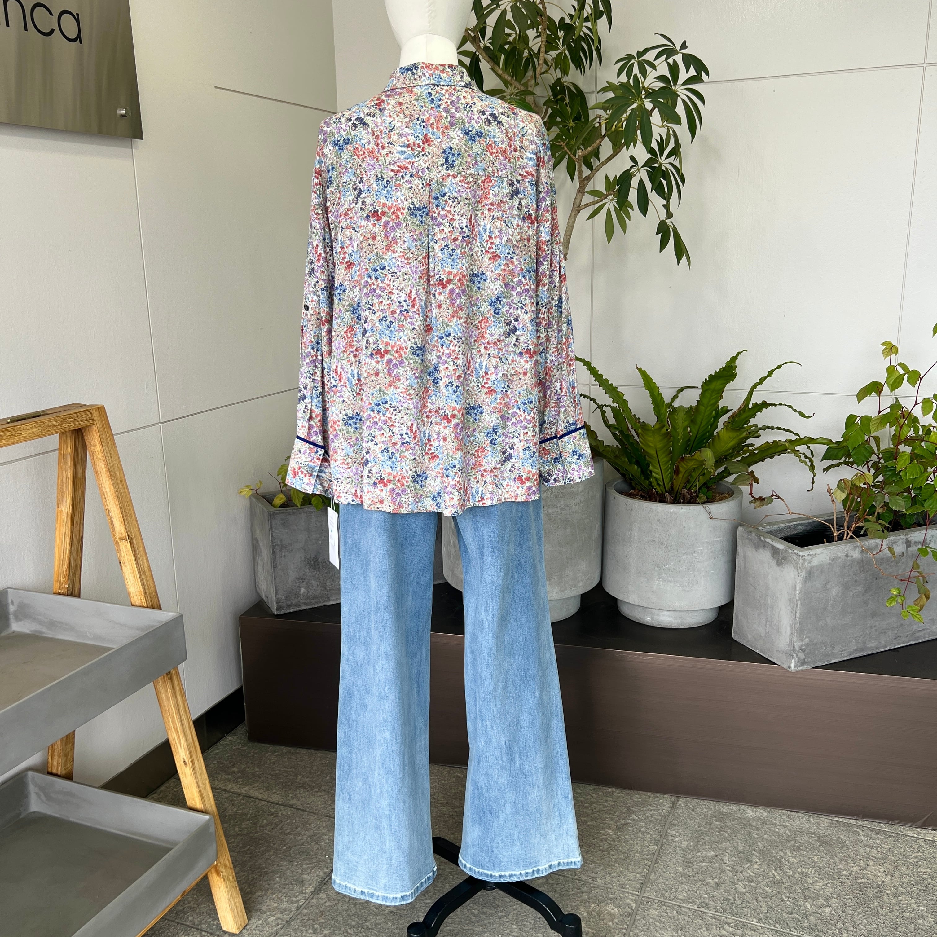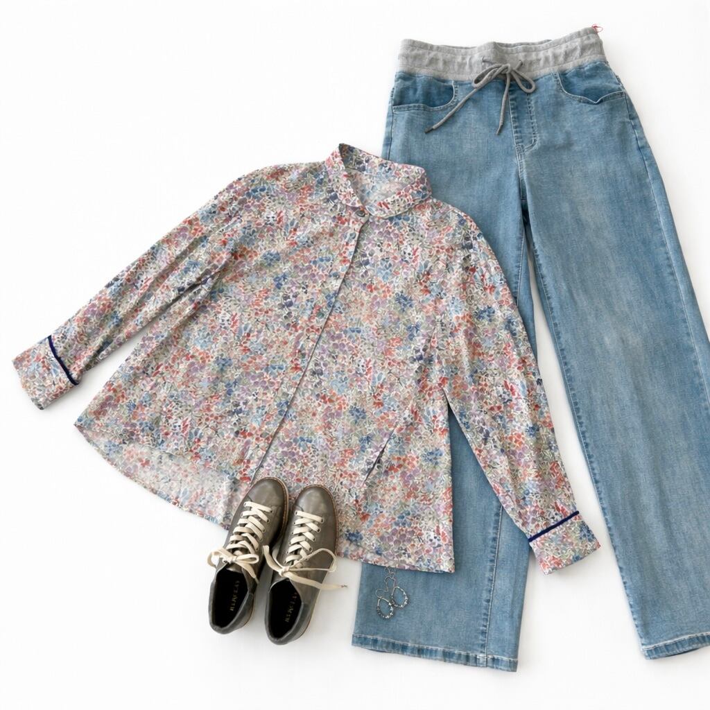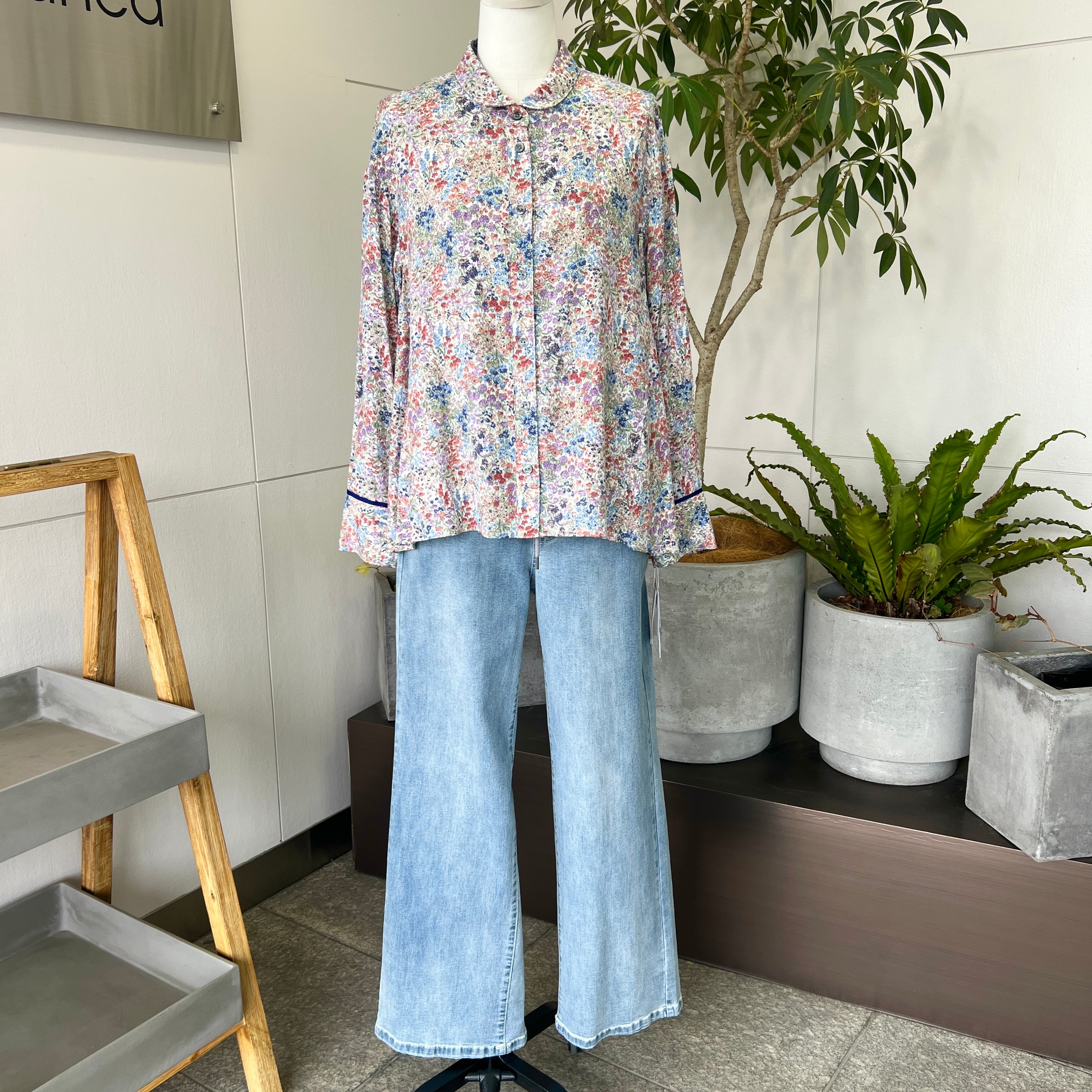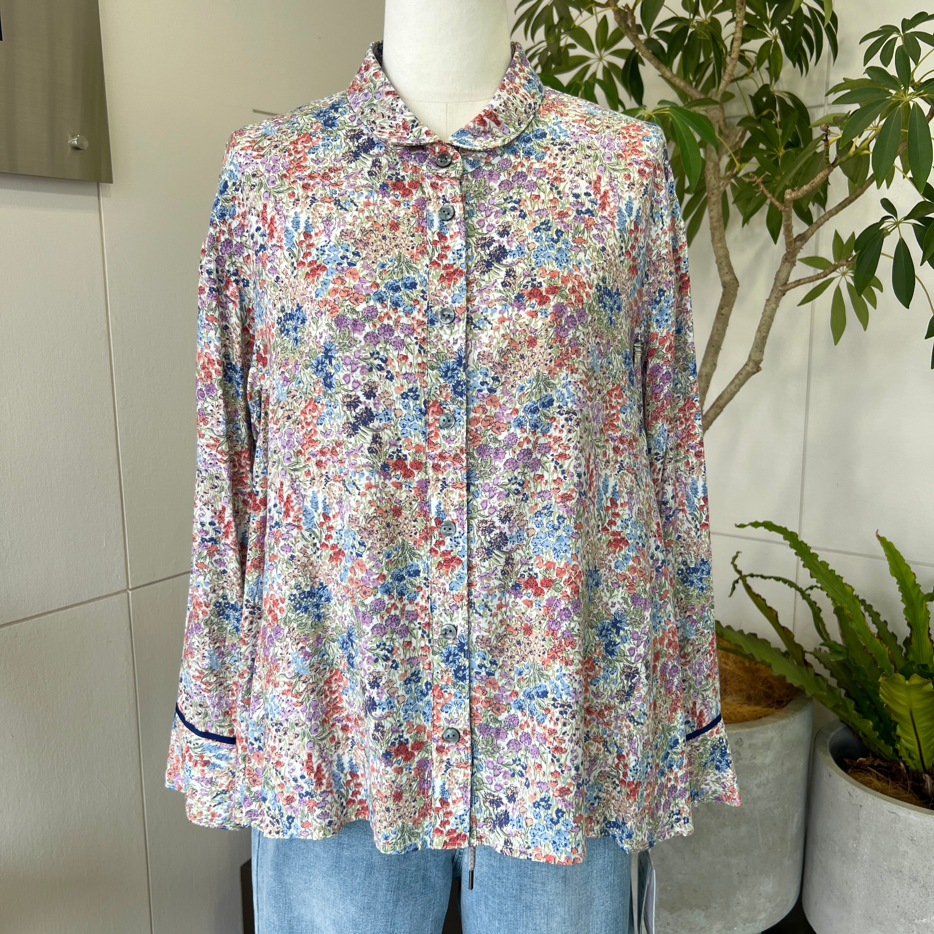 ・フラワープリントがポイントのチビ襟ブラウスです。