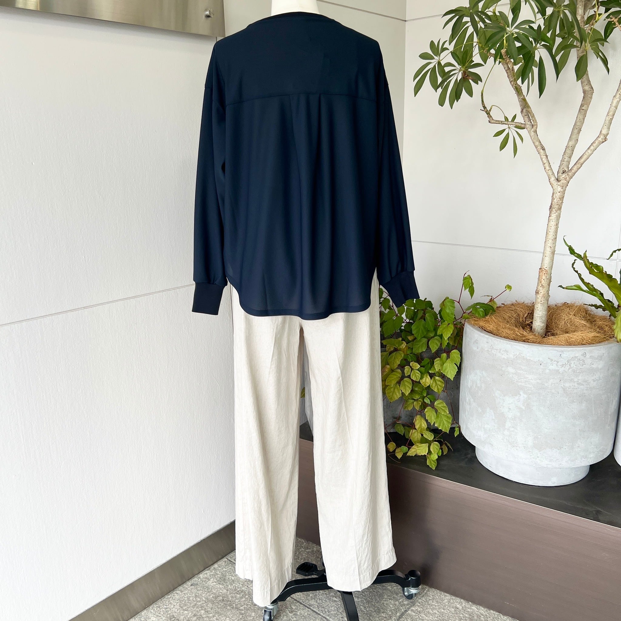 ・箔プリントとさらりとしたブラウス素材が上品見えするポイントで大人カジュアルにお洒落なプルオーバーです。