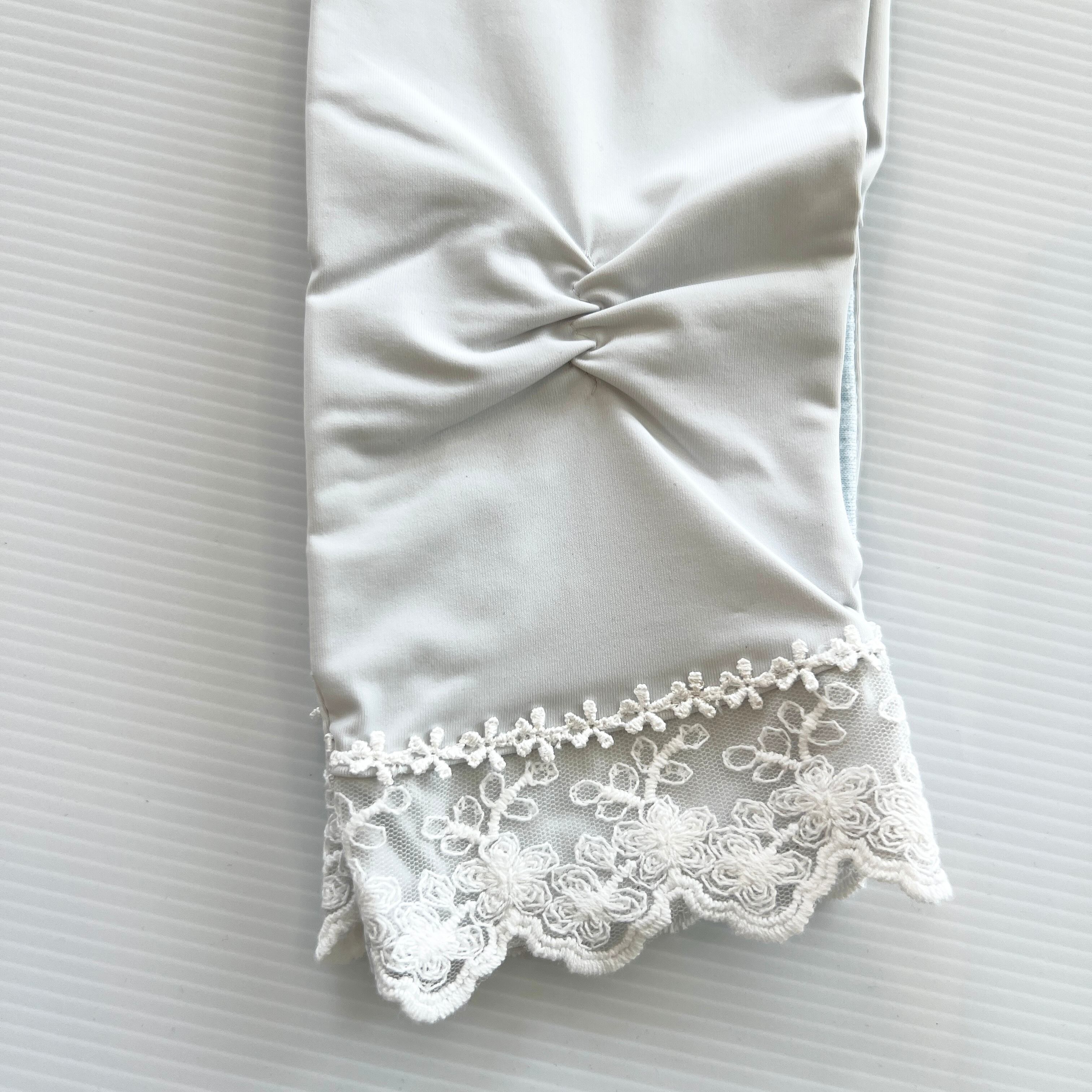 ・レースの割合を少なくし、手の甲にギャザーをアクセント。少しレースを抑えたい方のために、アームカバー初心者や、幅広い層にお使いいただけるアイテムです。