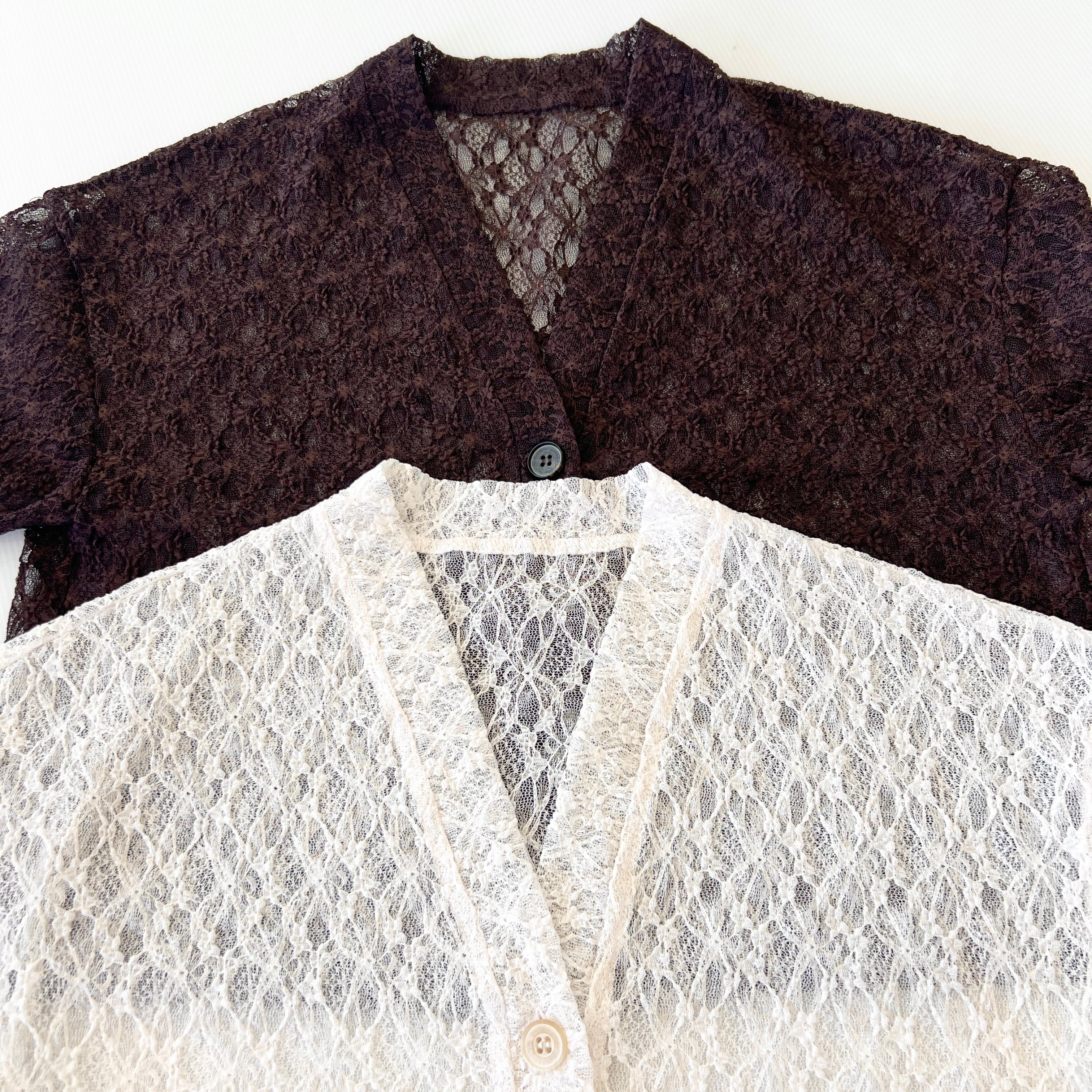 ・繊細な透け感が着映え効果抜群の総レースカーディガンです。