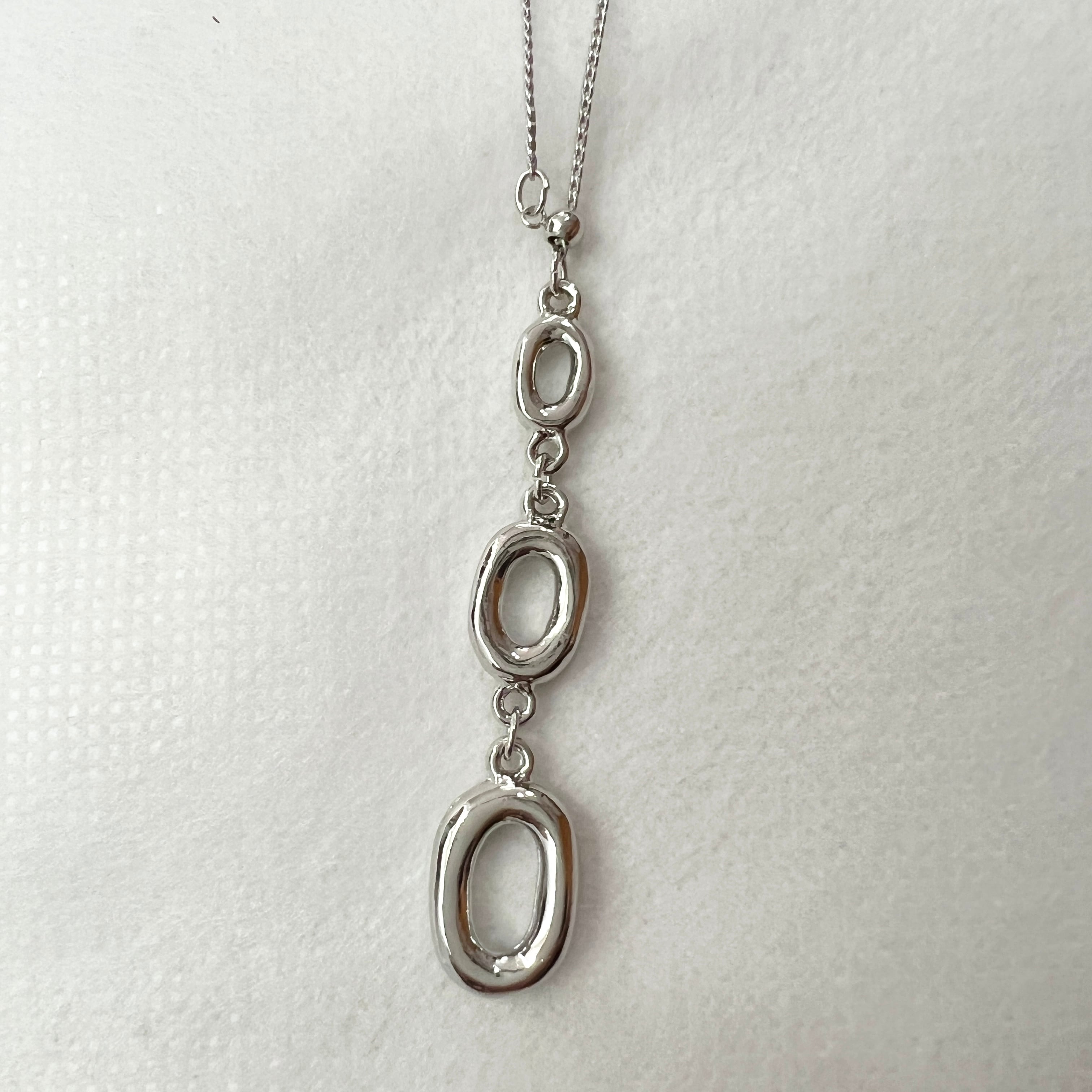 ・縦ラインですっきり魅せる 大きさの違う三連のサークルのチャームがポイントのネックレスです。