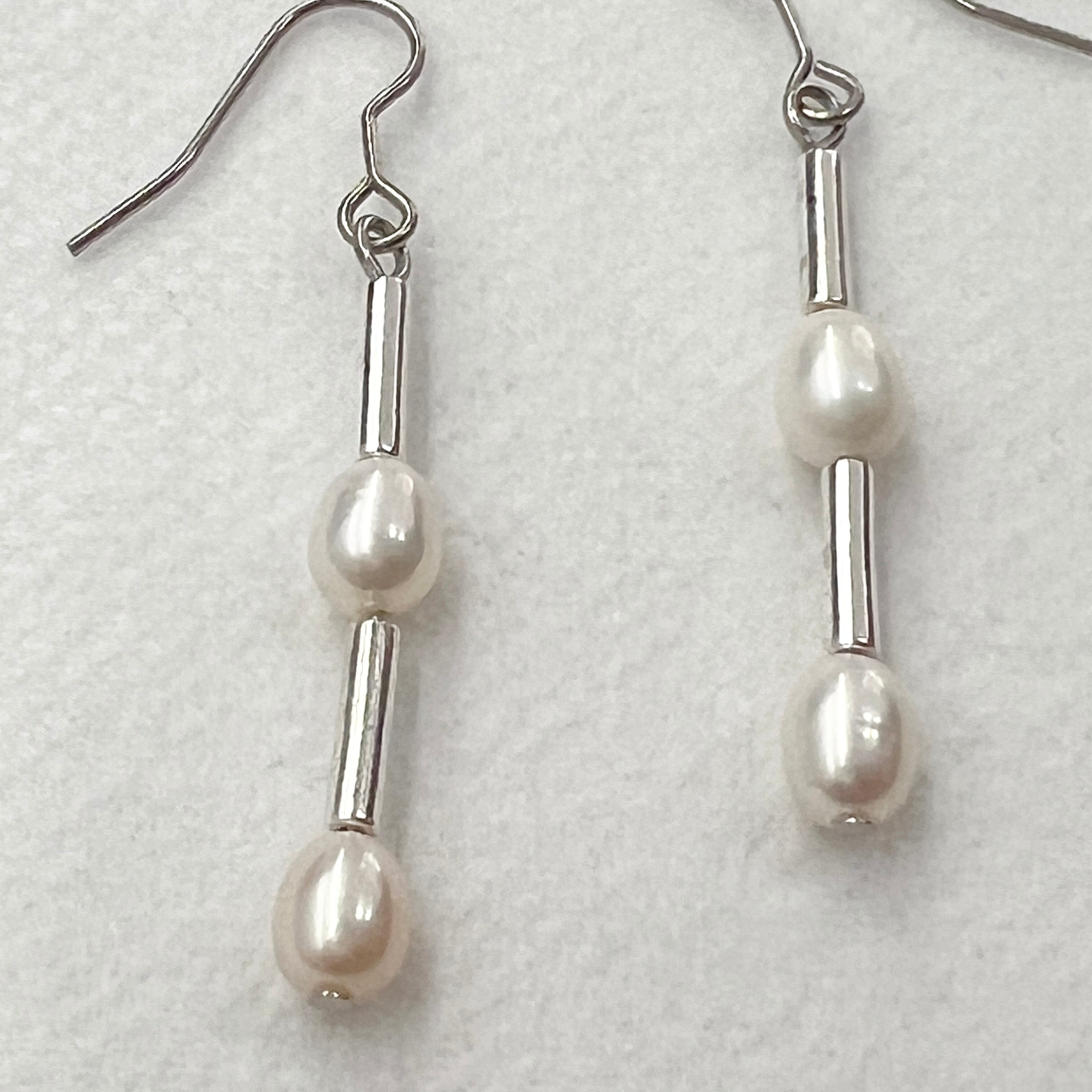 ・ガラスビーズと淡水パールビーズを交互にあしらったピアスです。