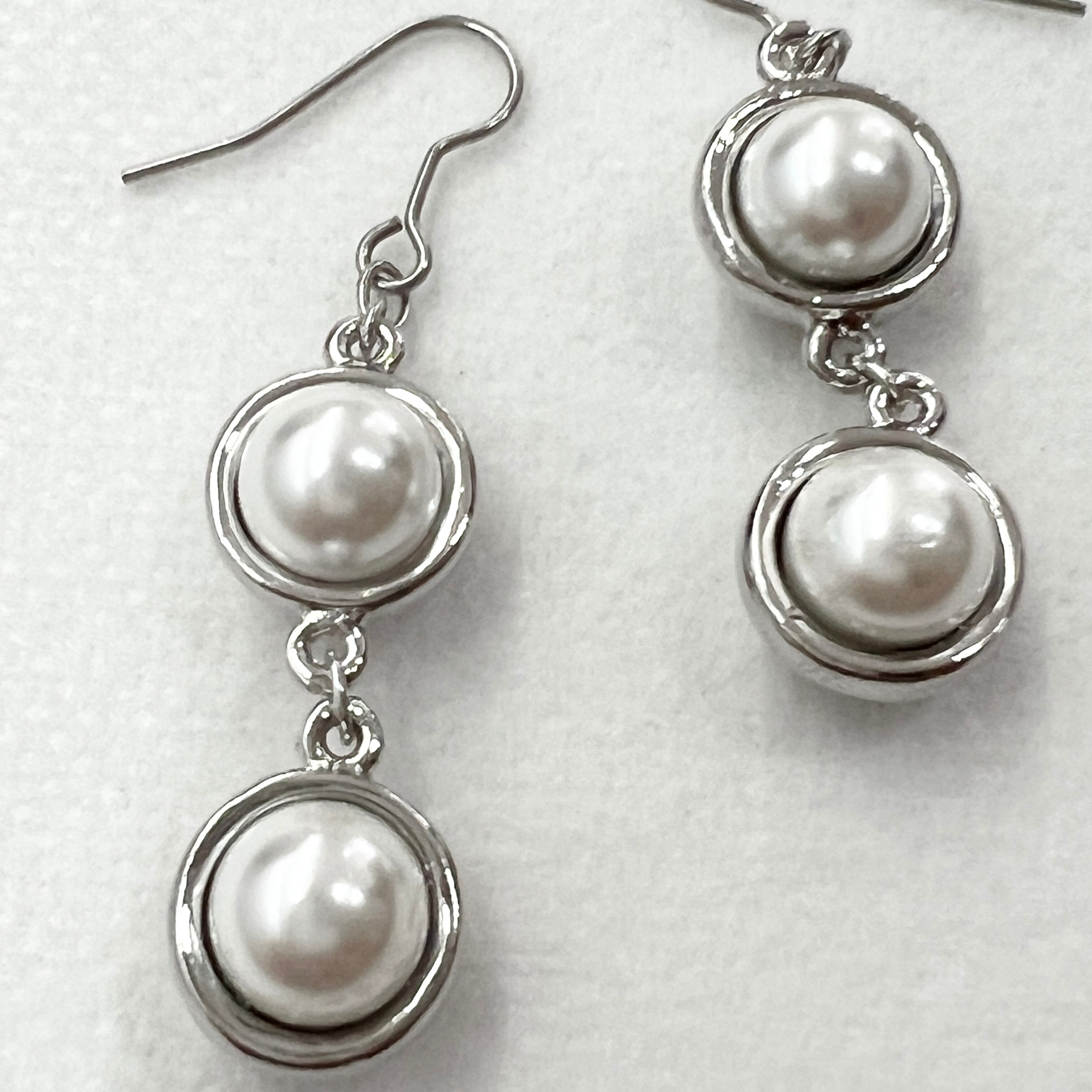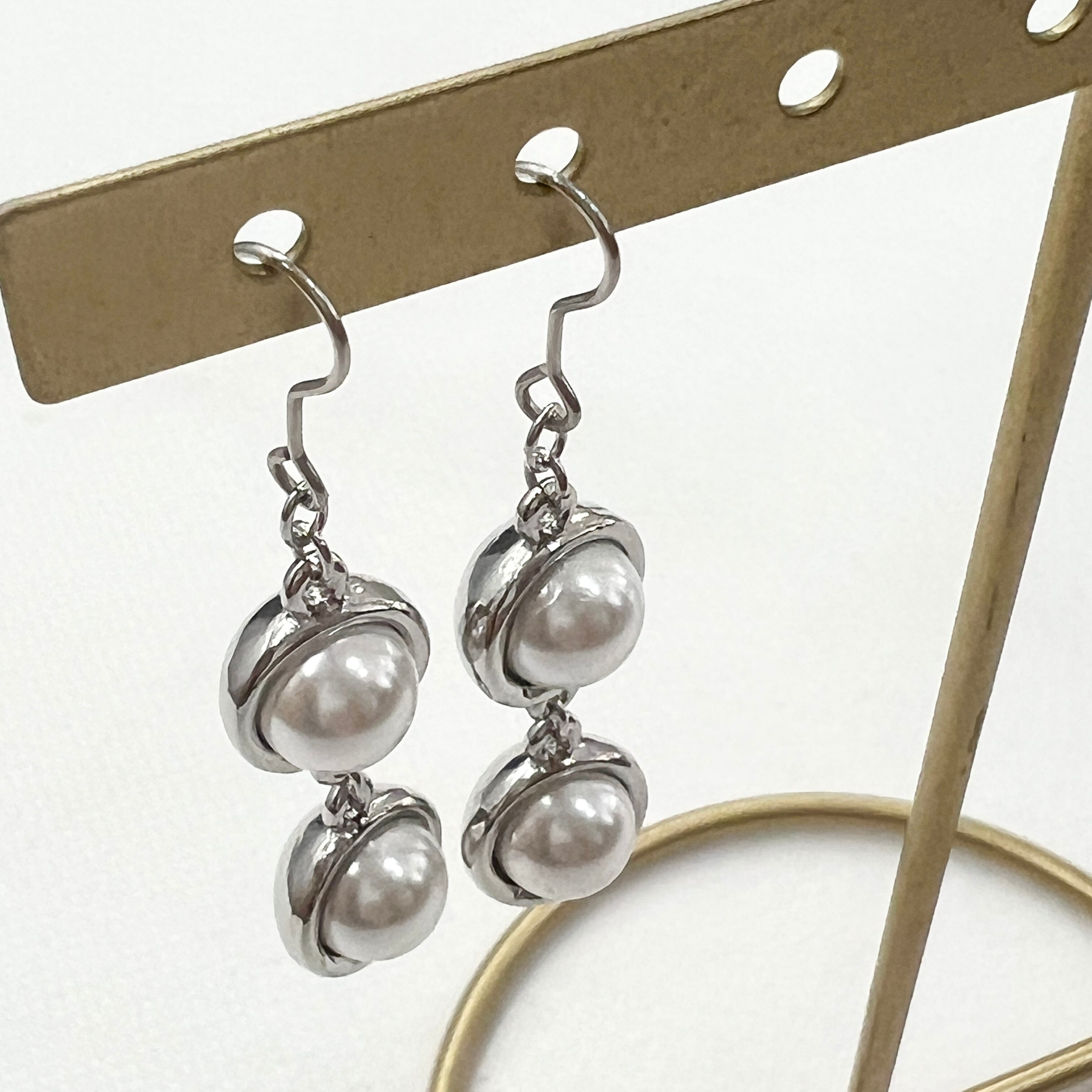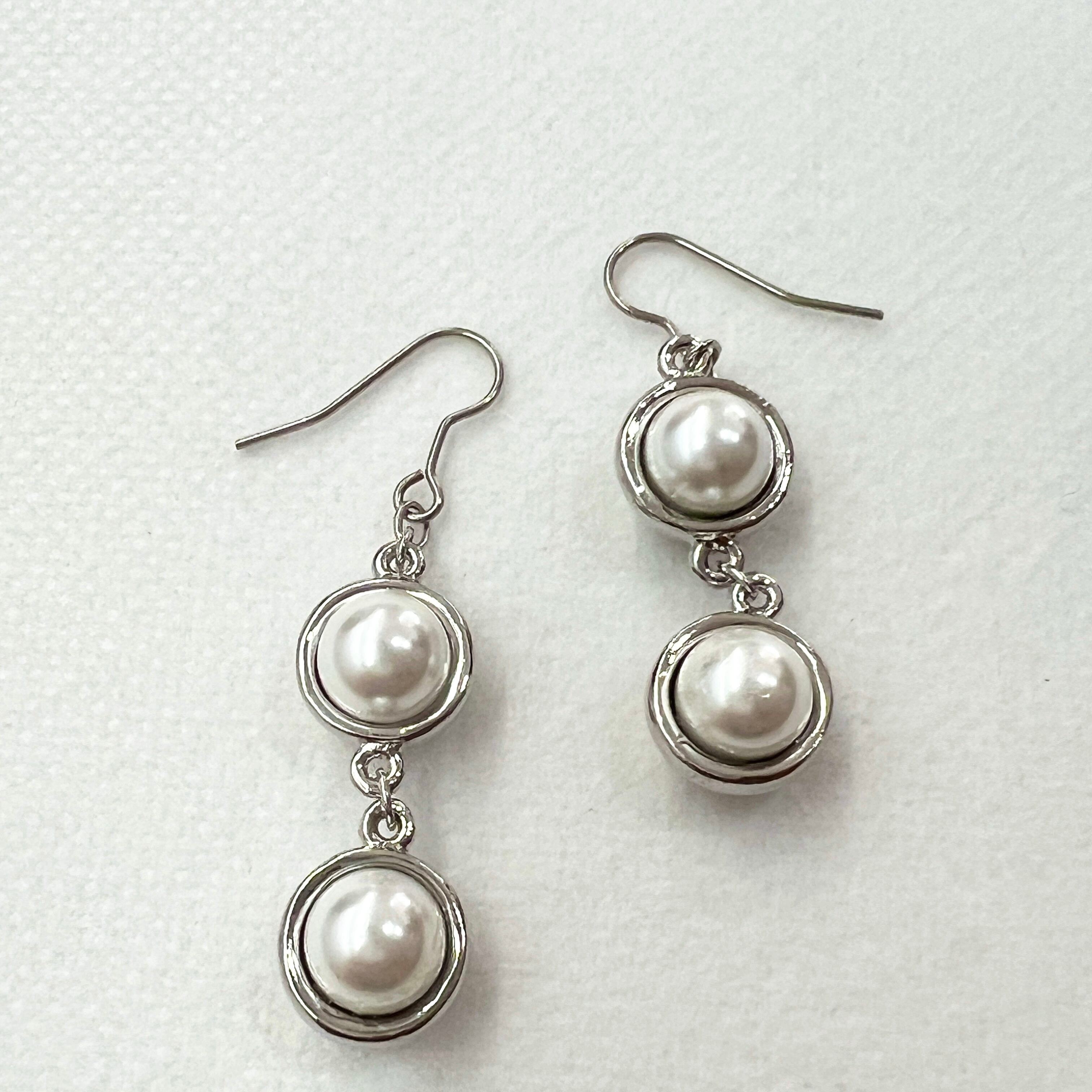 ・パールをシルバーでカバーした丸い二連のお洒落なピアスです