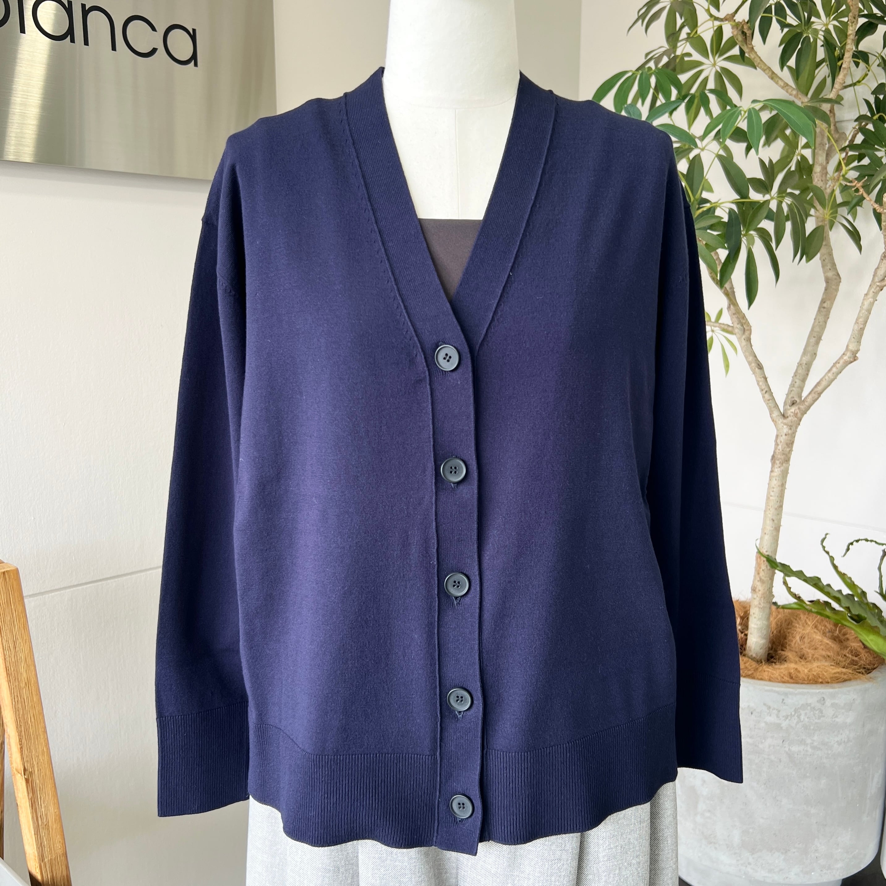 ・Vネックで釦をしめてプルオーバ風に・釦をあけて気軽に羽織れるカーディガンです。