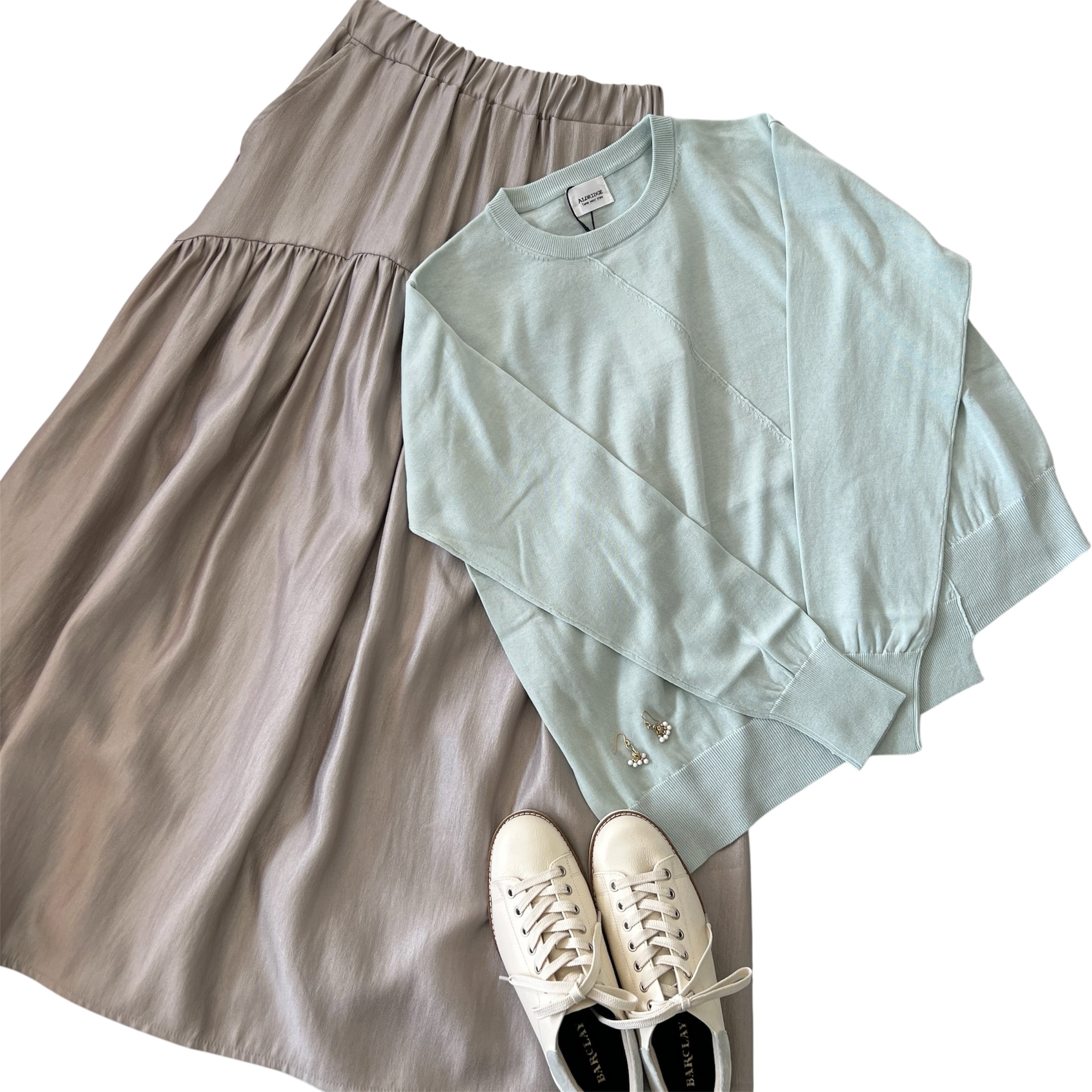 ・ラメ入りのハリのある布帛素材で上品みえする一枚です。