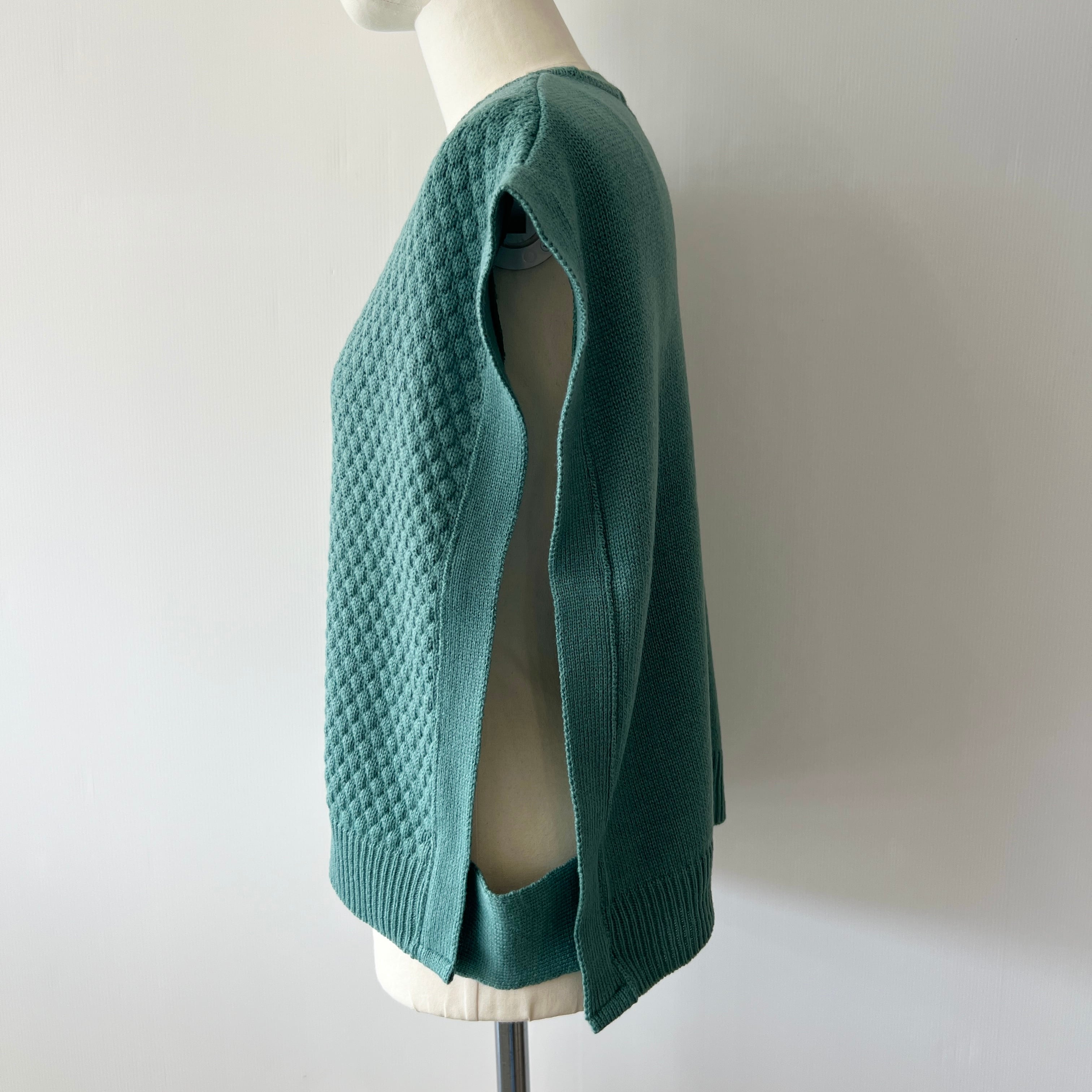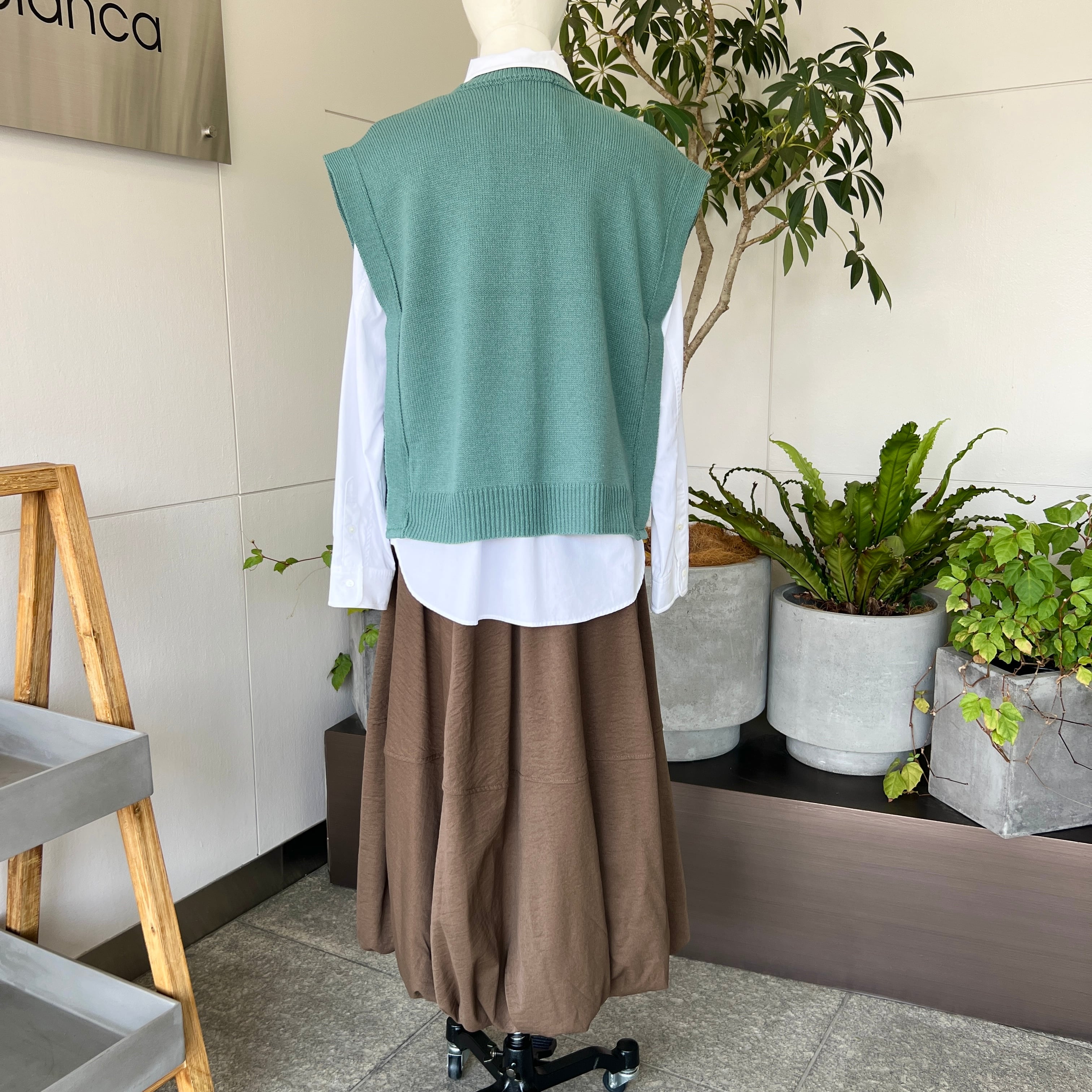 ・ハチの巣柄の編み目がポイントのニットベストです。