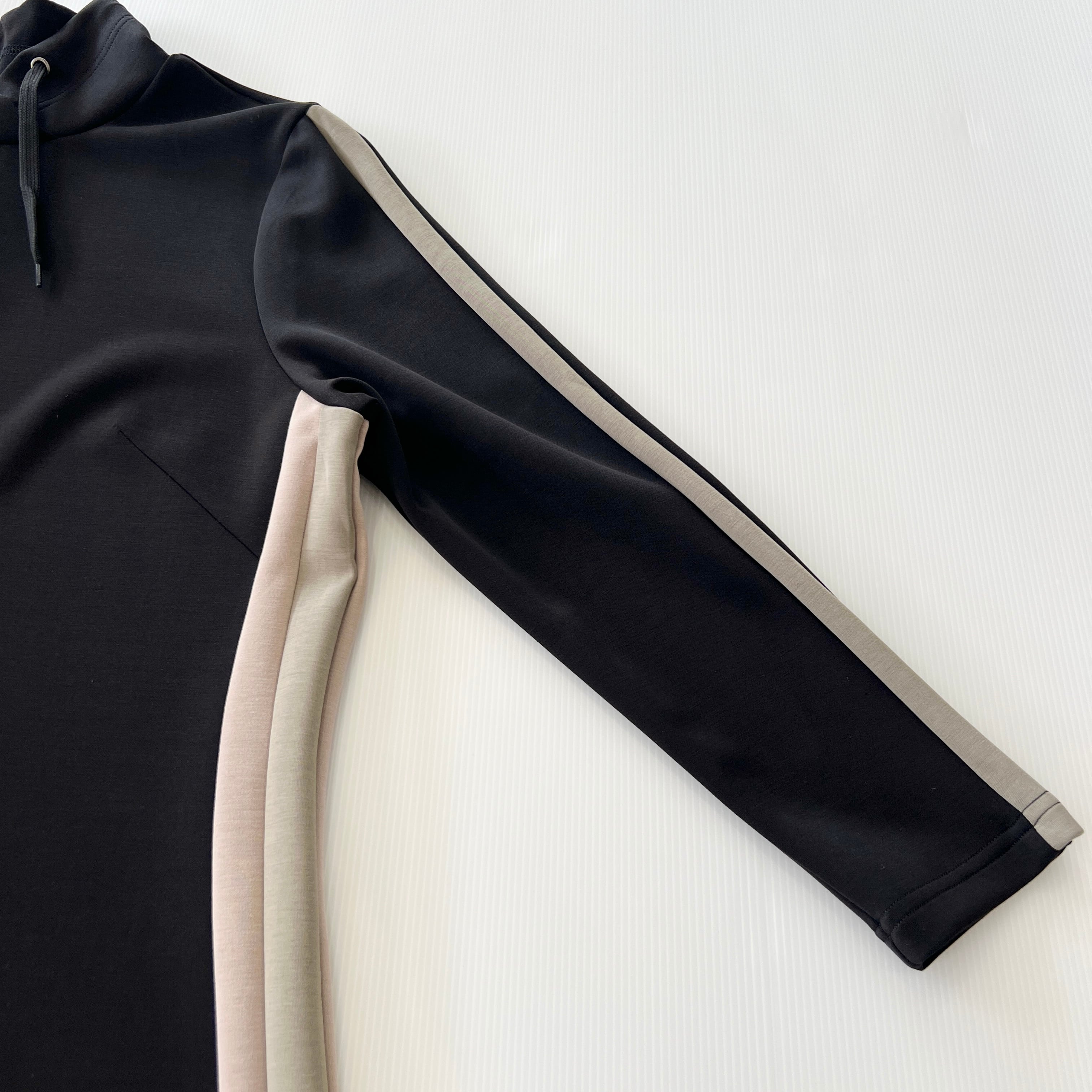 ・配色切替ラインとフーディ風のスタンドカラーがポイントです。