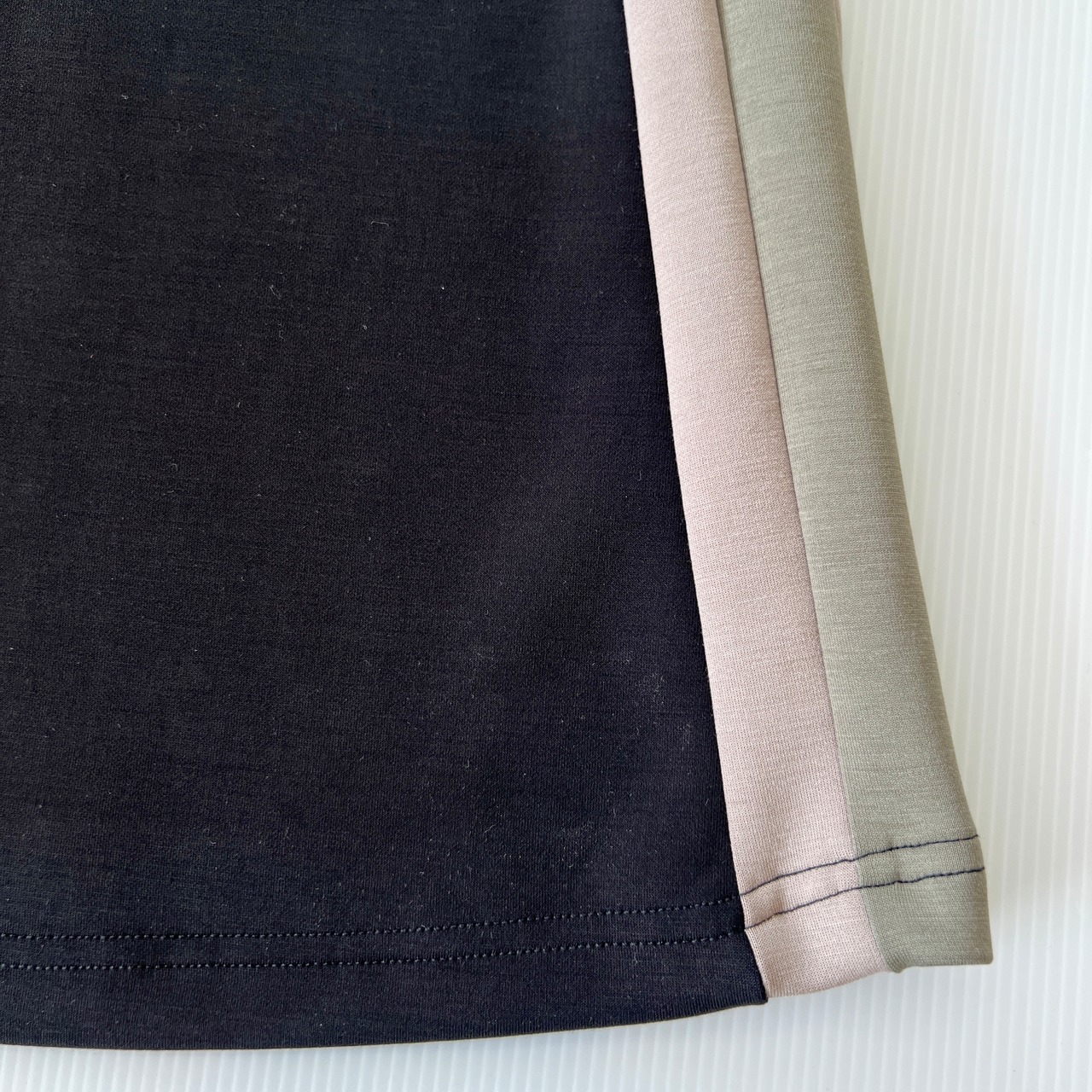 ・やわらかいポンチ素材の配色切替のラインがお洒落なワンピースです。