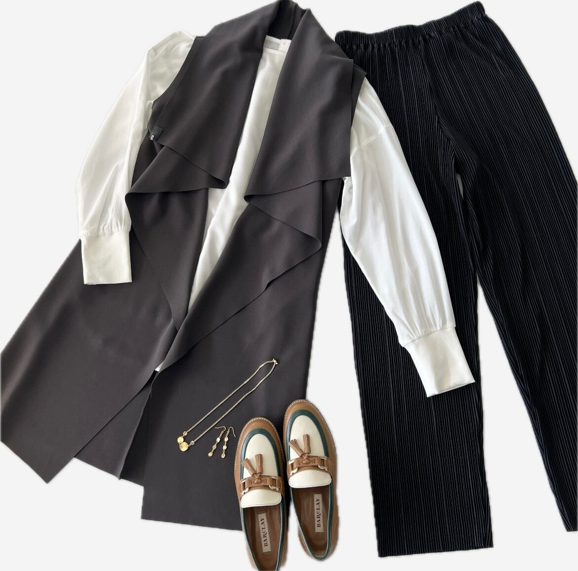 ・プリーツなので かなりストレッチ性がありはき心地楽チンなのに きれいめな印象のパンツです。
