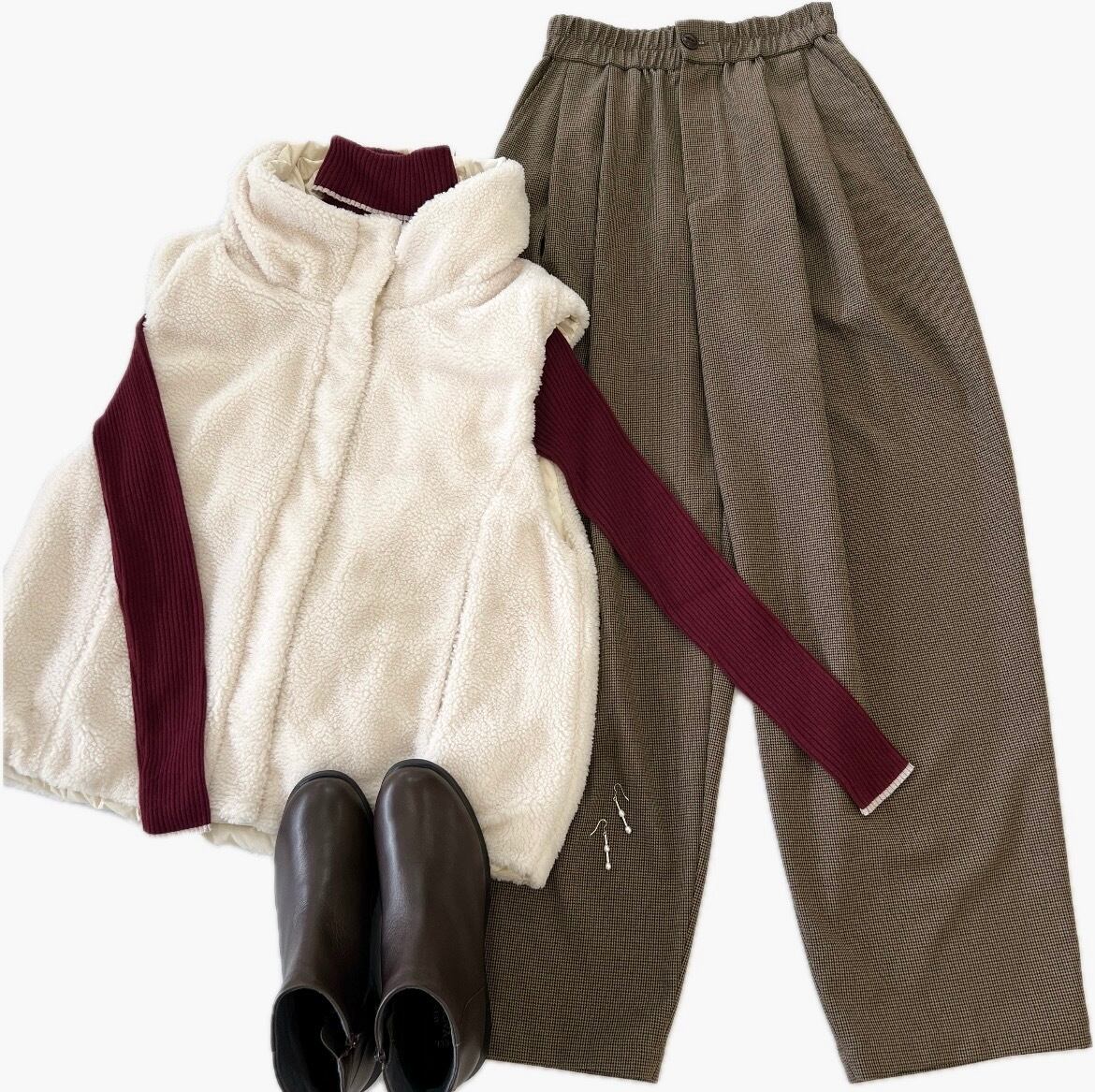 ・千鳥格子のチェック柄で丸いシルエットがポイントです。