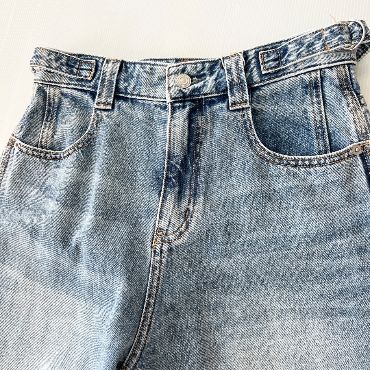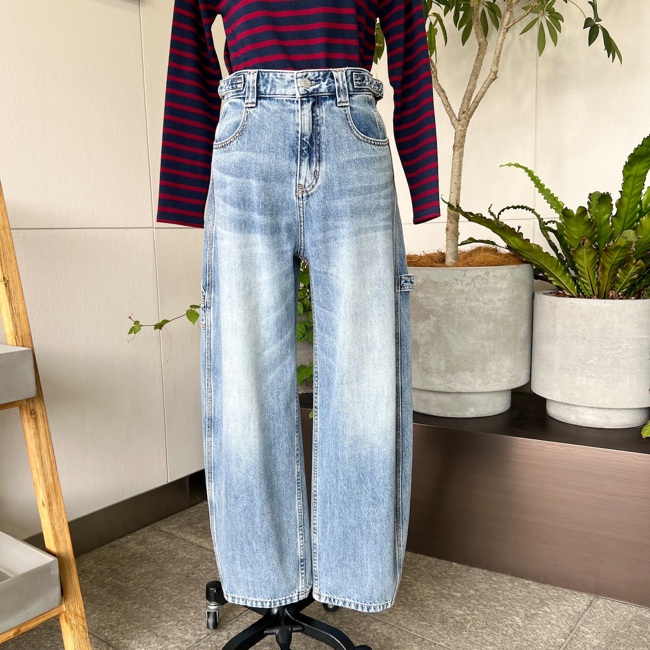 ・大き目ポケットとコクーンシルエットがきれいなワイドデニムです。