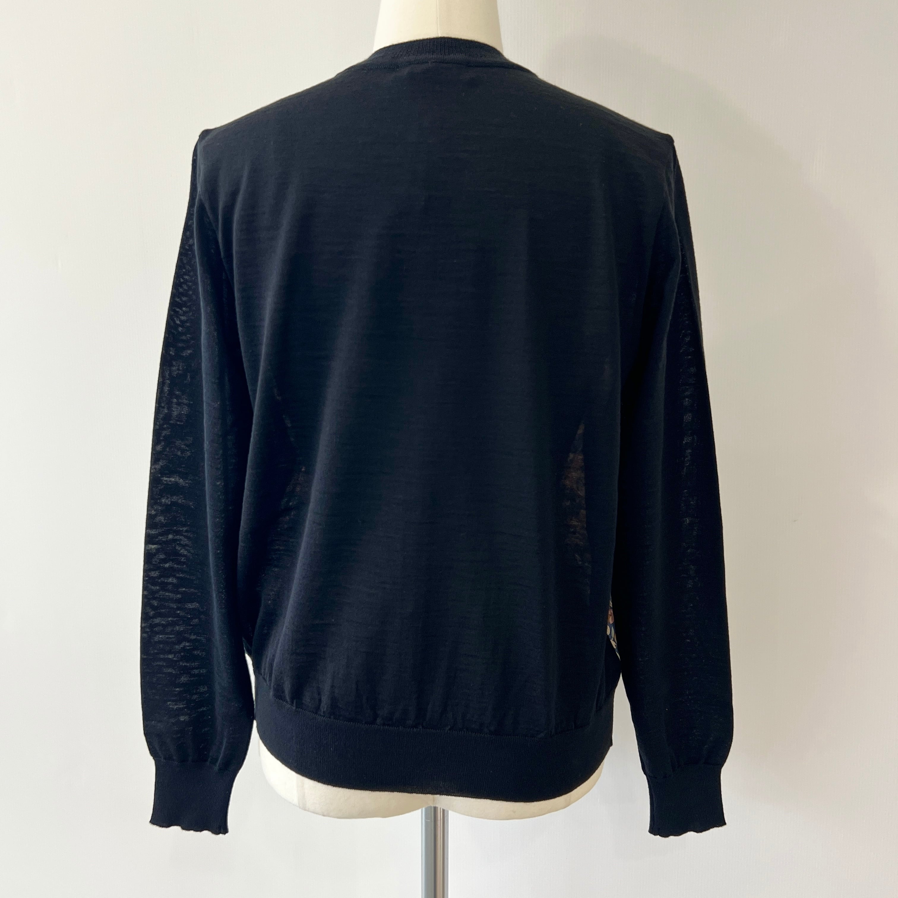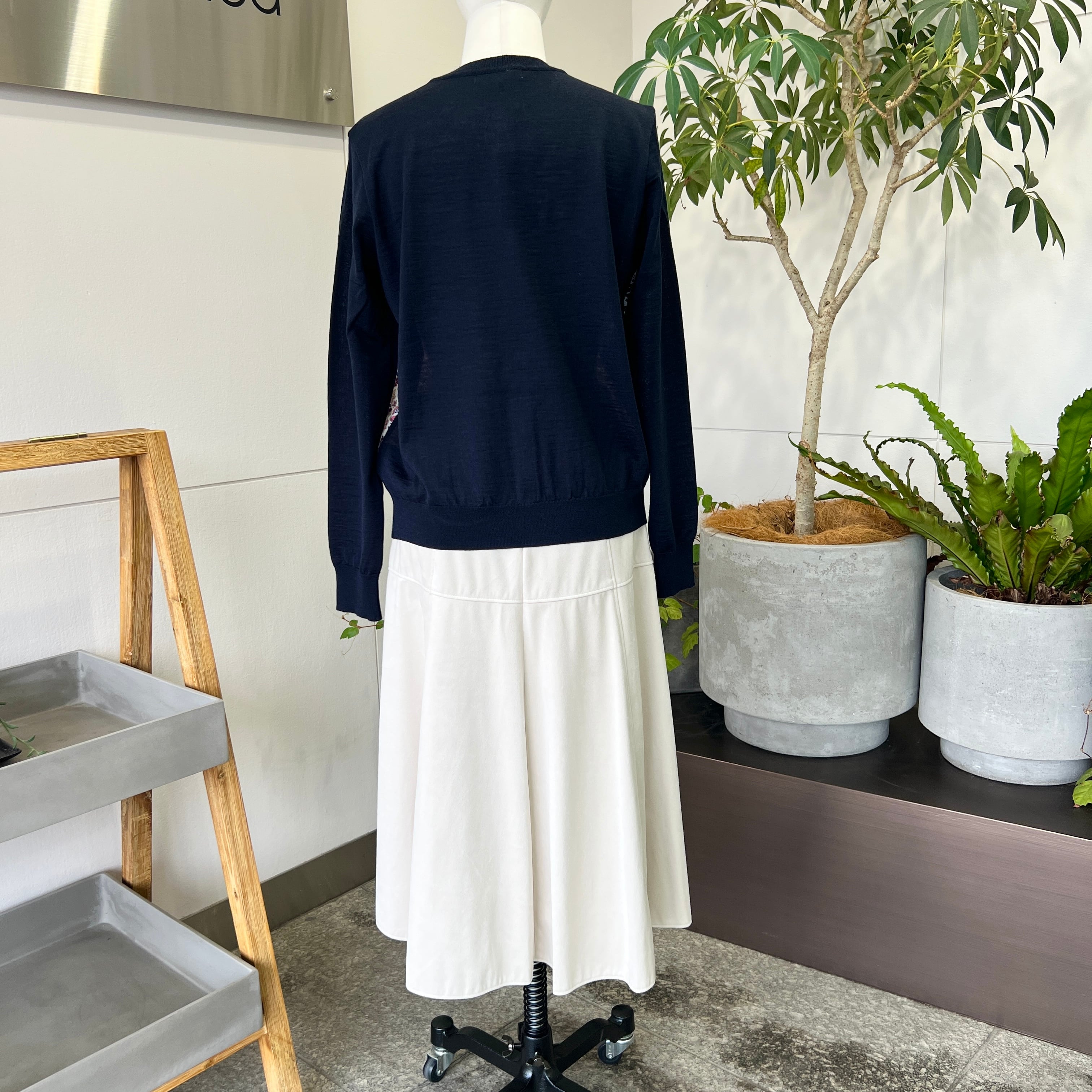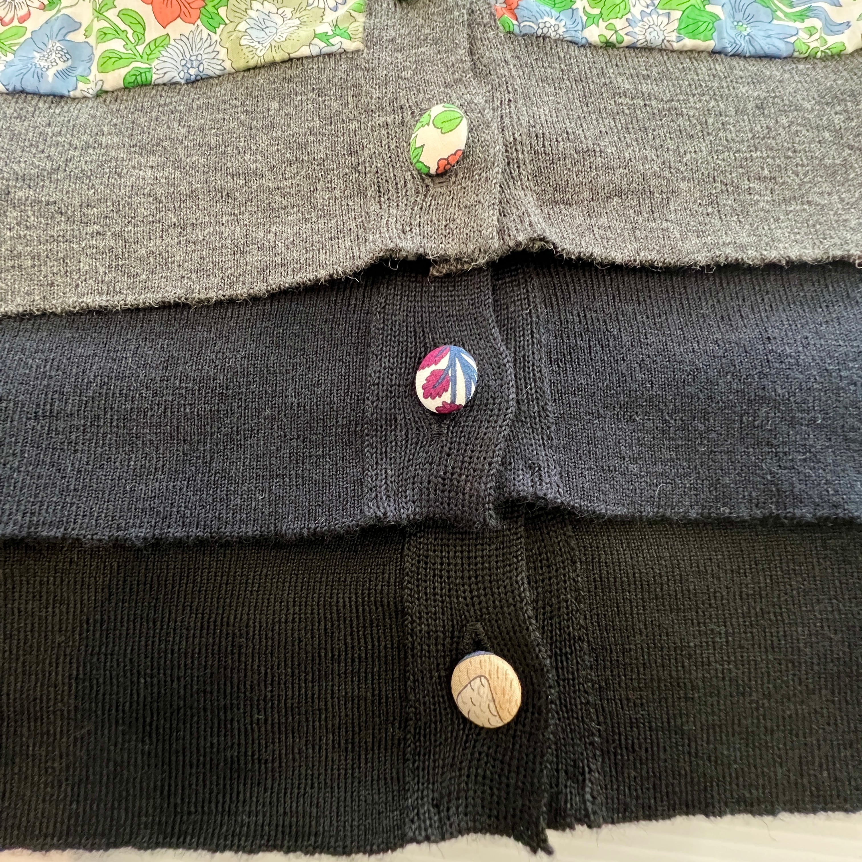 ・リバティプリント×ウール混ニットのドッキングカーディガンです。
