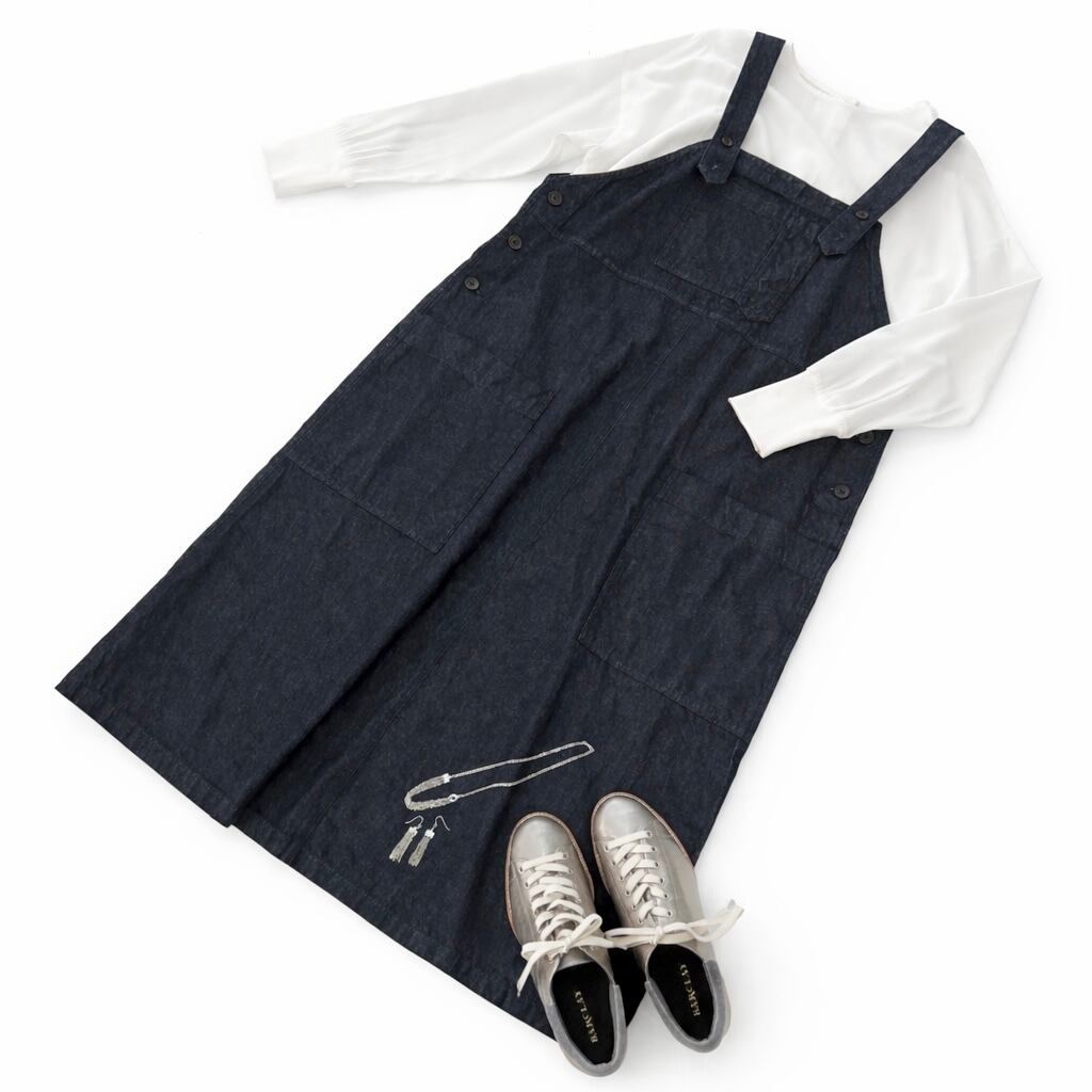・サラウェアのデニムはクタっとした風合いで柔らかくしなやかなので分量のあるサロペットタイプも軽い着心地です。