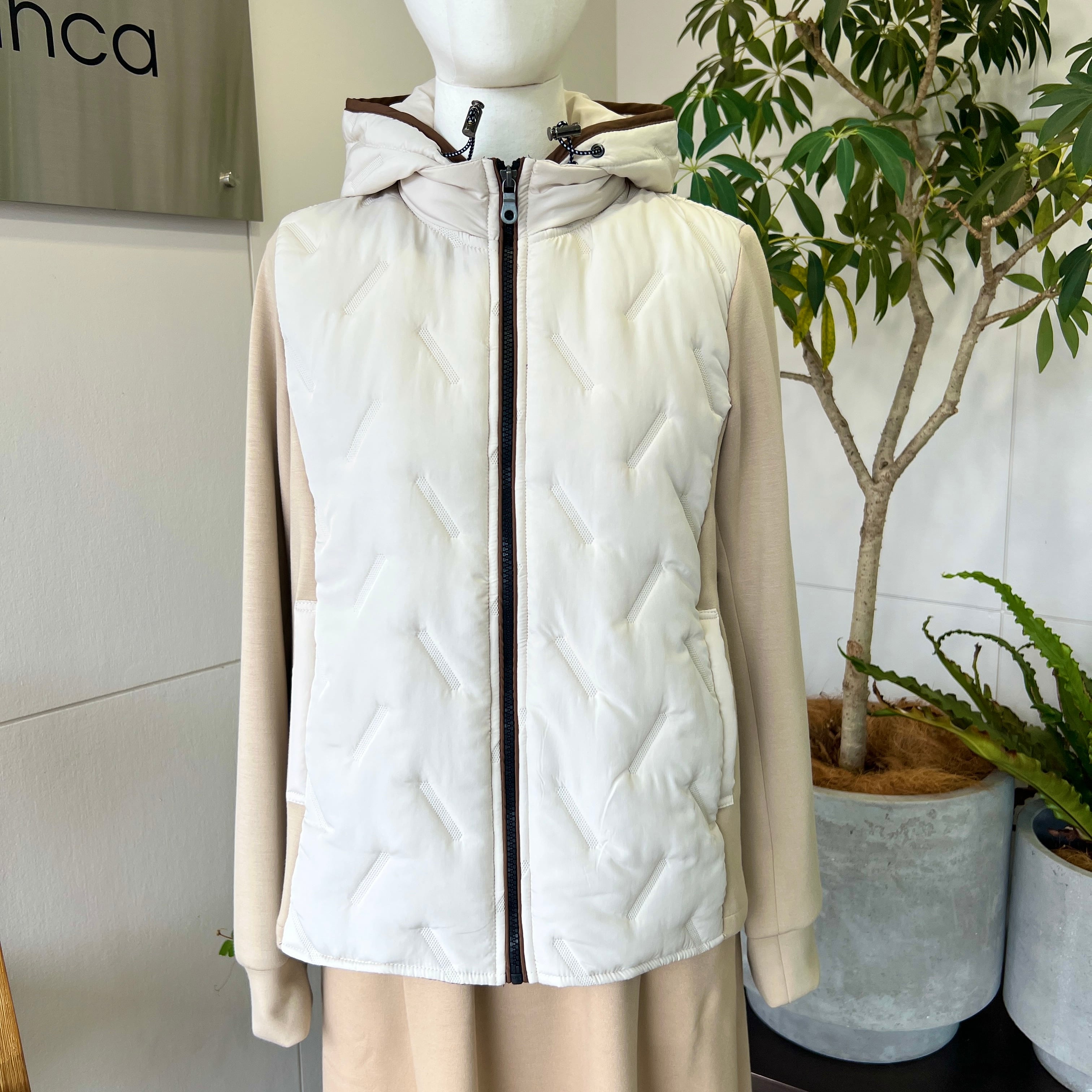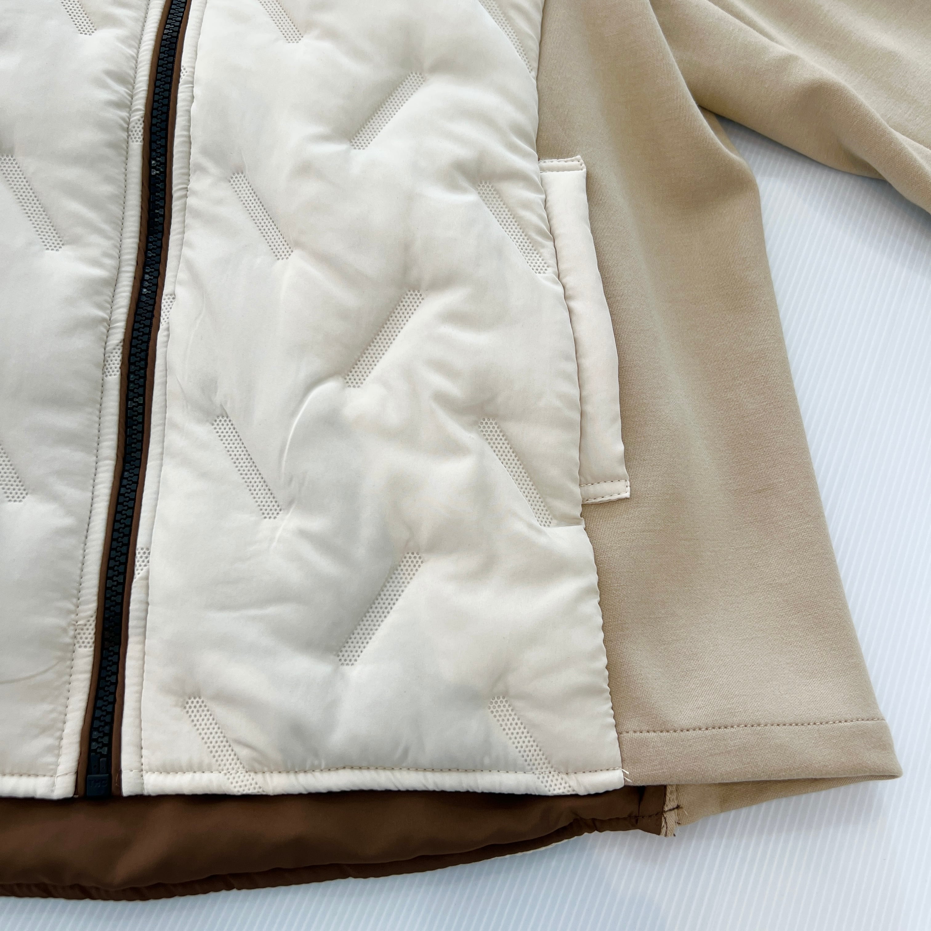 ・中綿入りの素材とポンチ素材のドッキングがお洒落なジップブルゾンです。