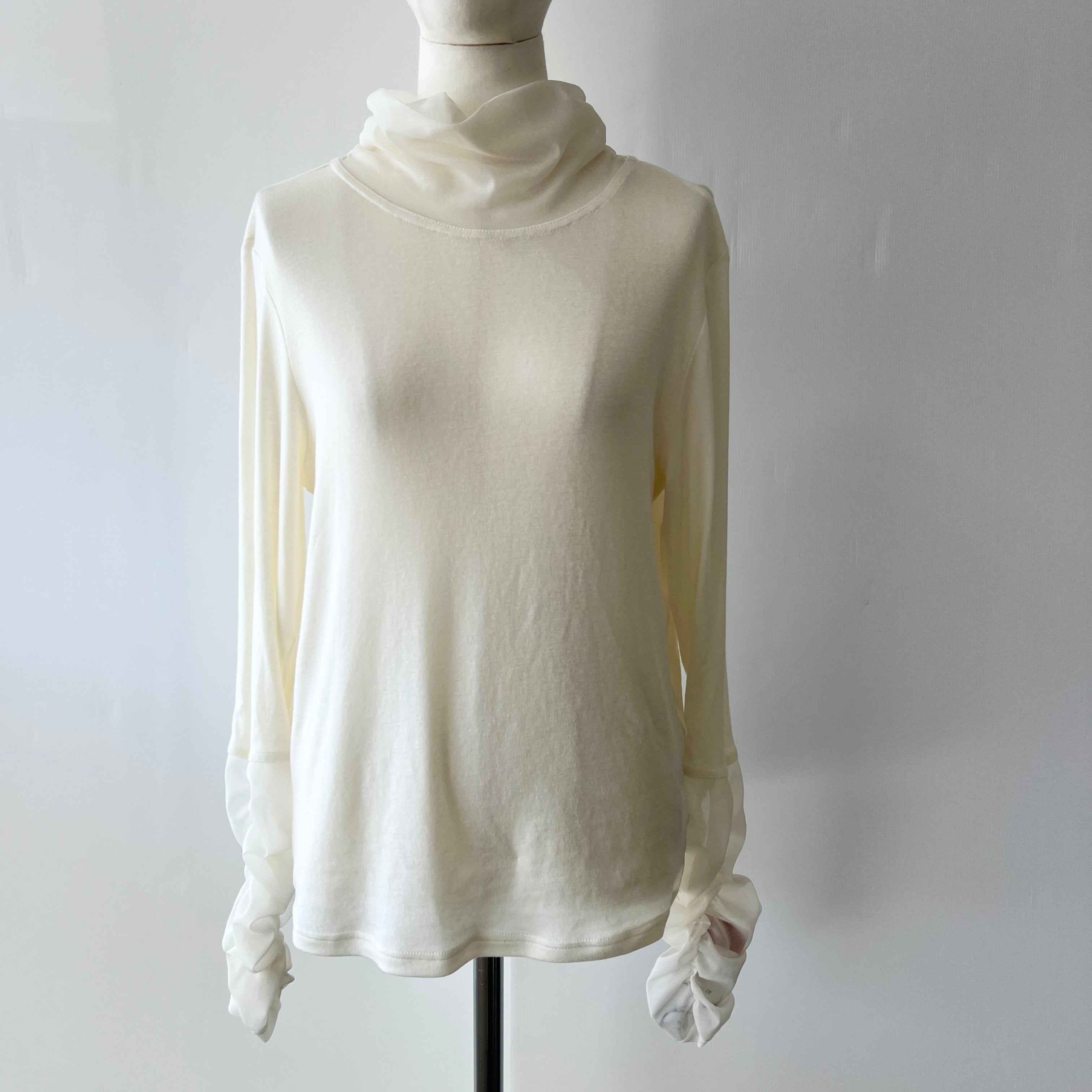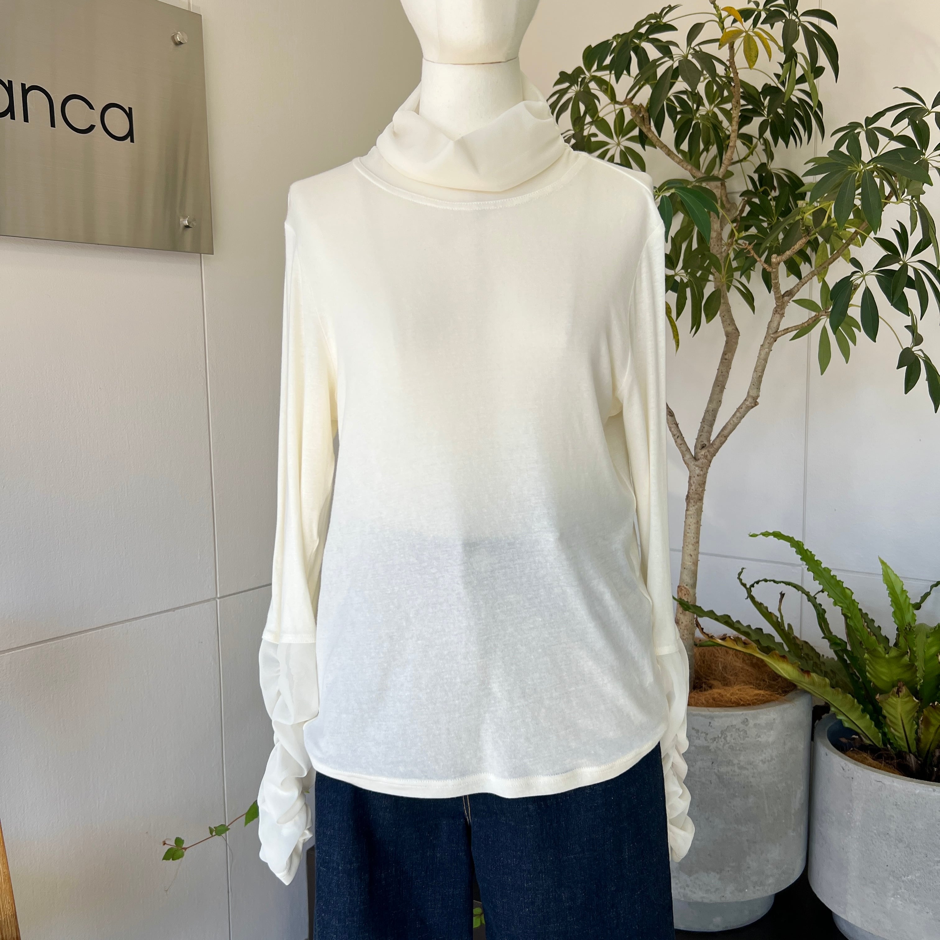 ・軽やかな素材感が魅力のシアードッキングハイネックプルオーバーです。