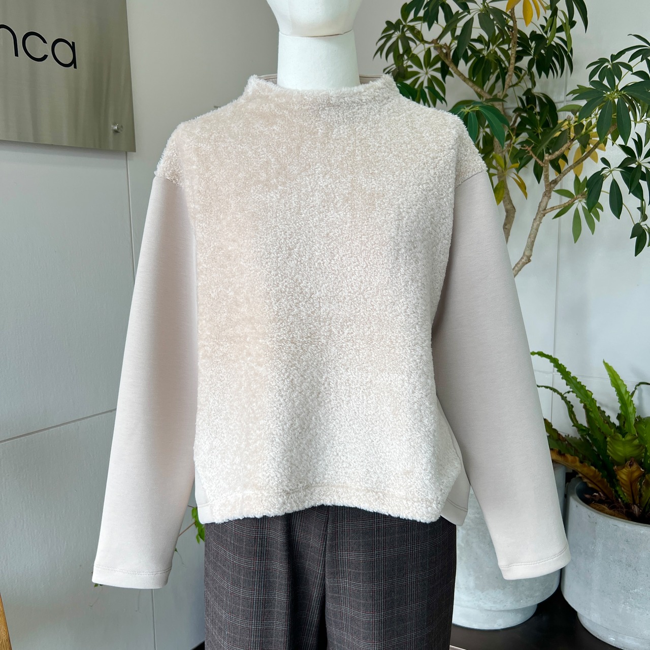 ・ボアとポンチのドッキングがポイントのモックネックプルオーバーです。