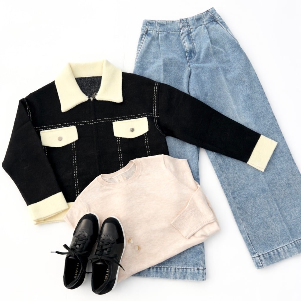 ・裏起毛のデニムでスッキリ見えしながらも暖かいワイドパンツです。