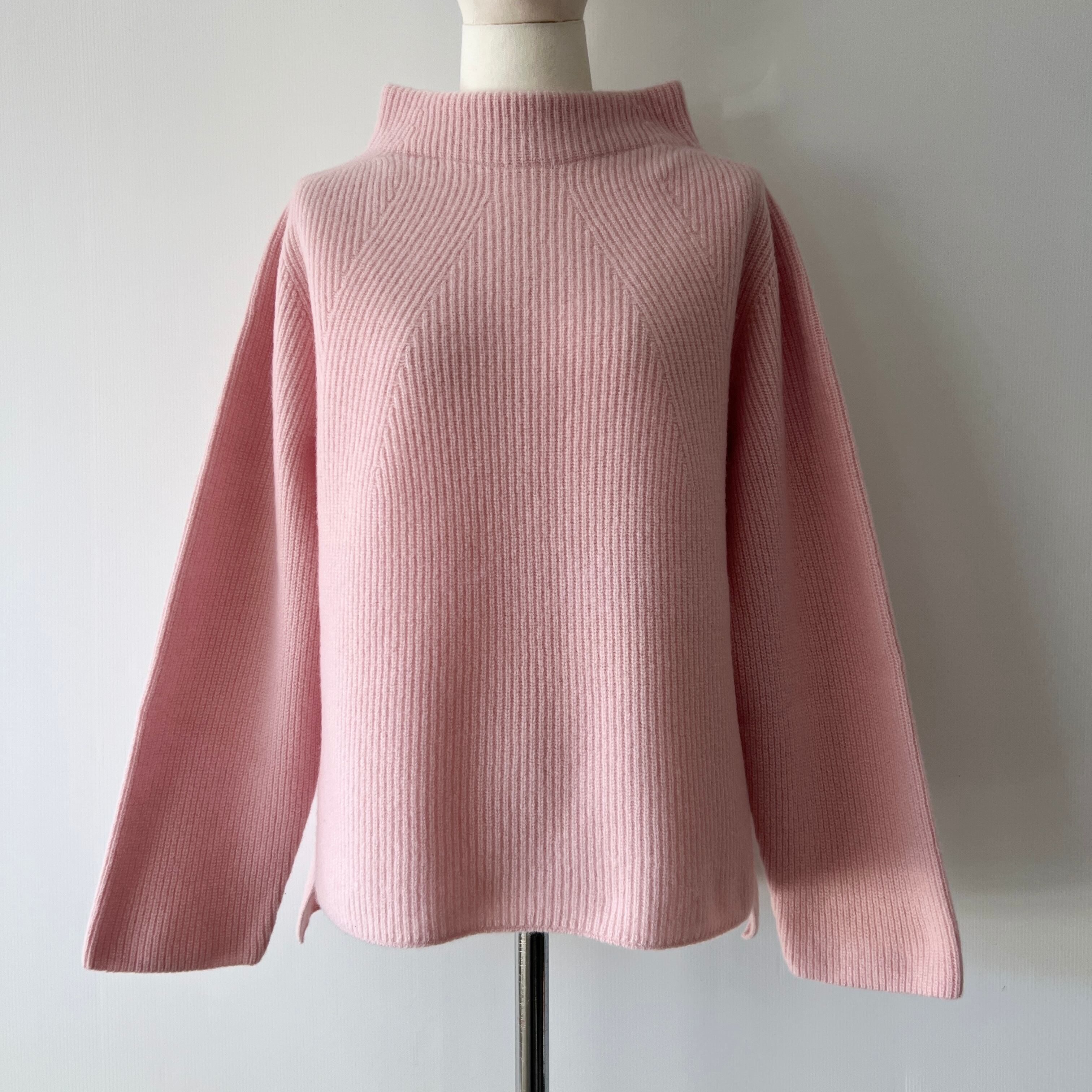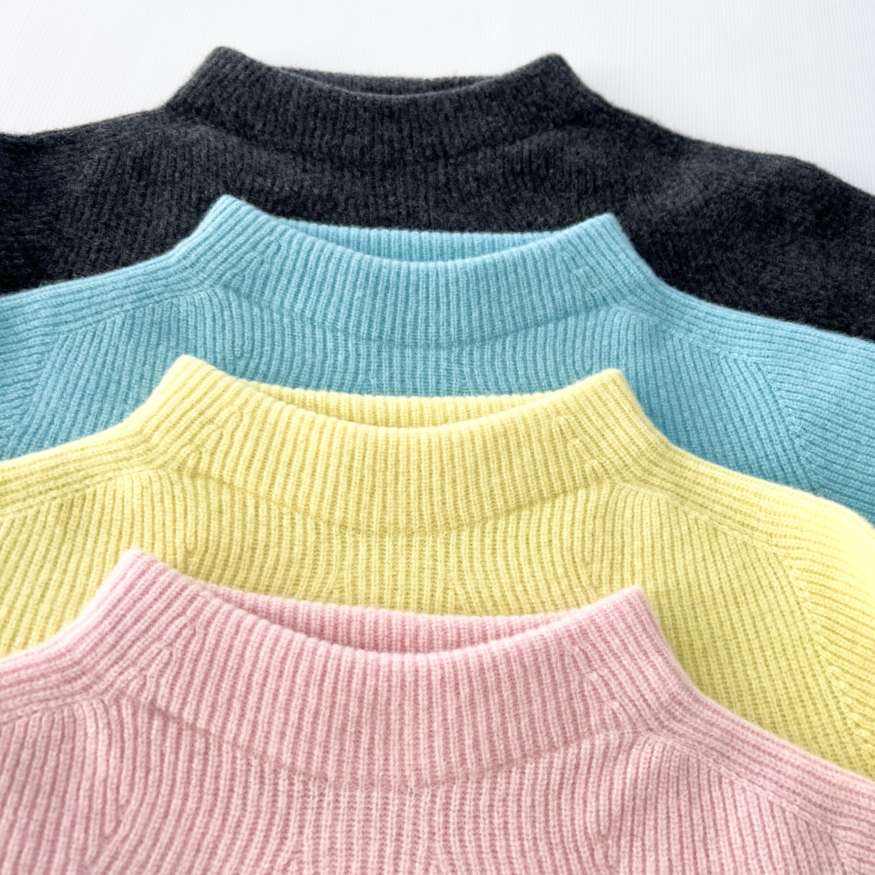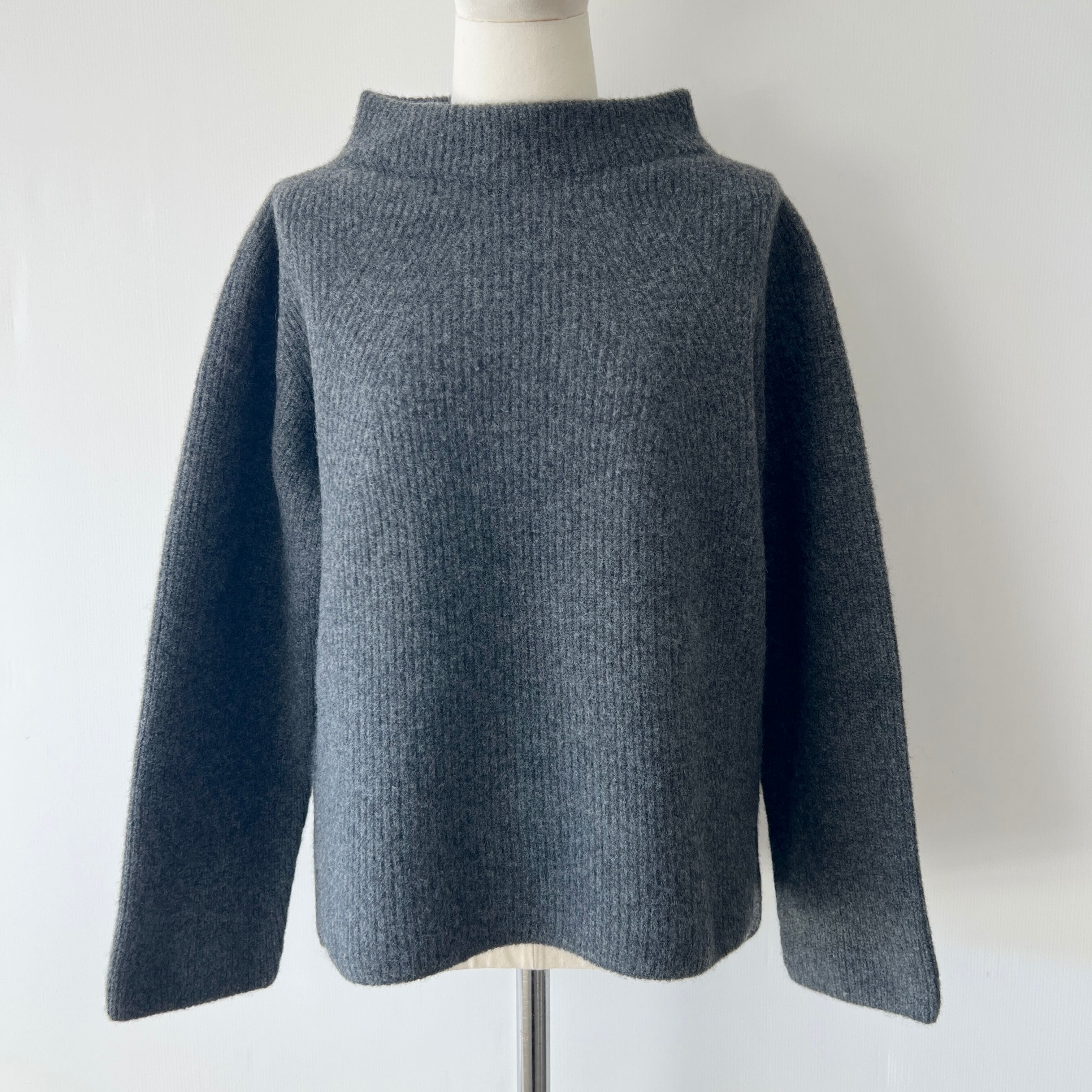 ・品質の良い 片畦編みのウール100%のモックネックプルオーバーです。