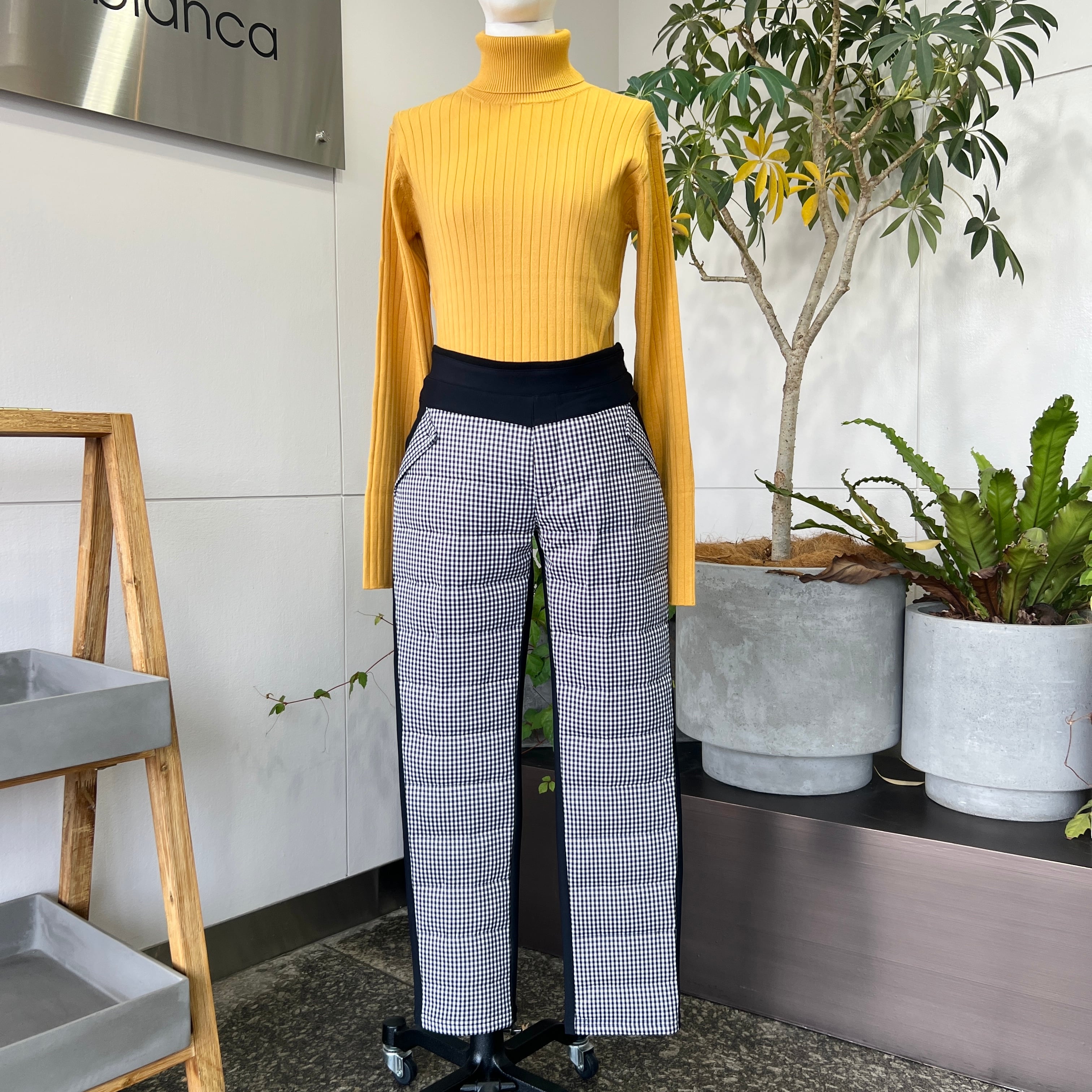 ・ギンガムチェックの切替がポイントのダウンパンツです。