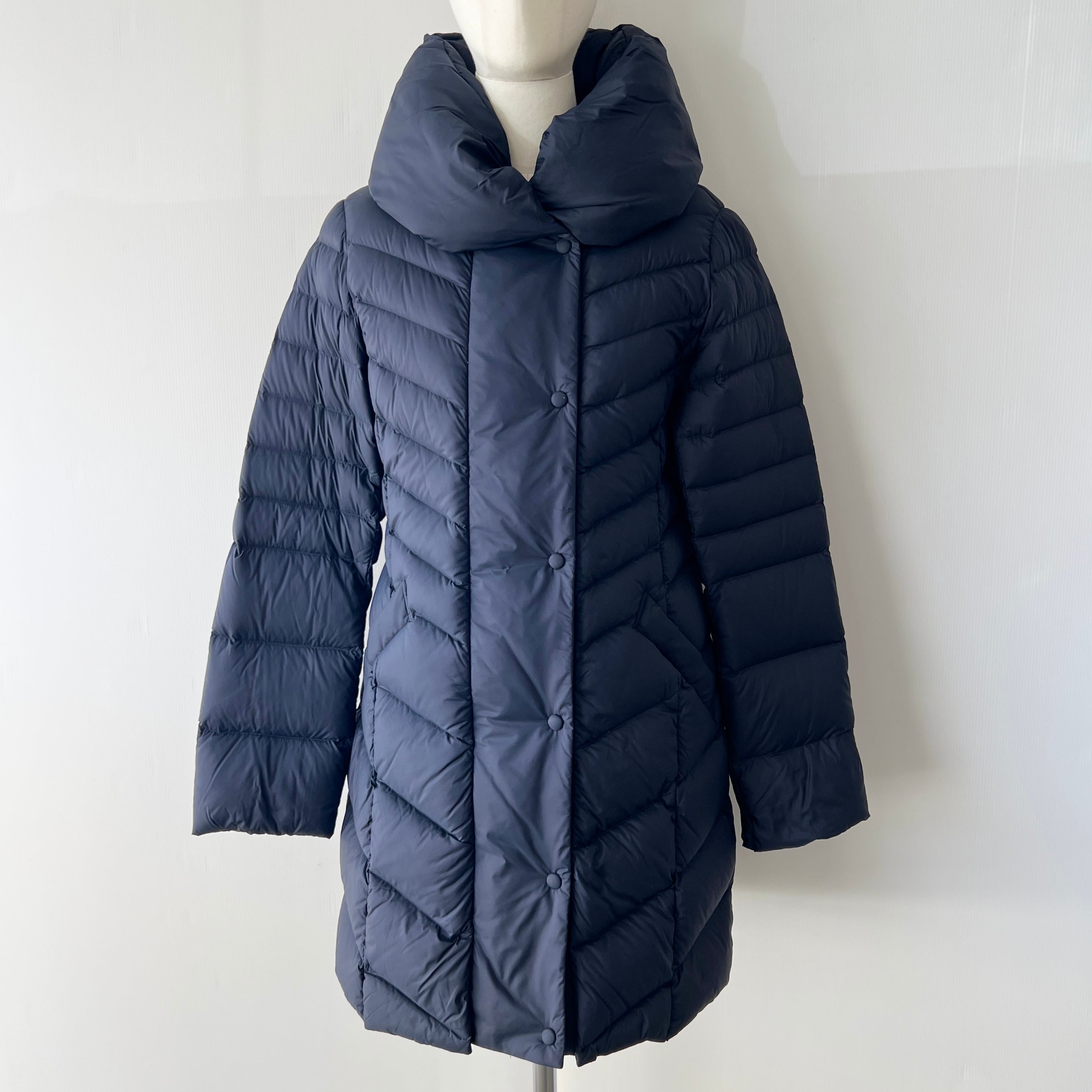 ・ハイネックと美シルエットが魅力のダウンコートです。