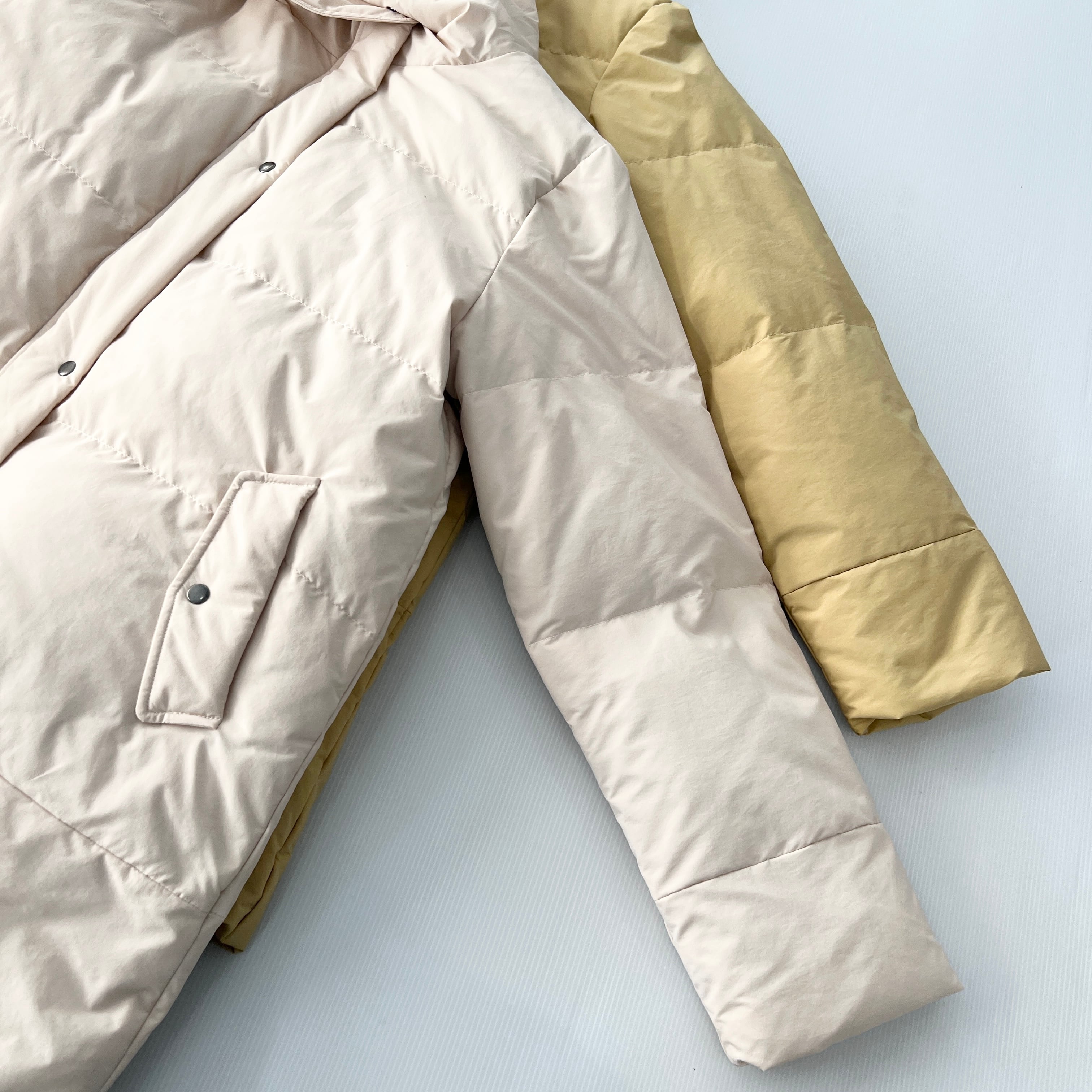 ・ミドル丈の軽くて温かいキルトダウンコートです。