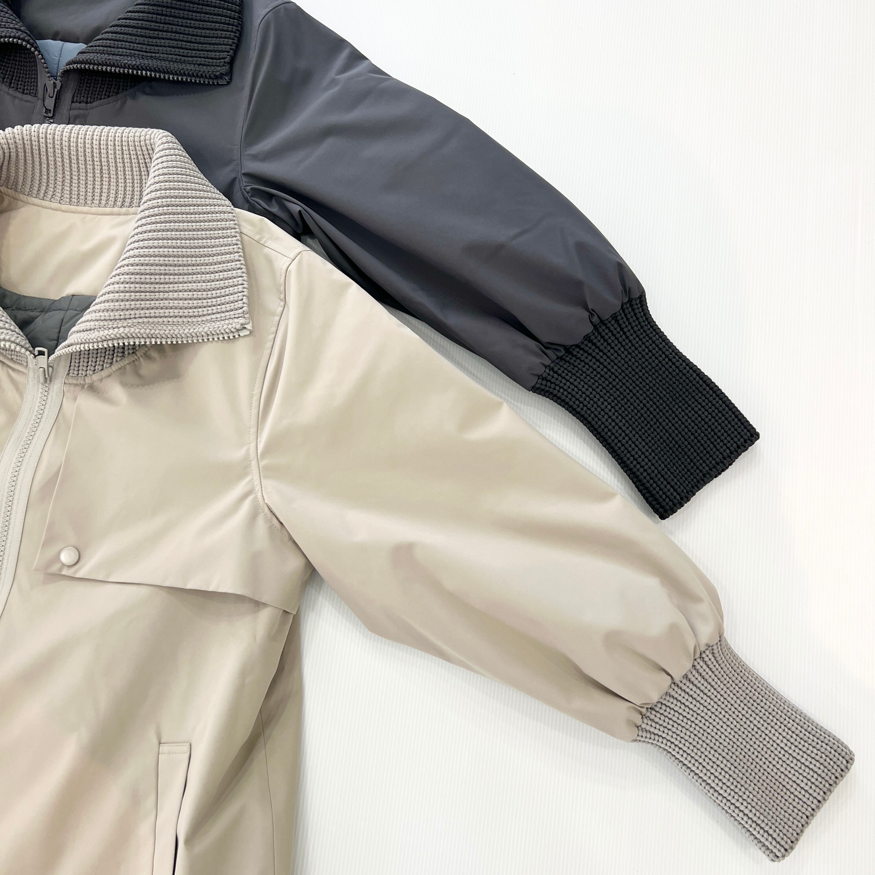 ・リブニットと断熱素材(ETHERMALOFT PROの中綿入)ドッキングがお洒落なジップコートです。