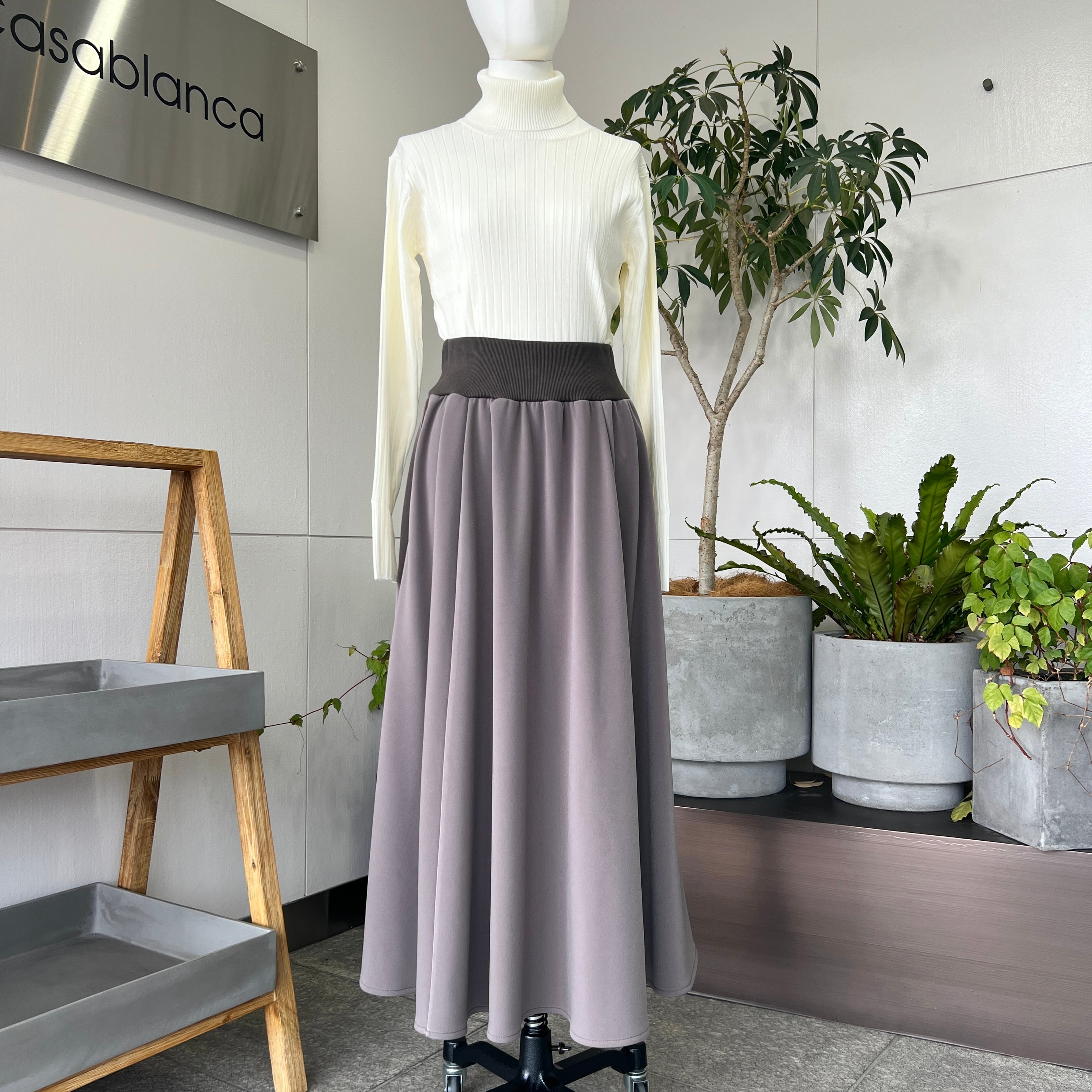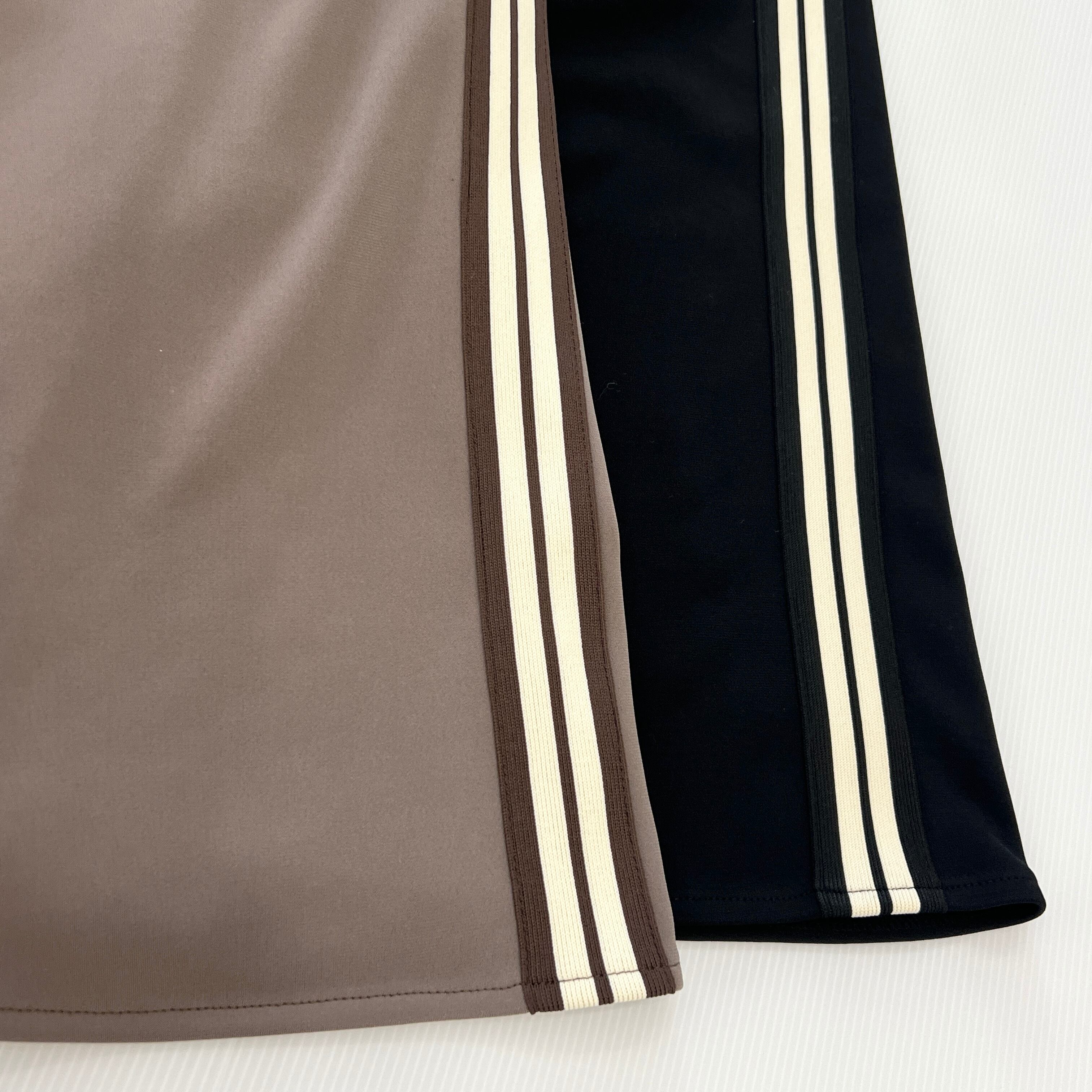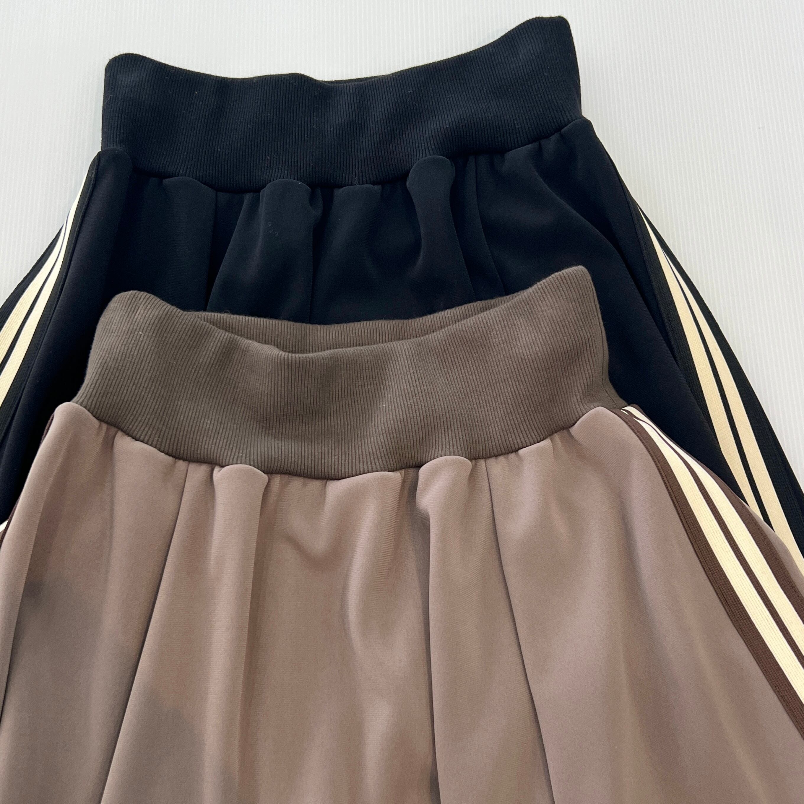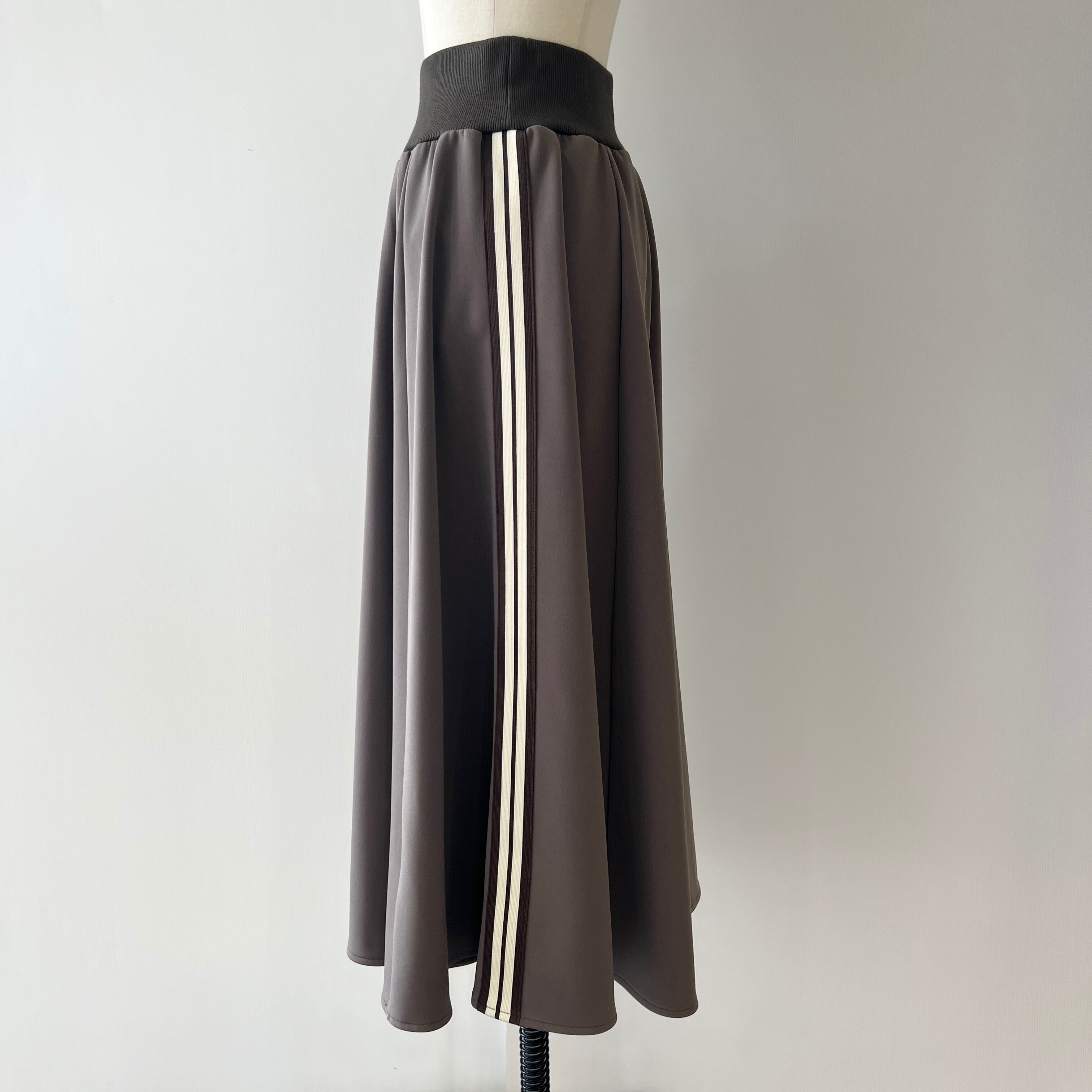 ・サイドラインが目を惹く 裏起毛あったか素材のロングフレアスカートです。