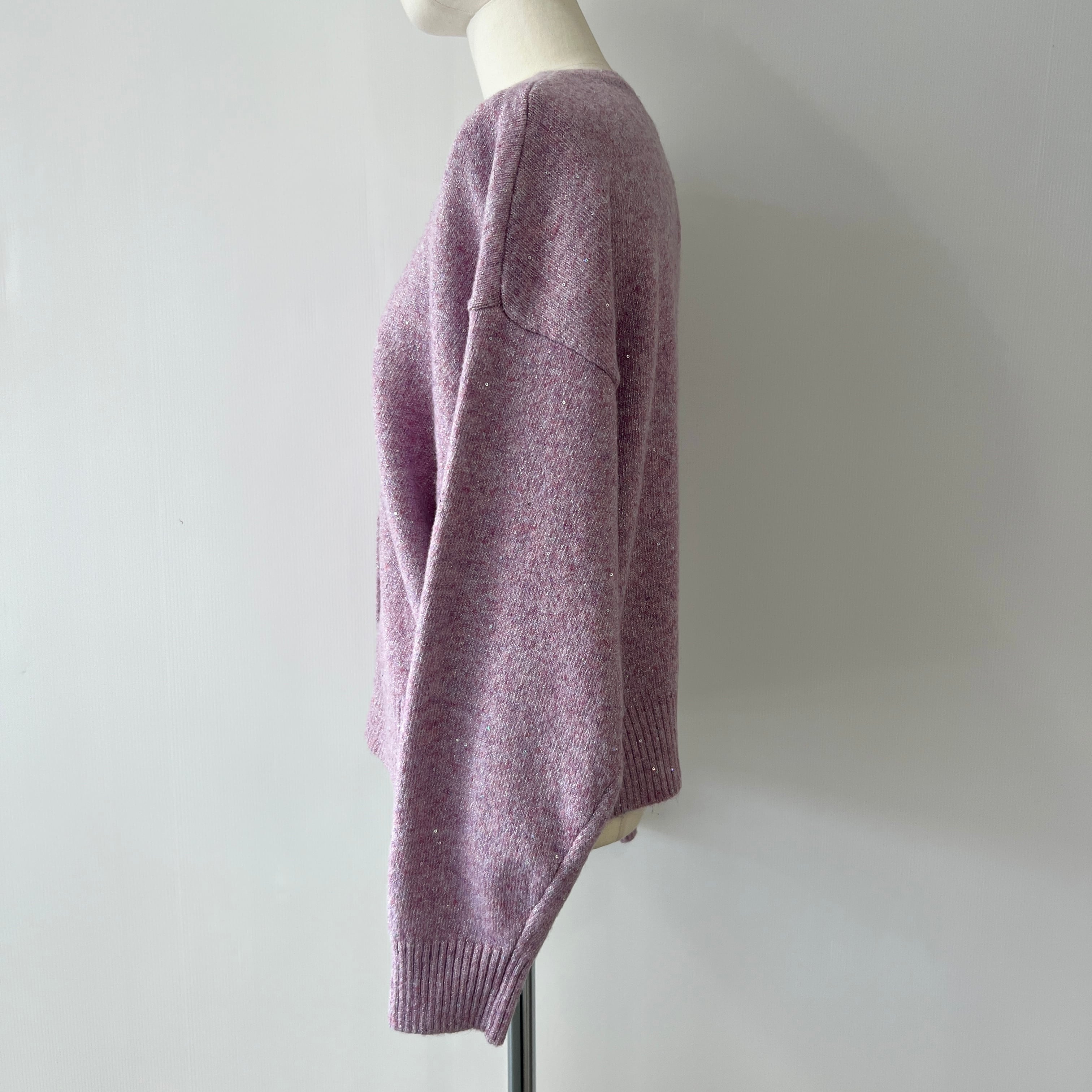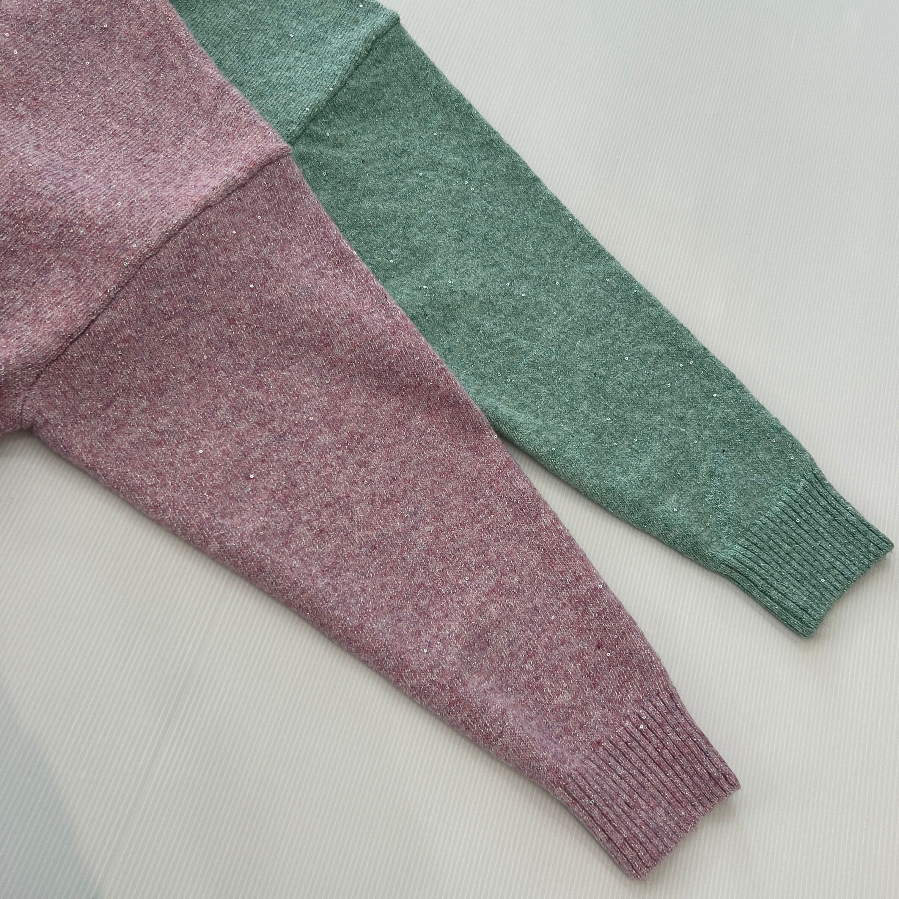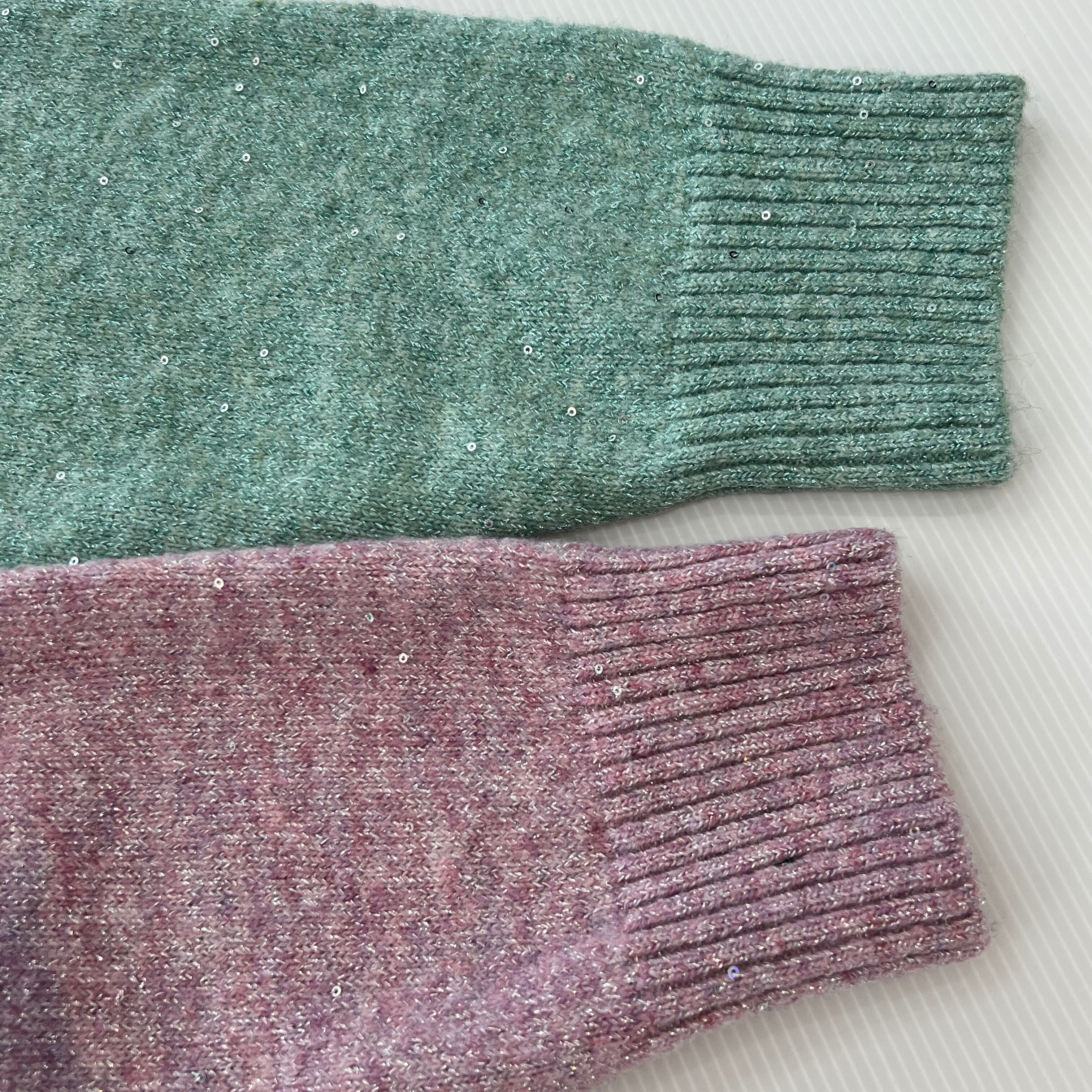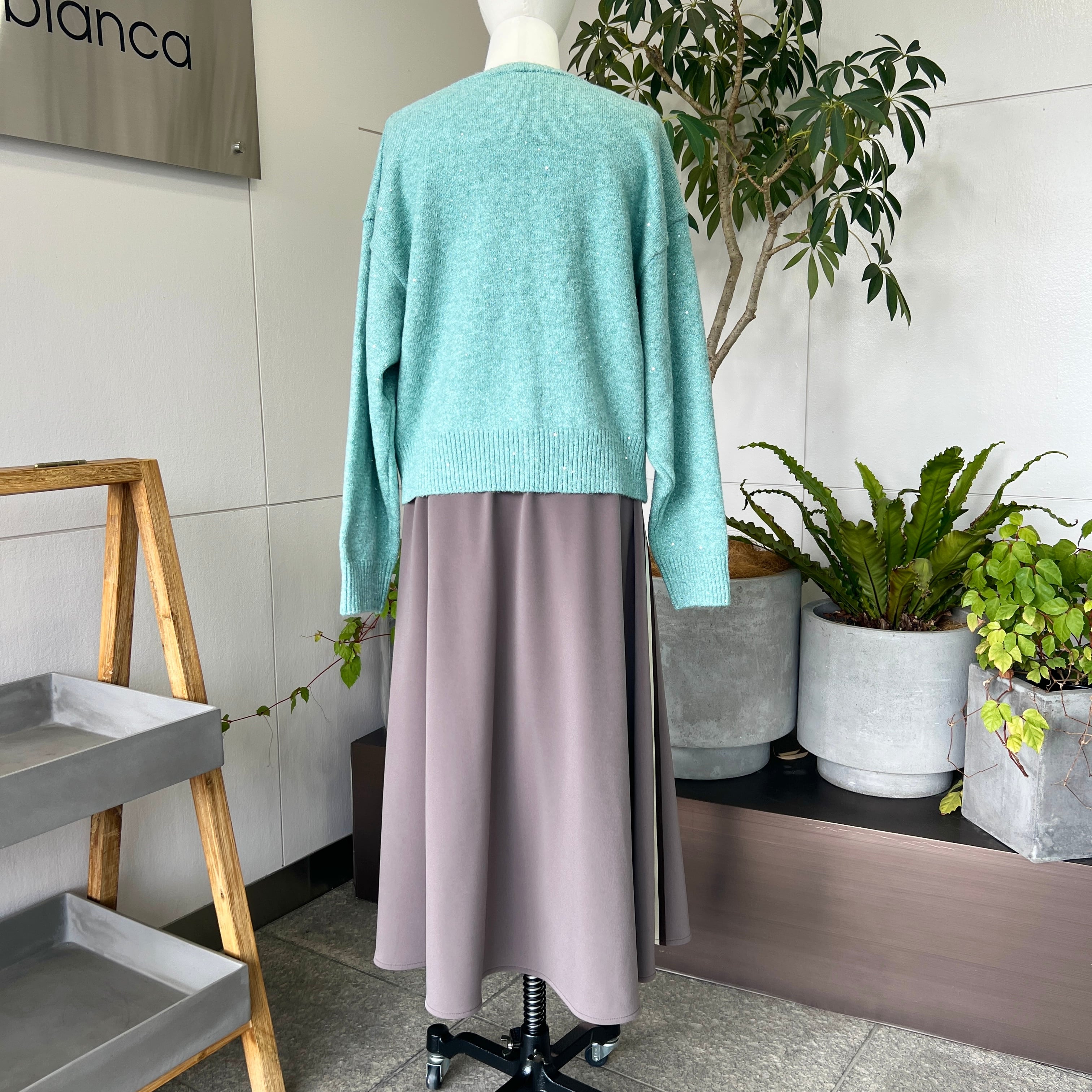 ・スパンコールが散りばめられた ラメ入り素材ニットがフェミニンな雰囲気でお洒落です。