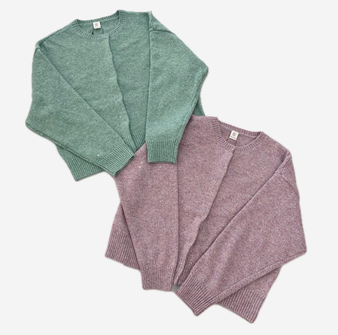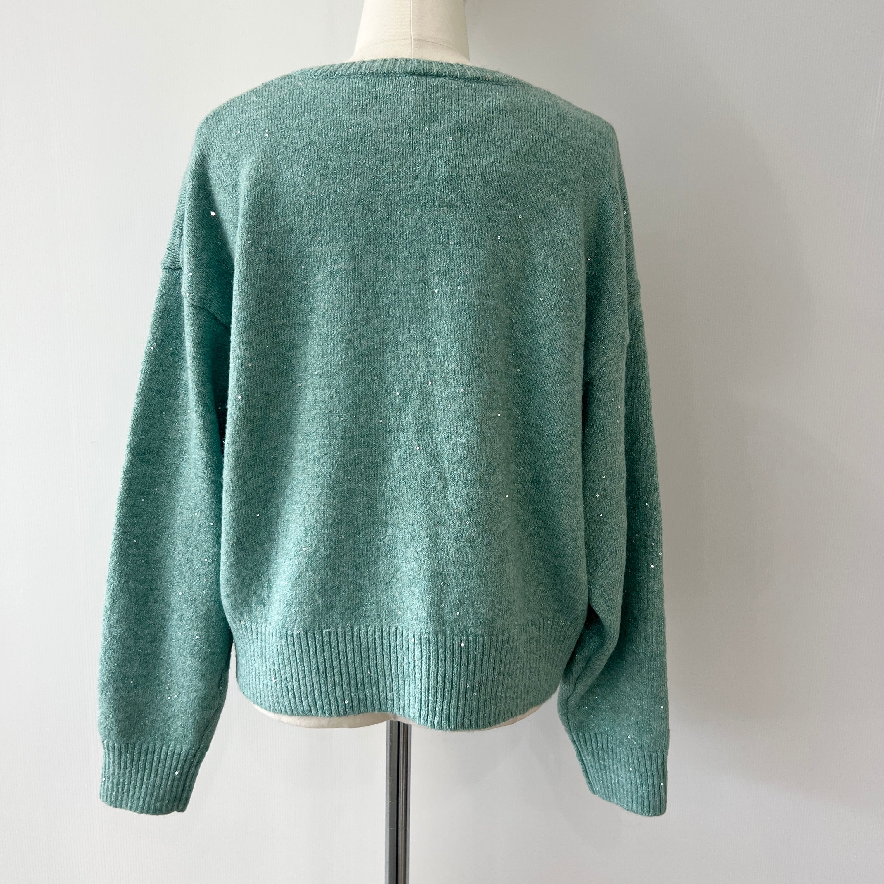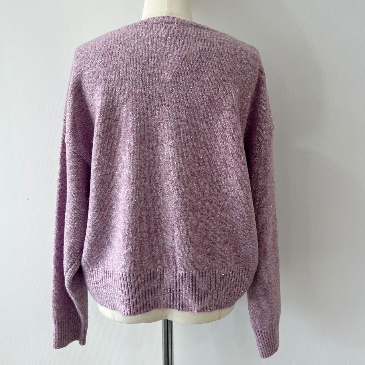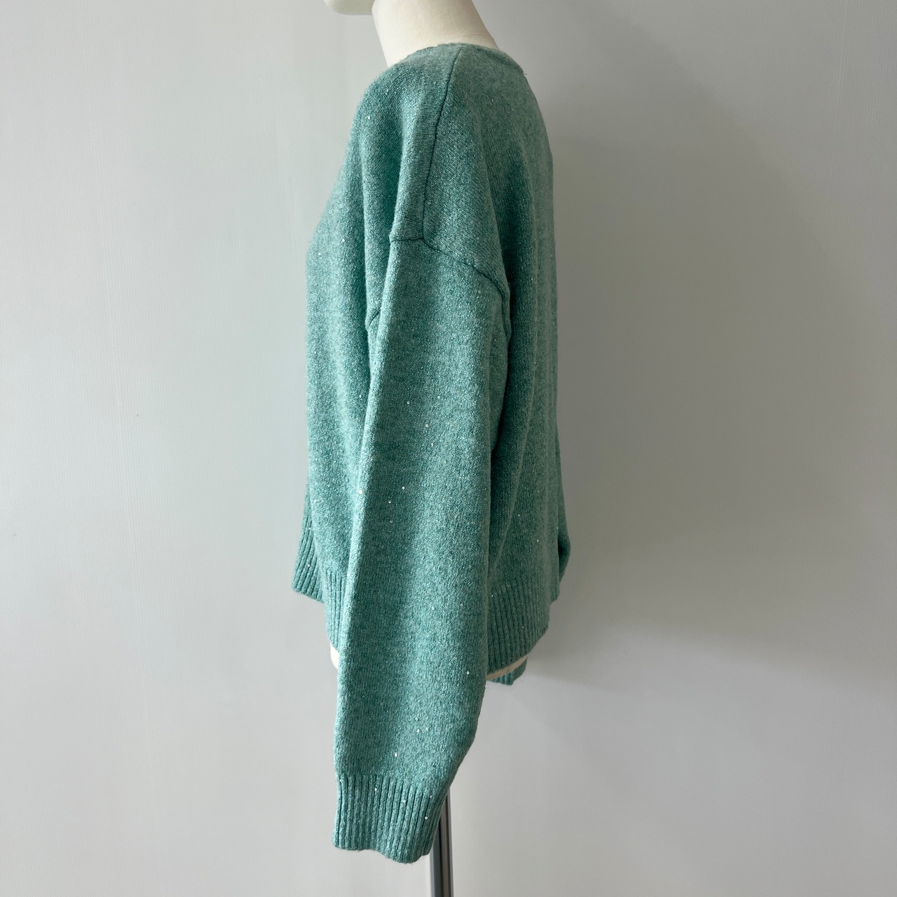 ・スパンコールが散りばめられた ラメ入り素材ニットがフェミニンな雰囲気でお洒落です。