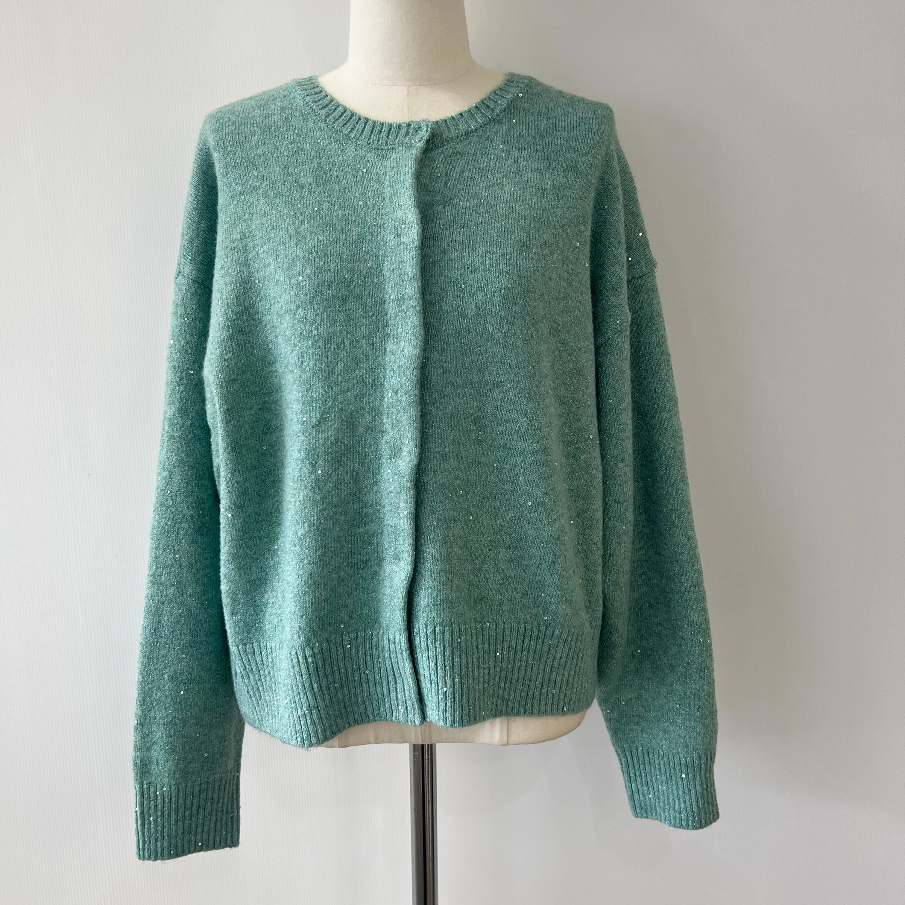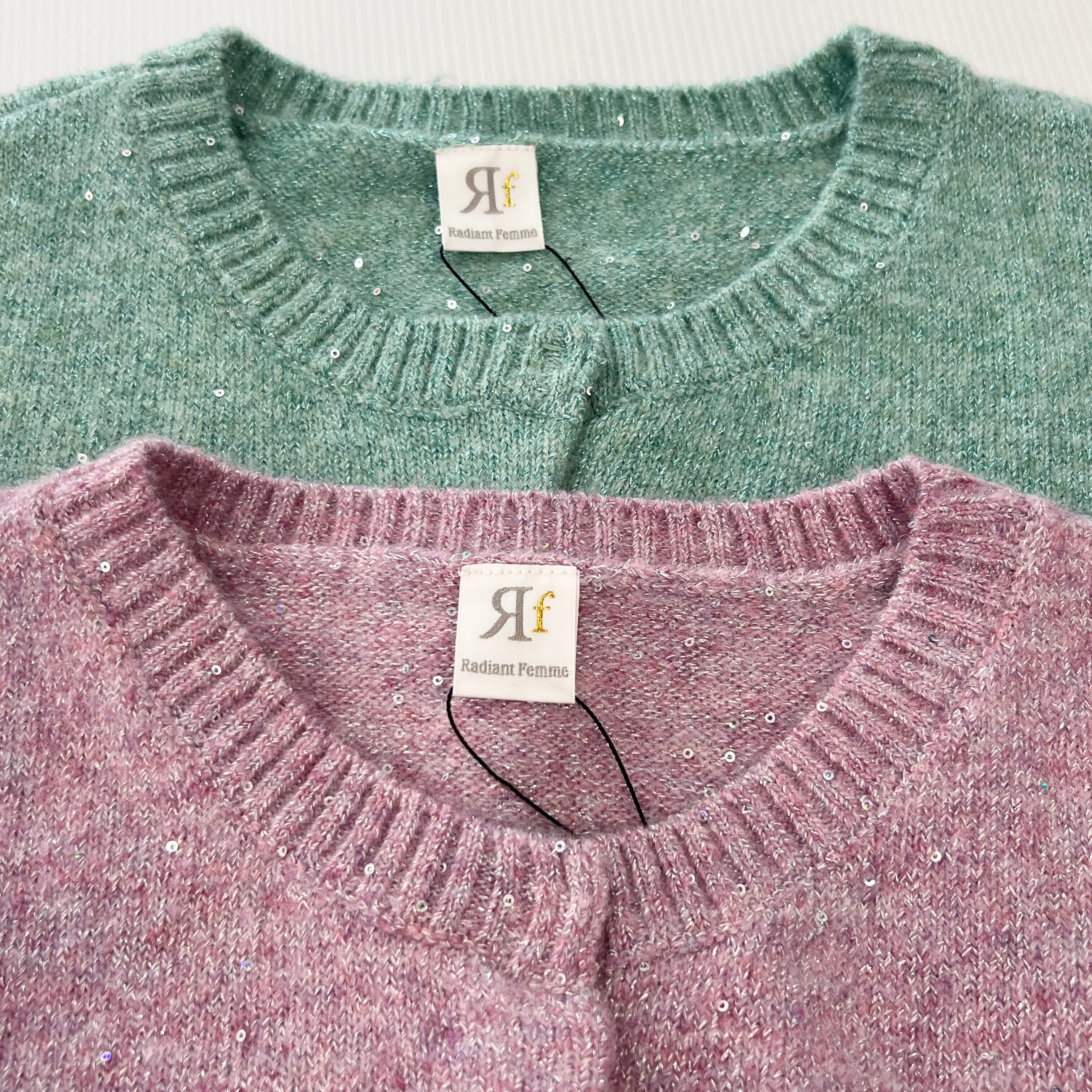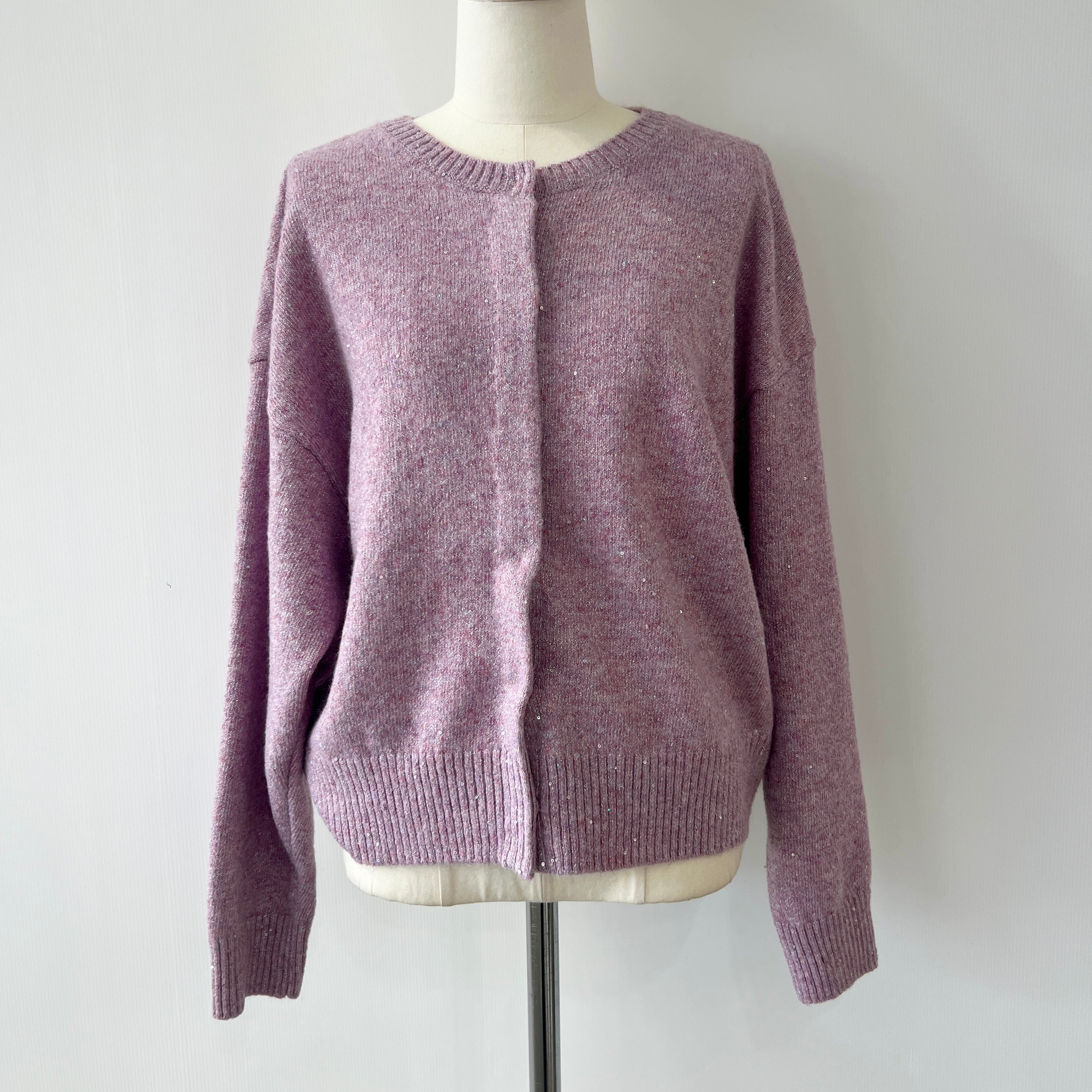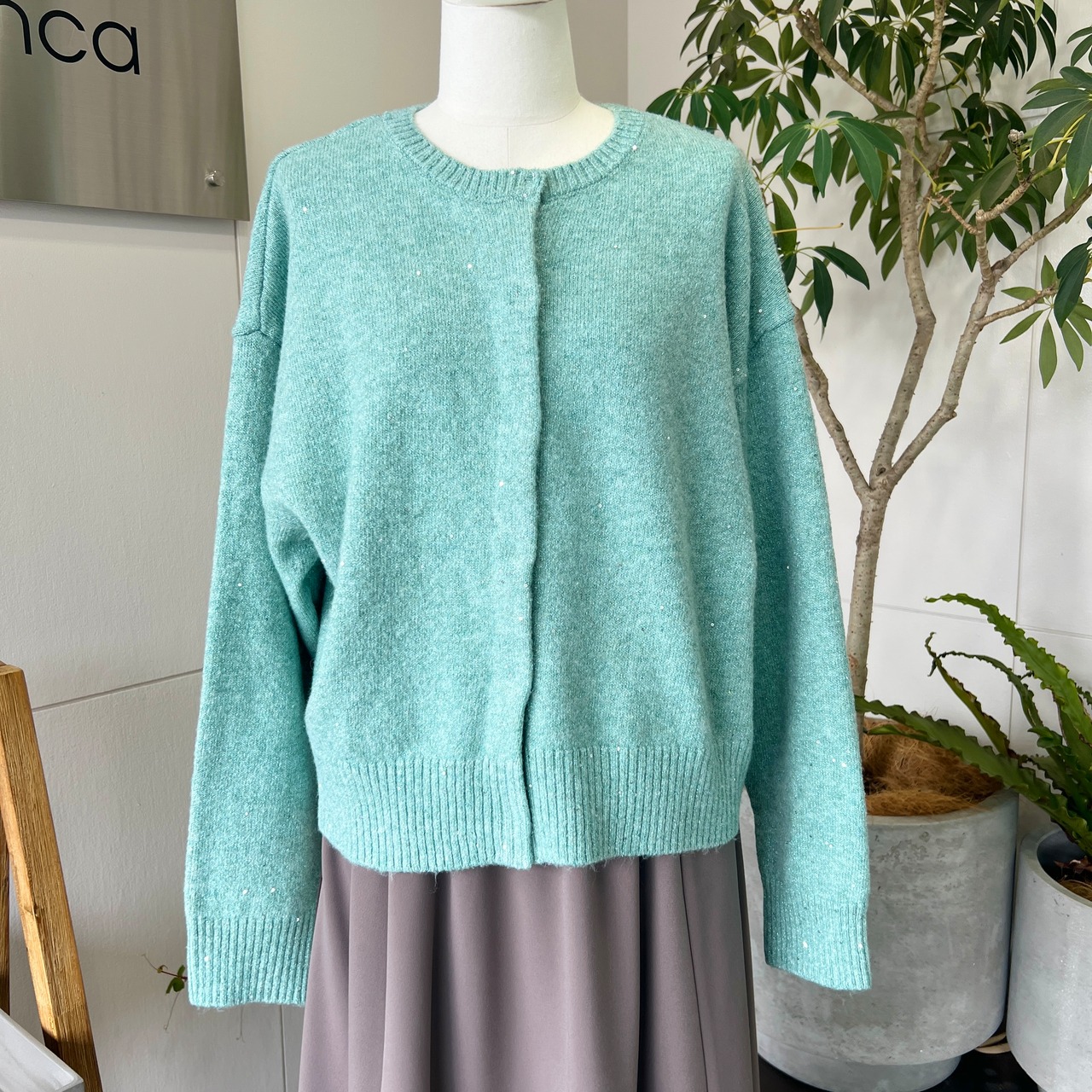 ・ラメ入りのあたたかいドットボタンカーディガンです。