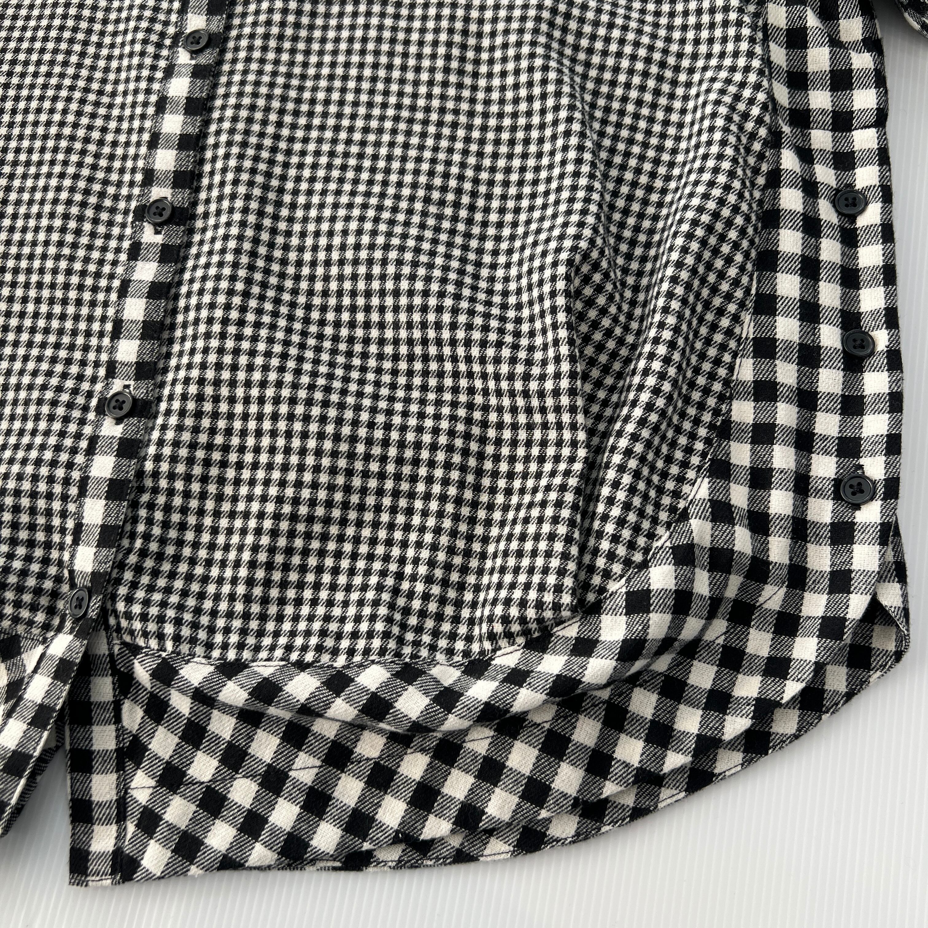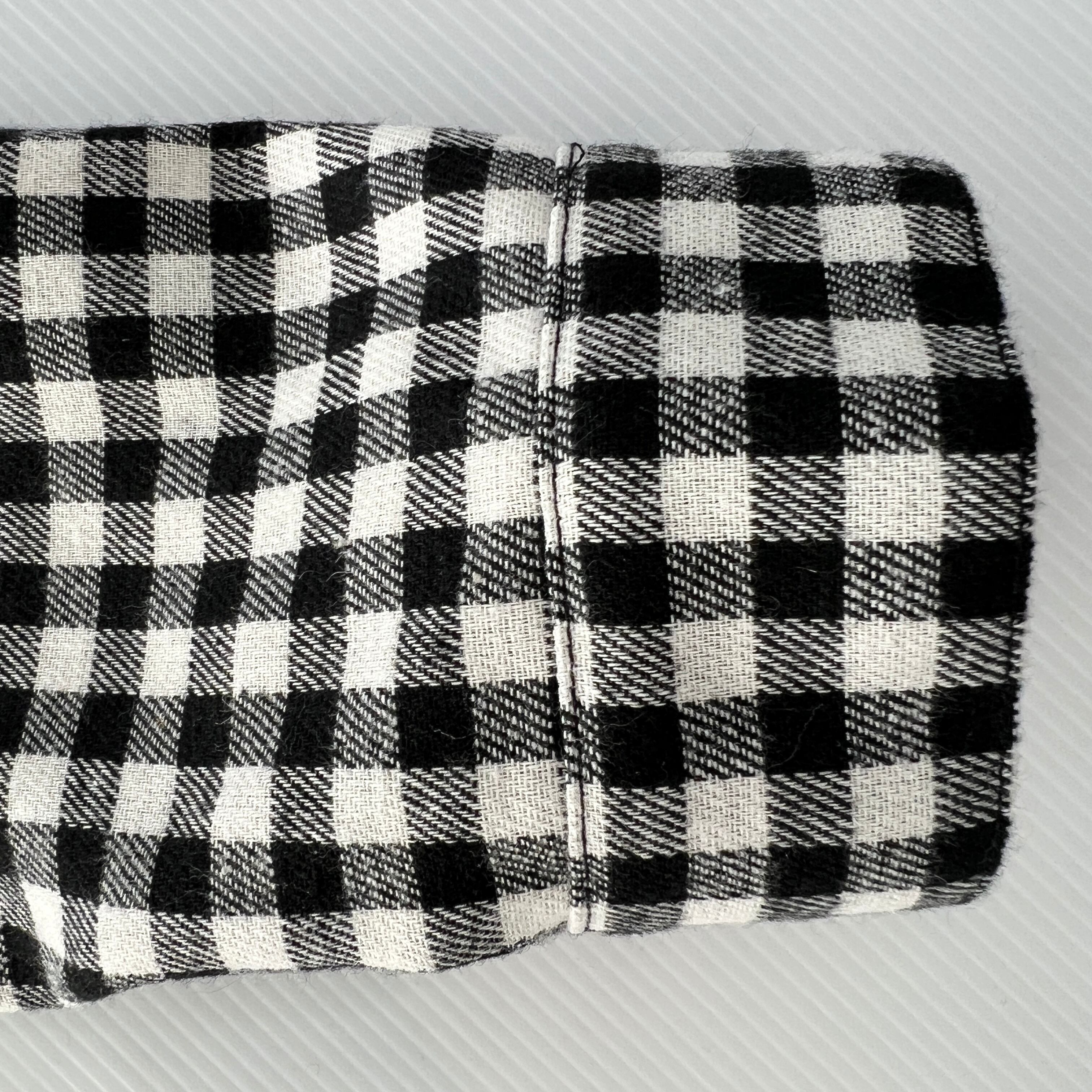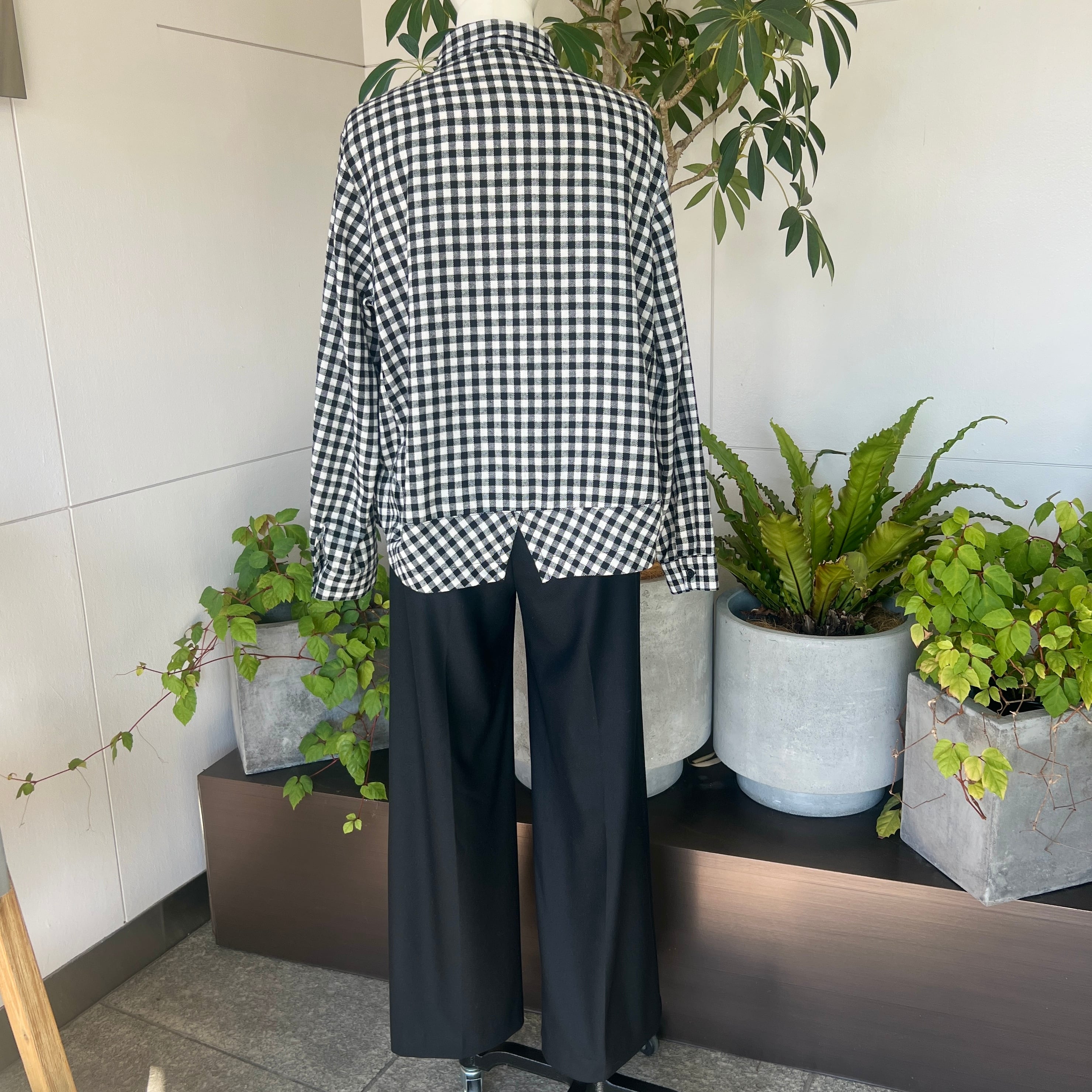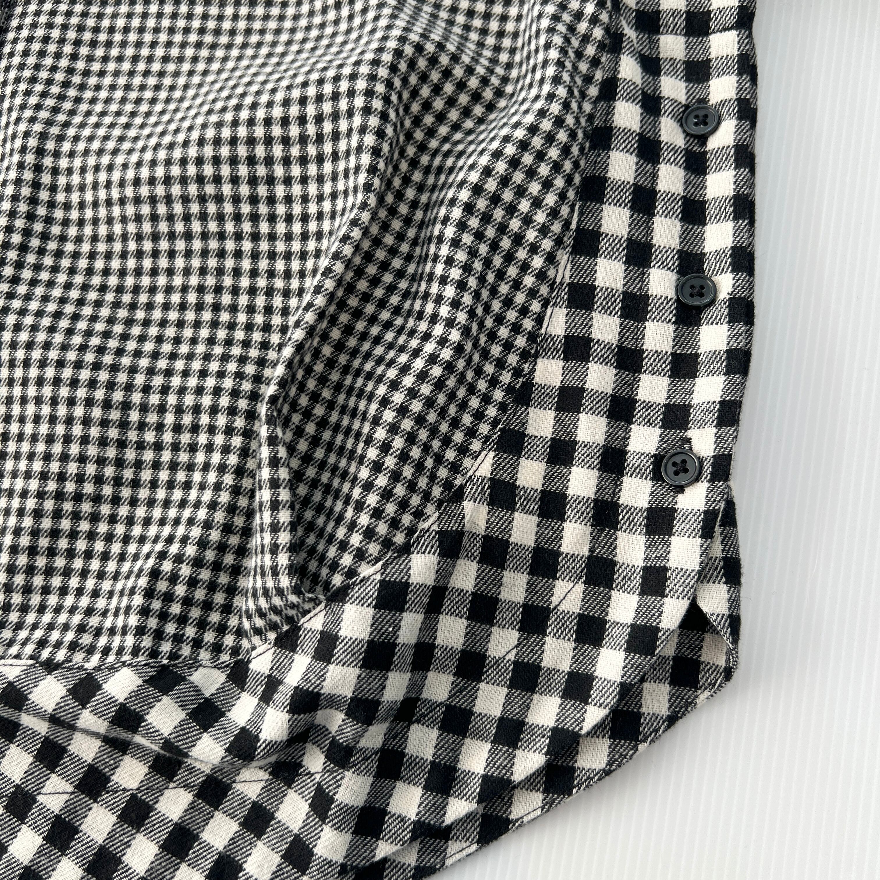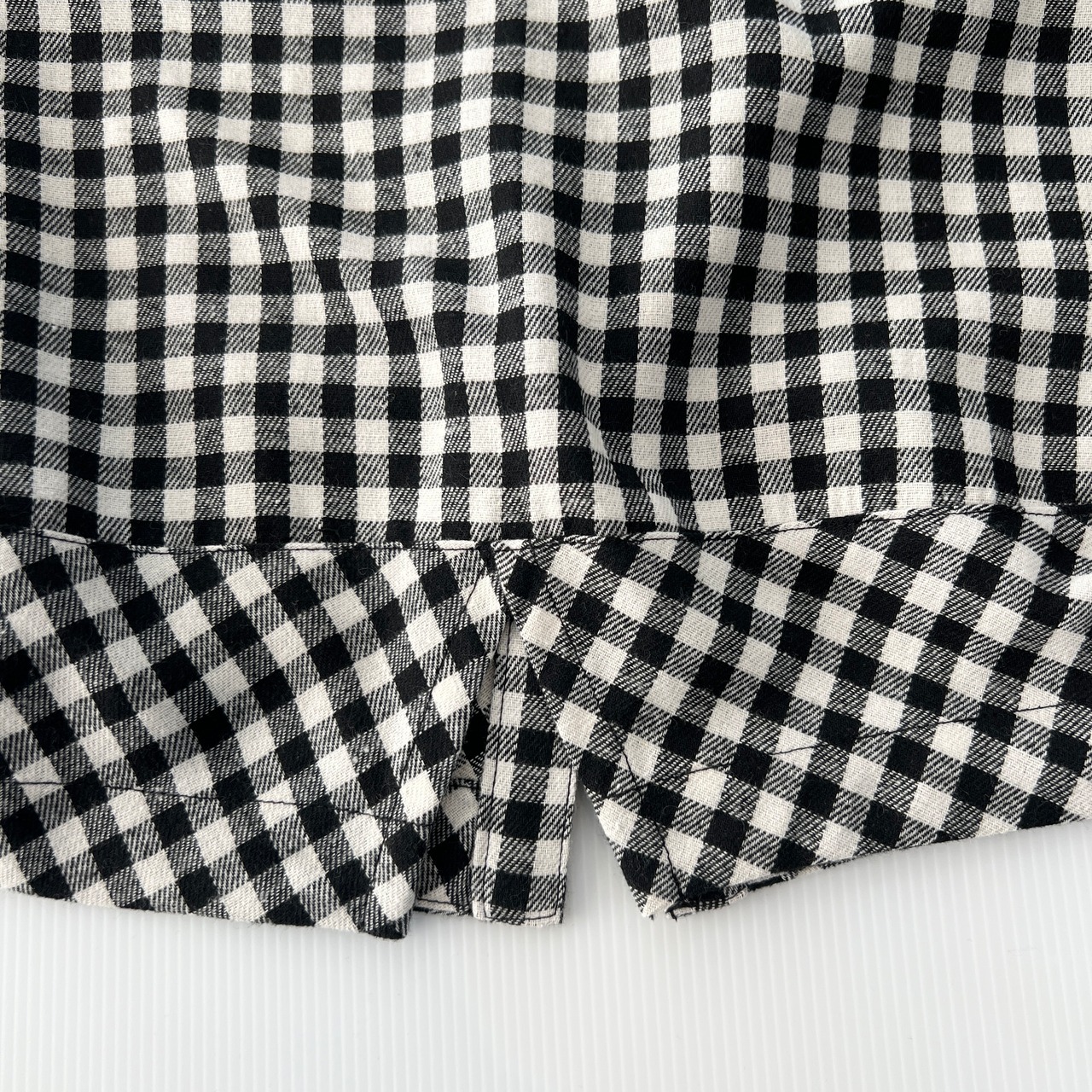 ・大小のチェック柄の切替とバックの裾のバイヤスの切替とスリットがポイントです。