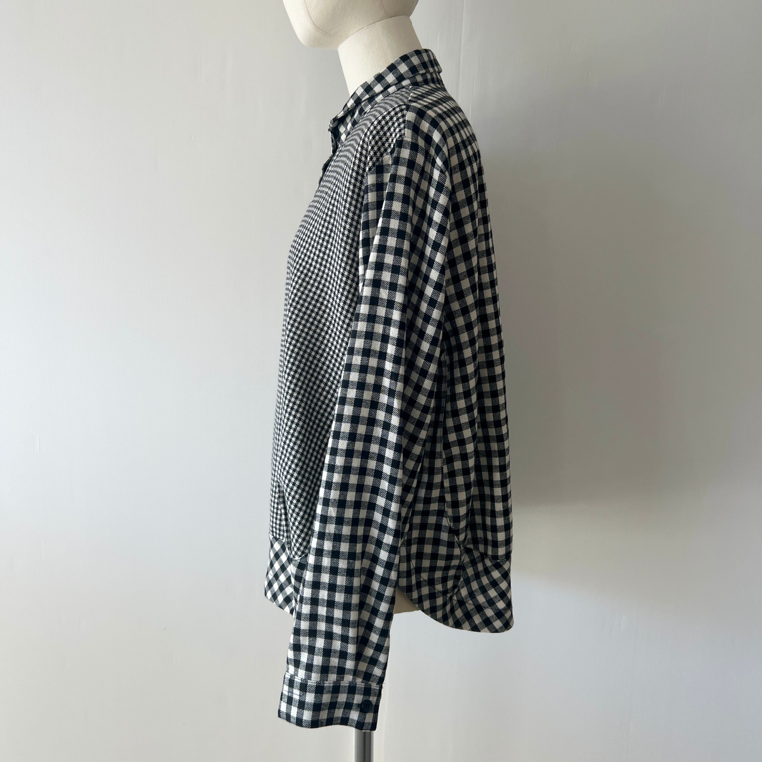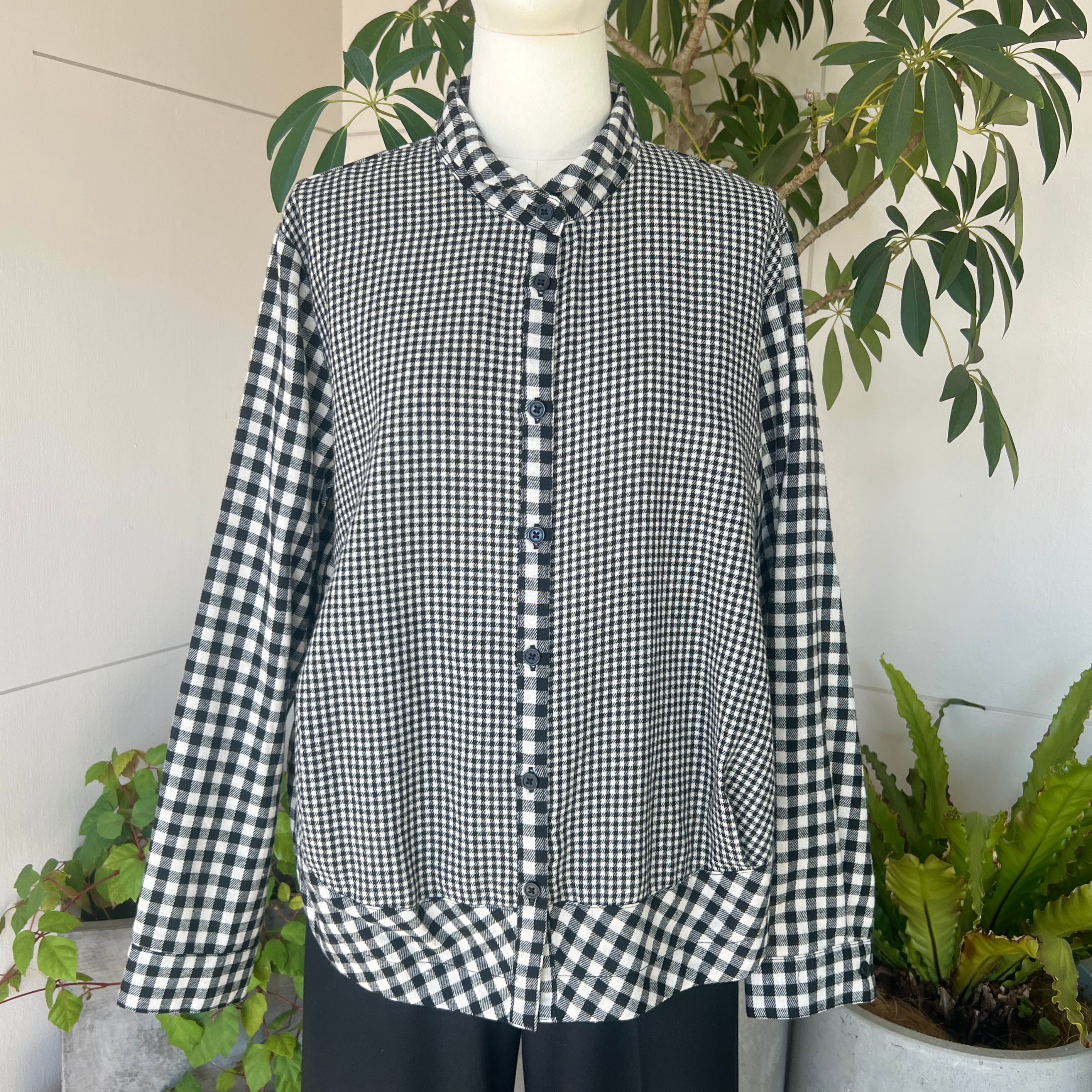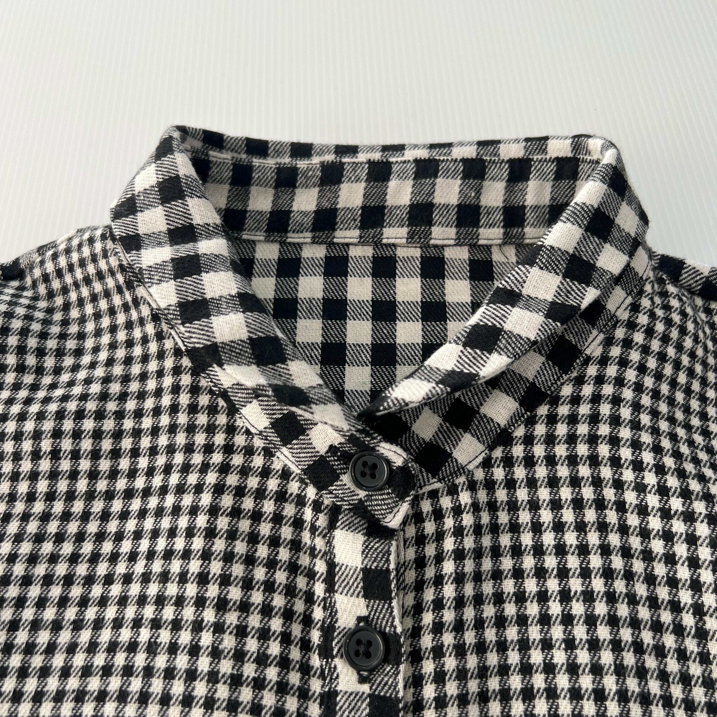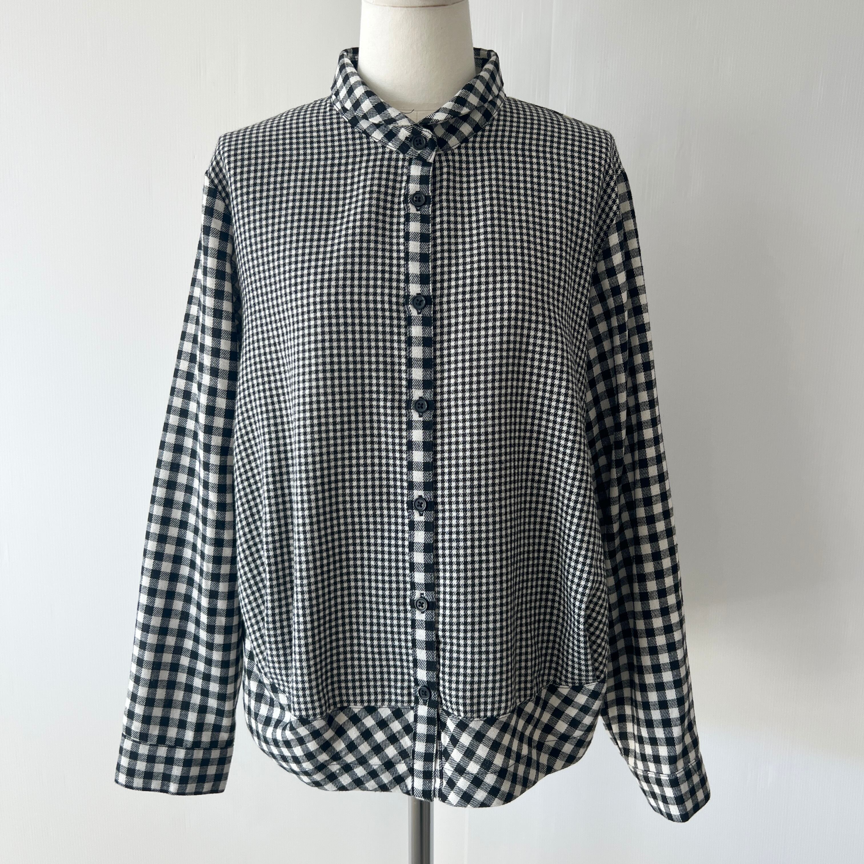 ・大小のチェック柄の切替がポイントのチビ襟ブラウスです。