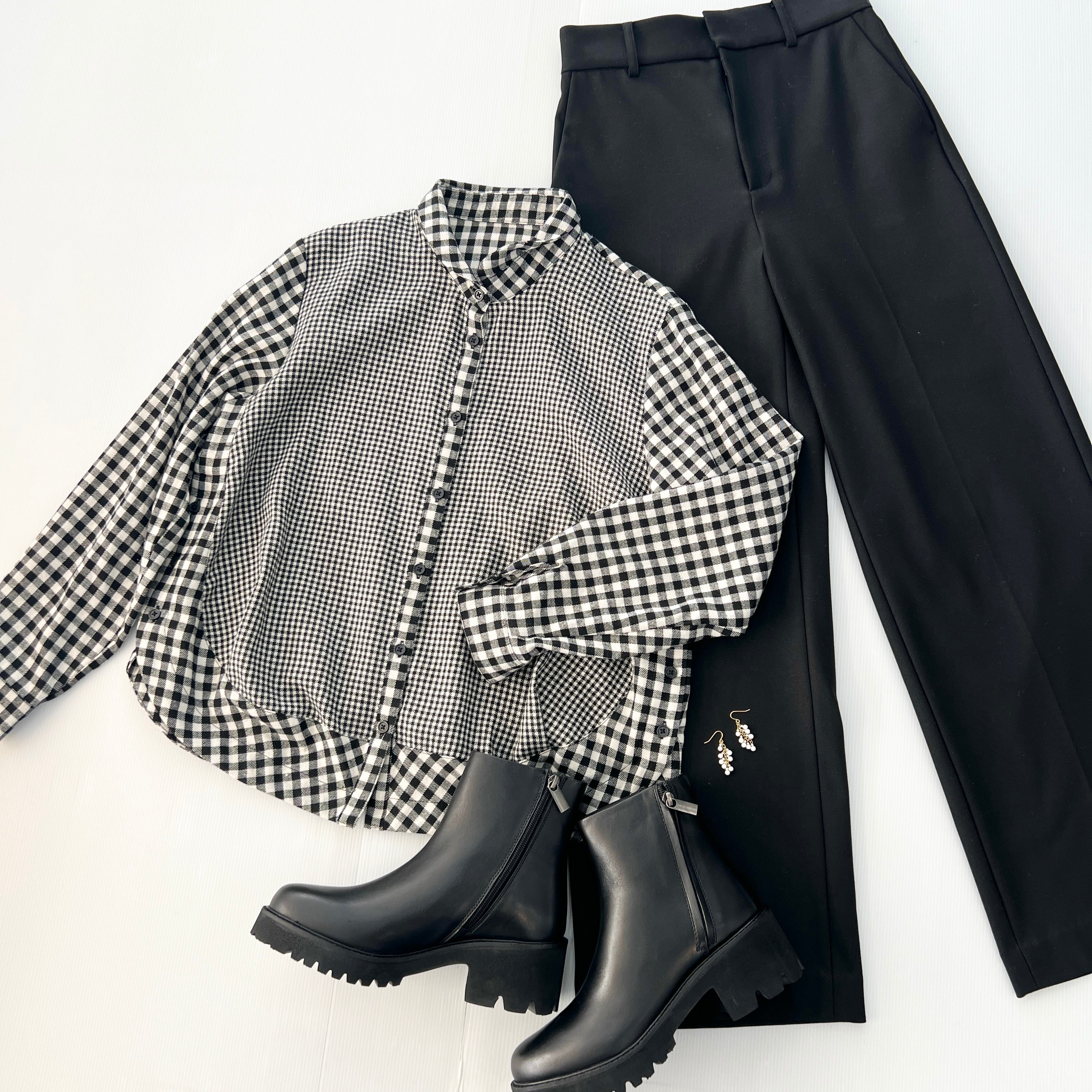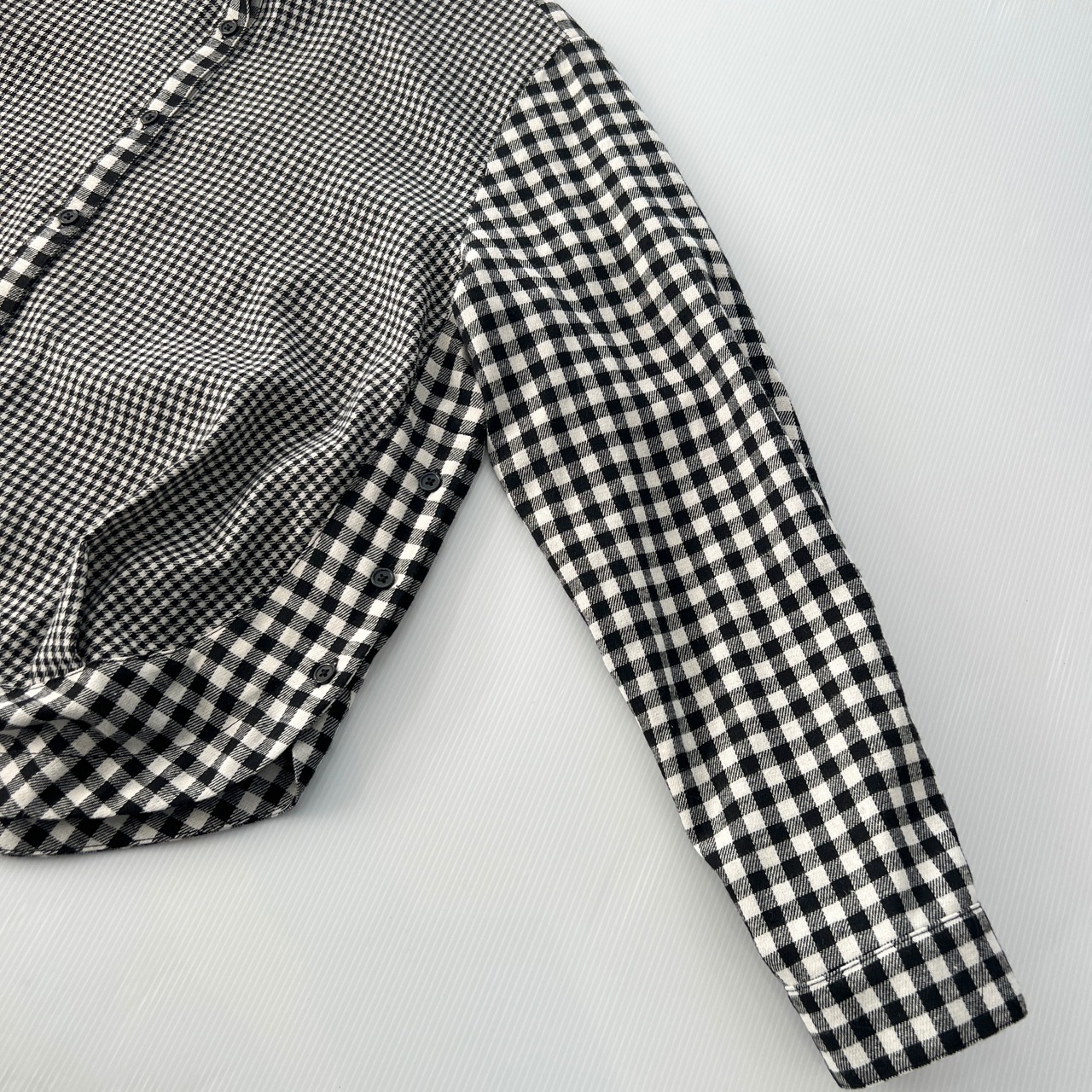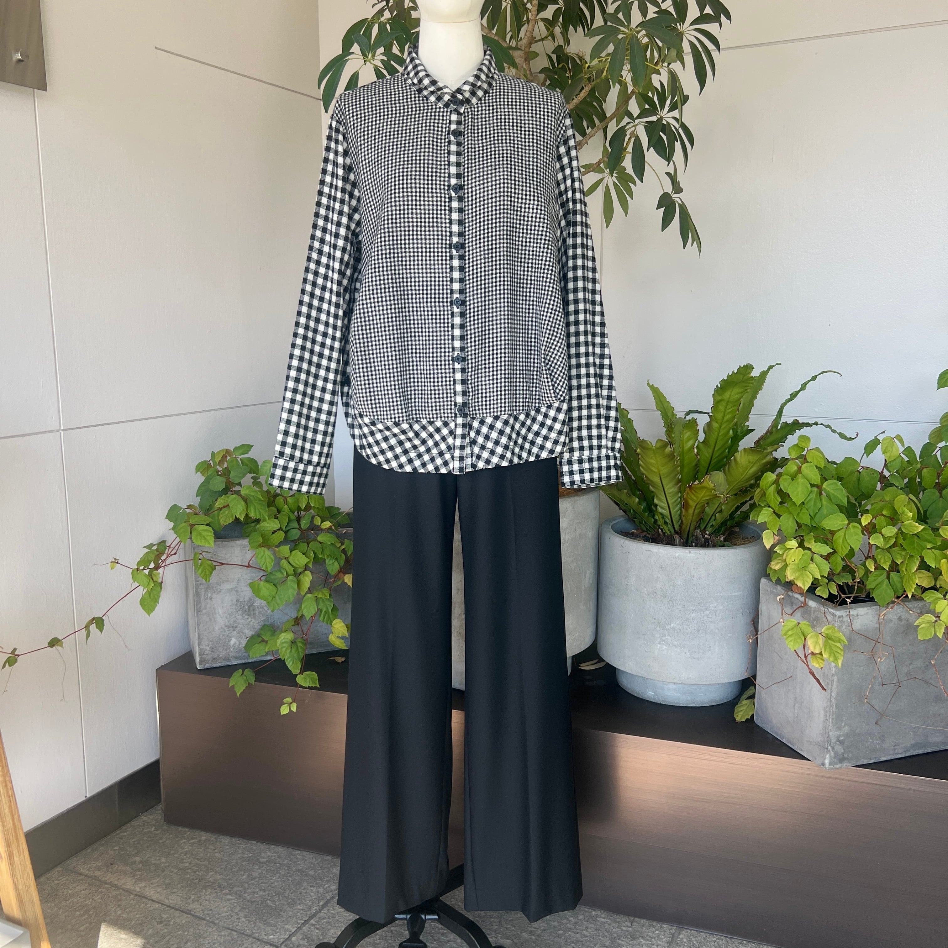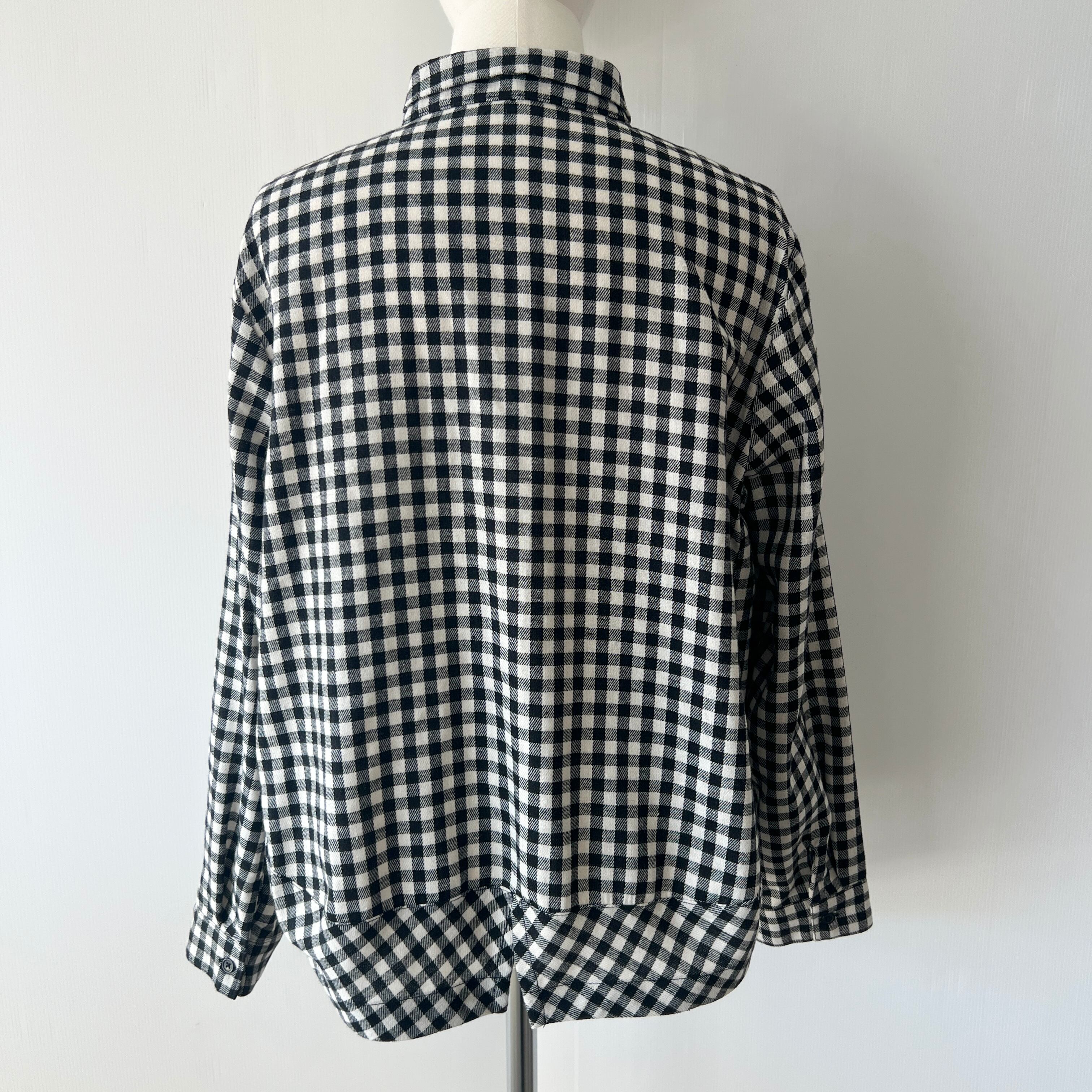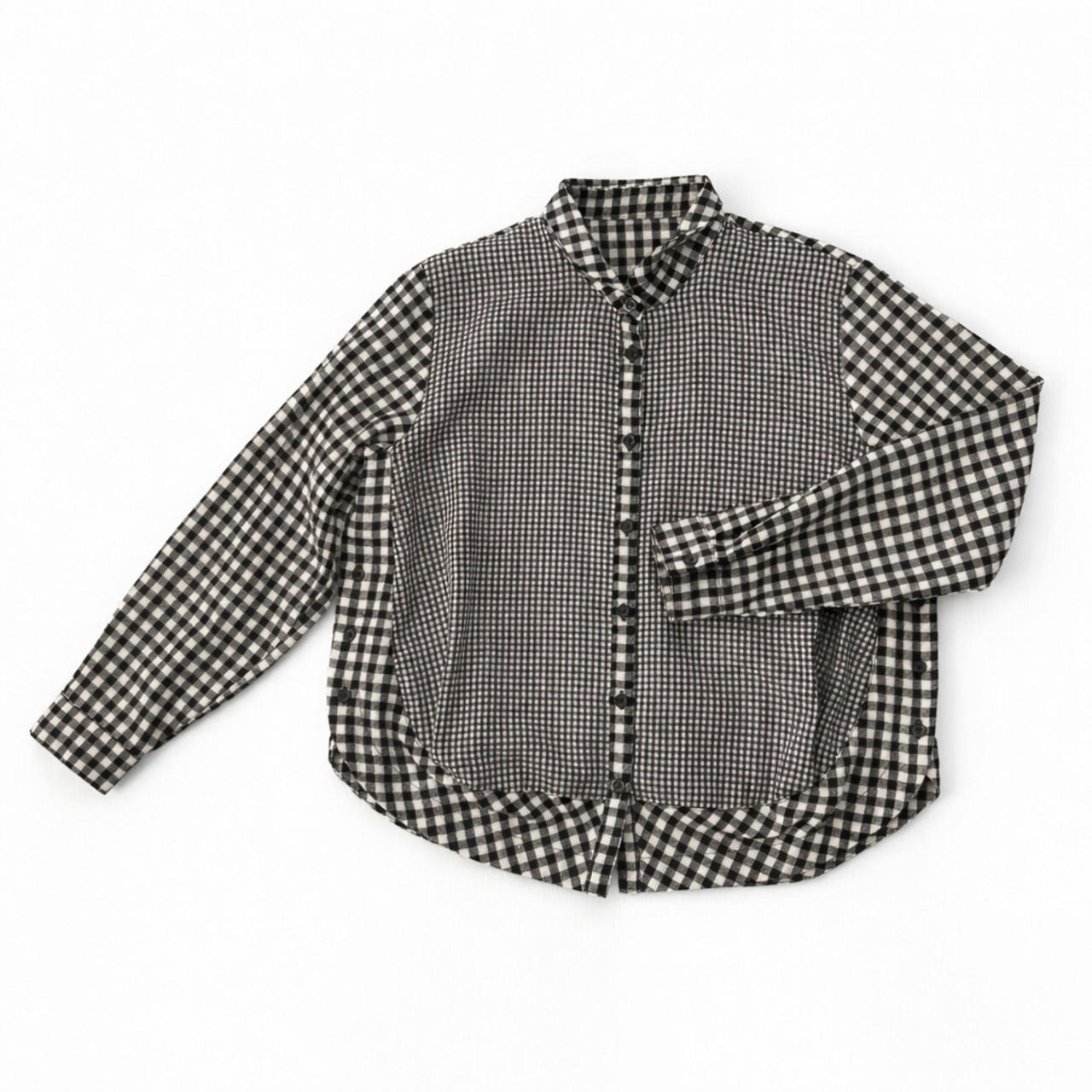 ・大小のチェック柄の切替がポイントのチビ襟ブラウスです。