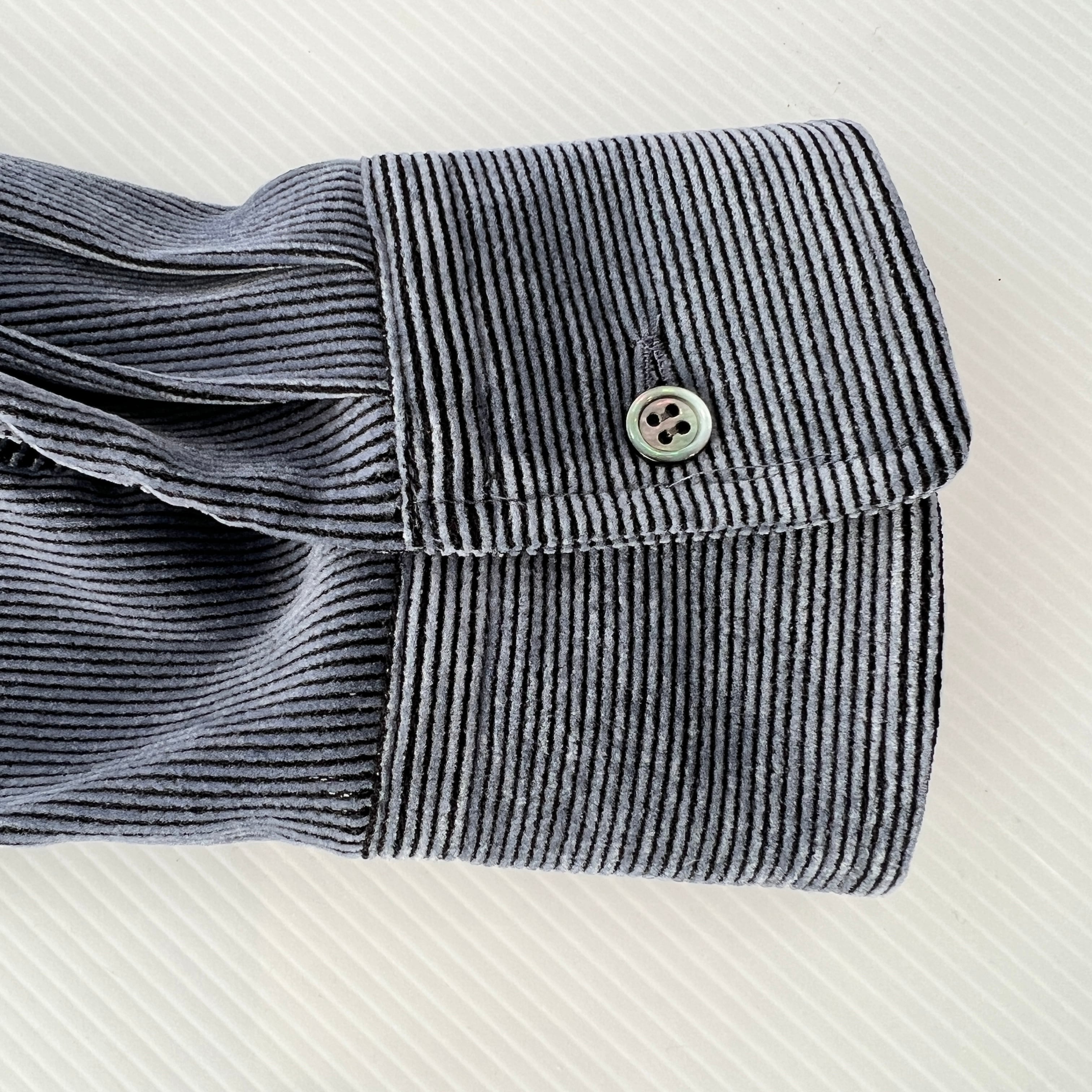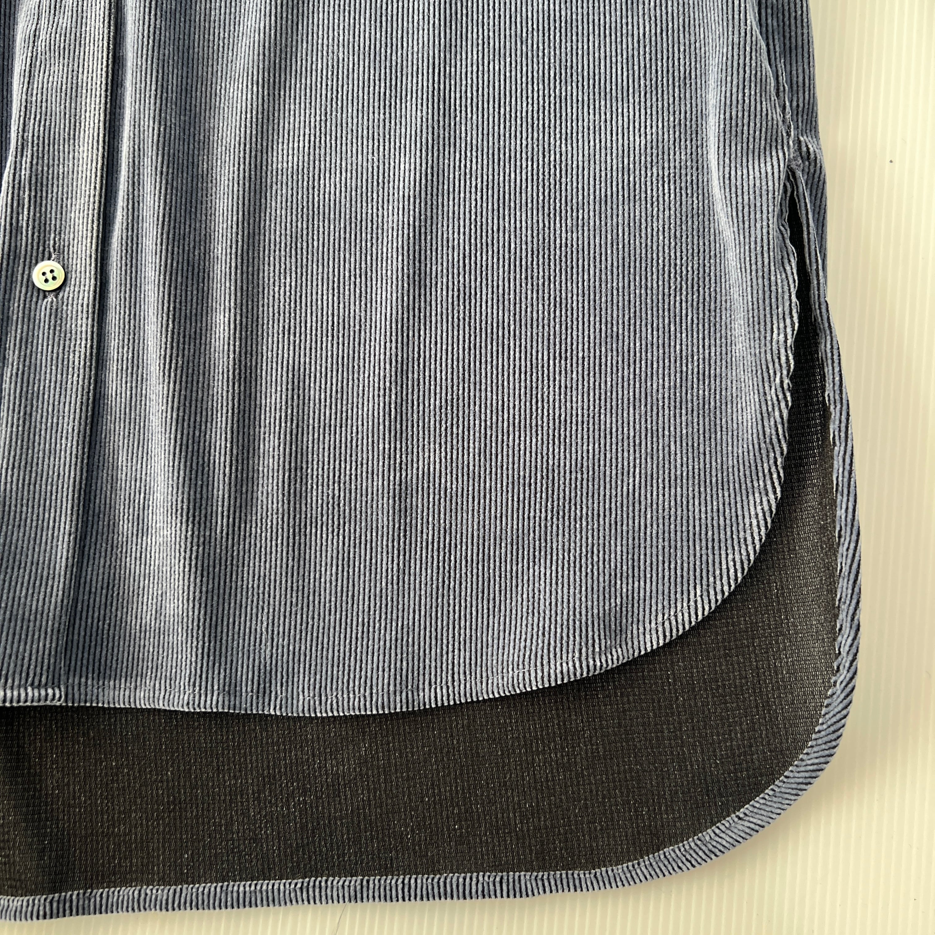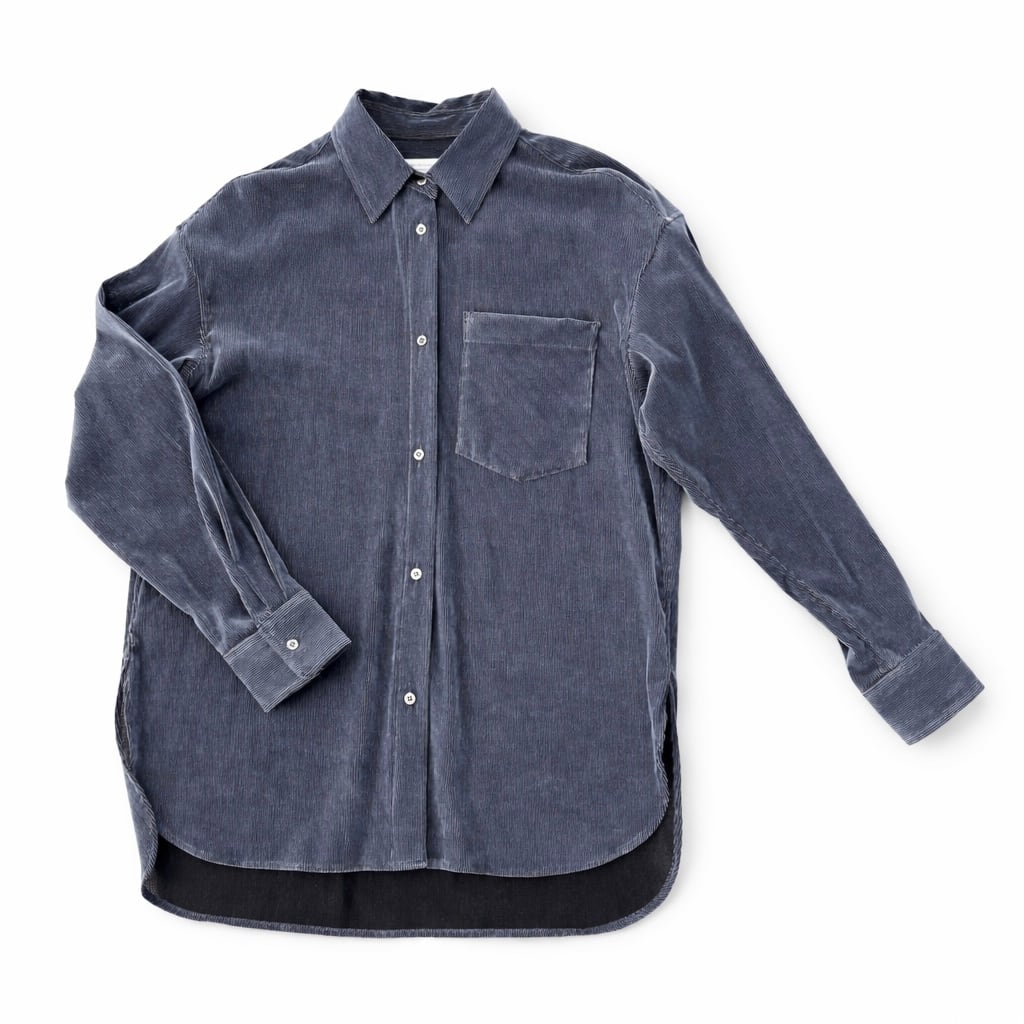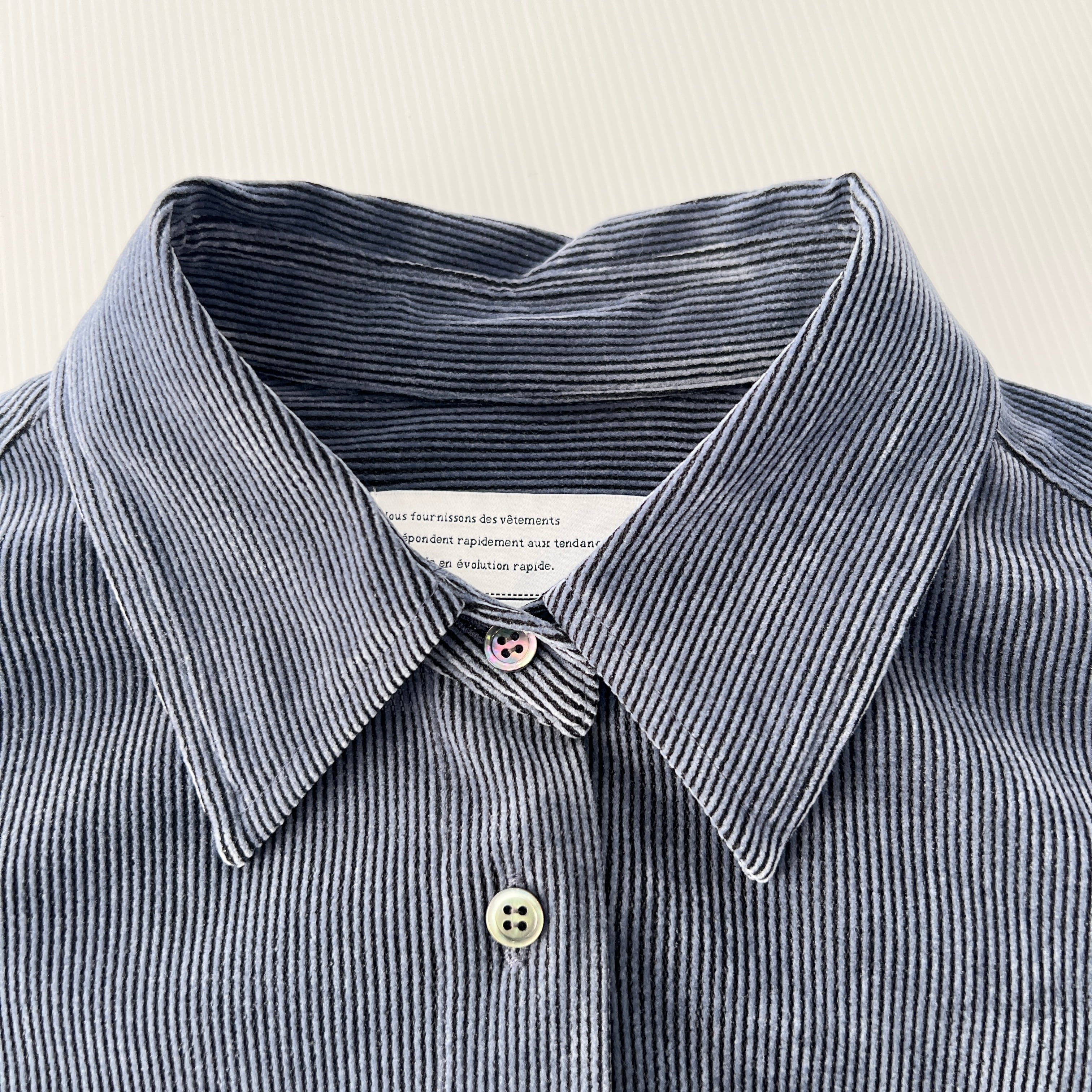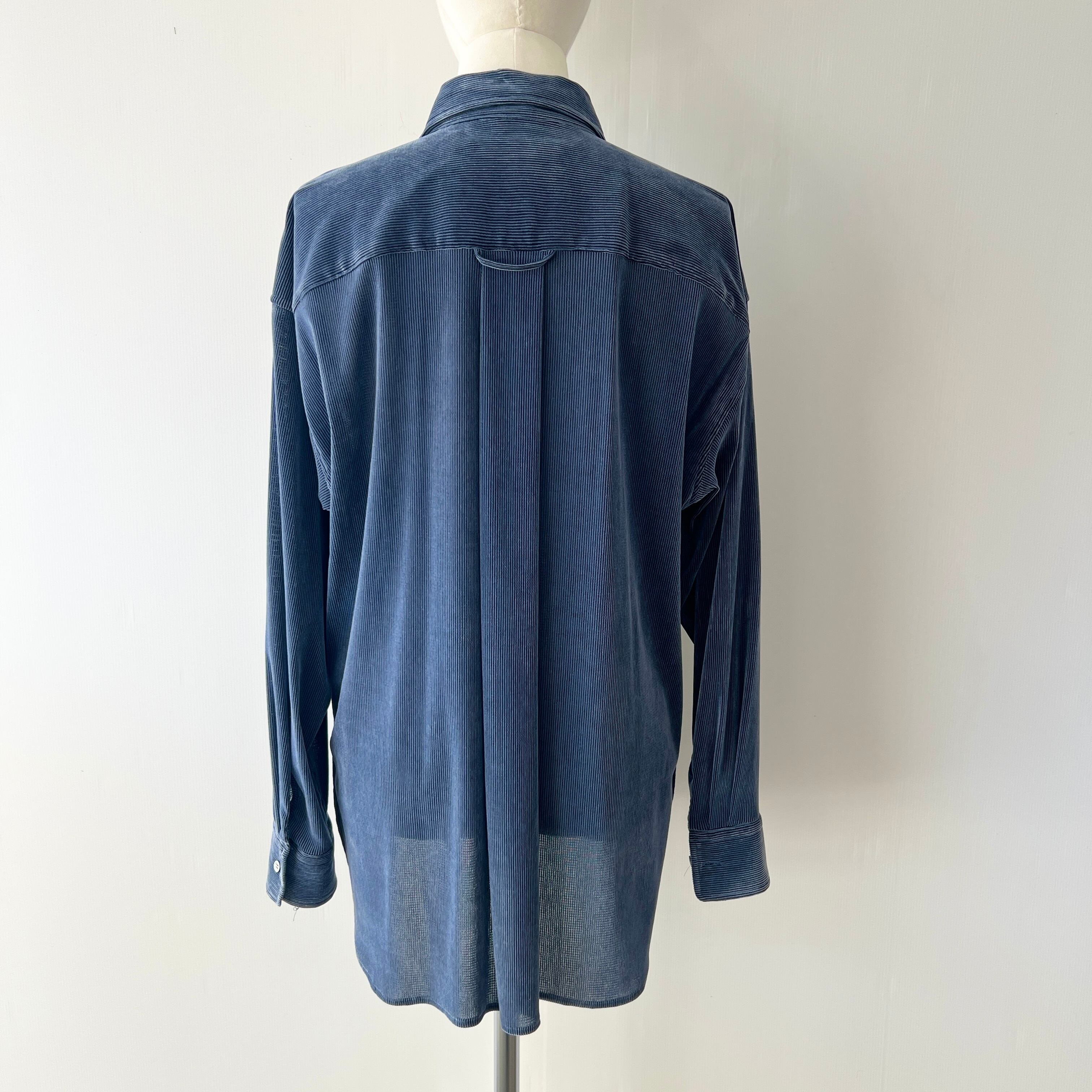 ・細畝のコーデュロイ風のストレッチ素材のフロッキーが上品な表情を演出するブラウスです。
