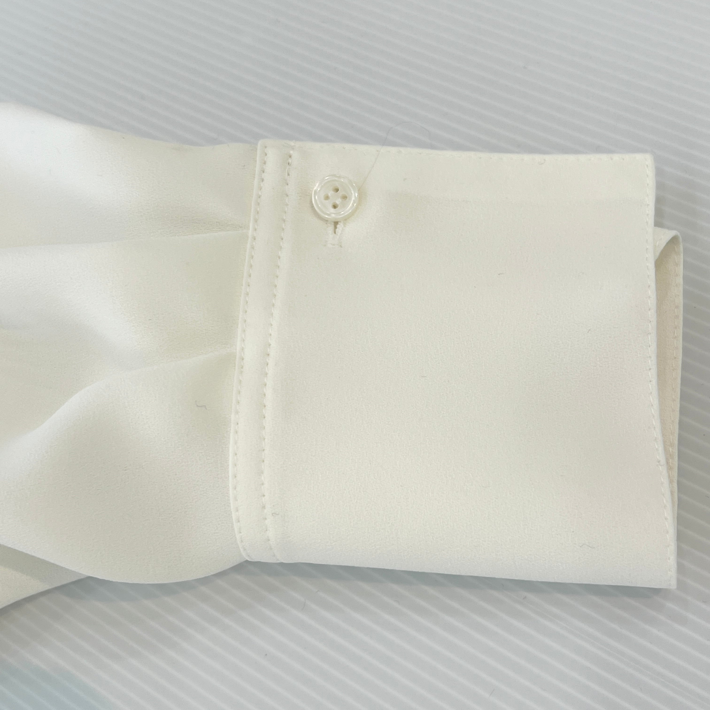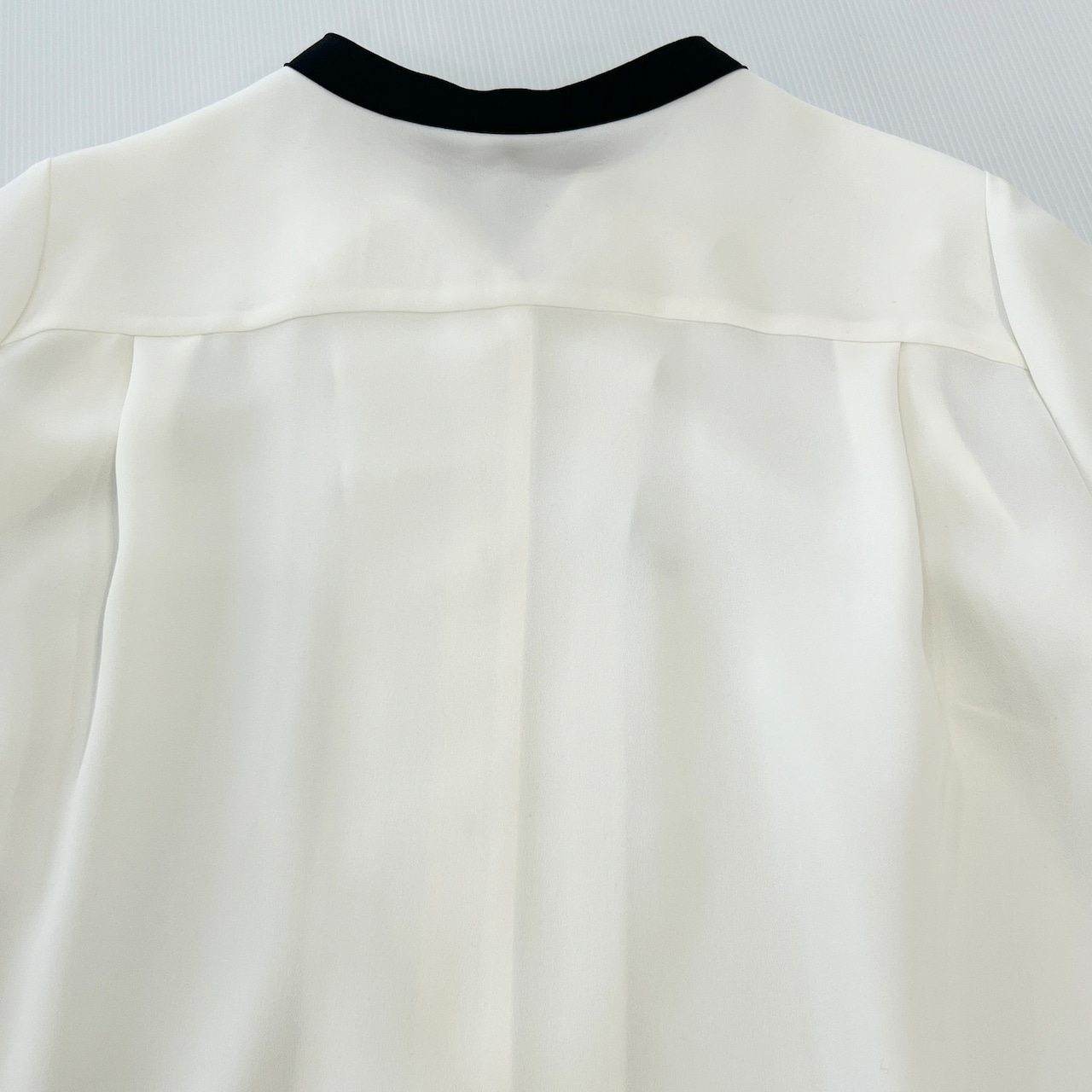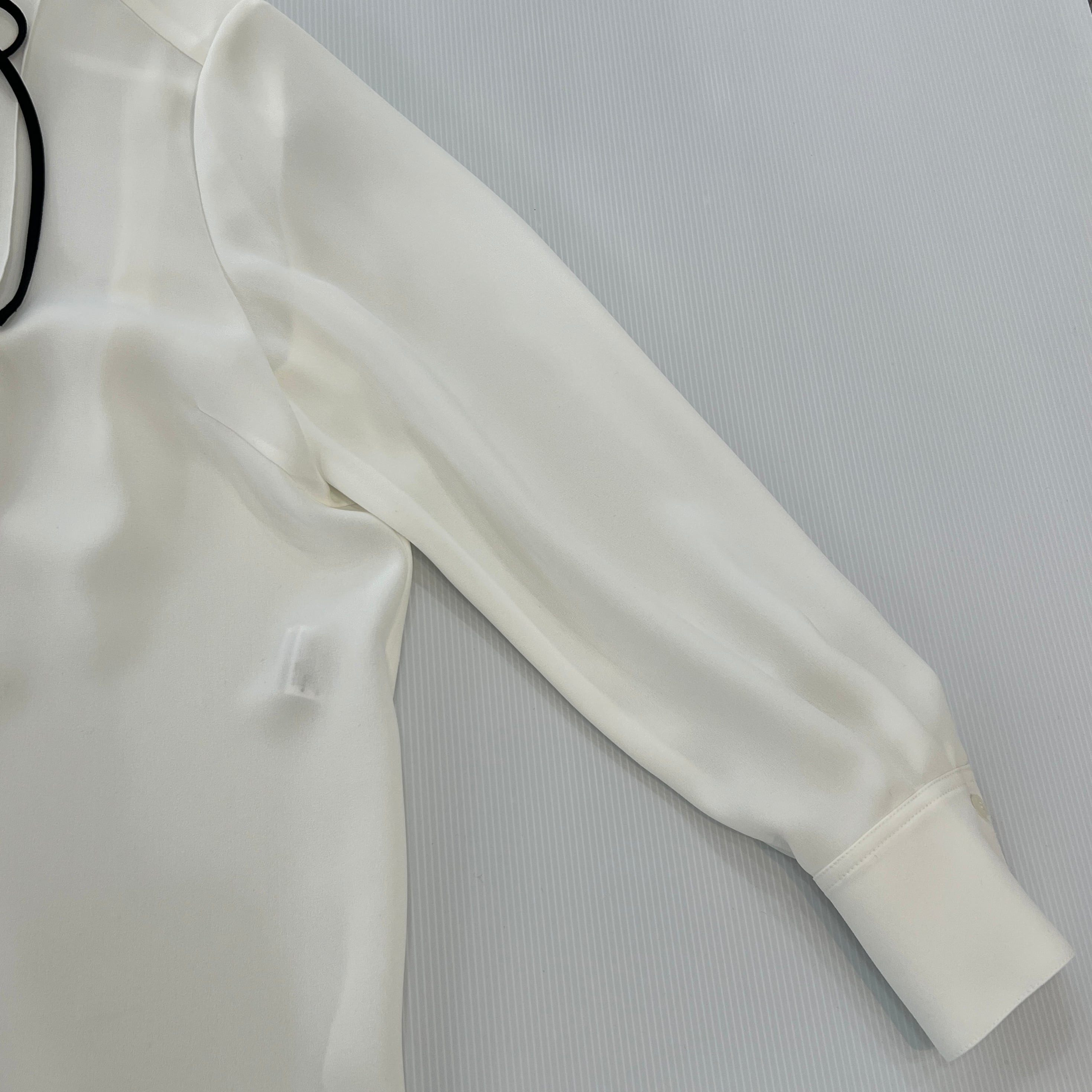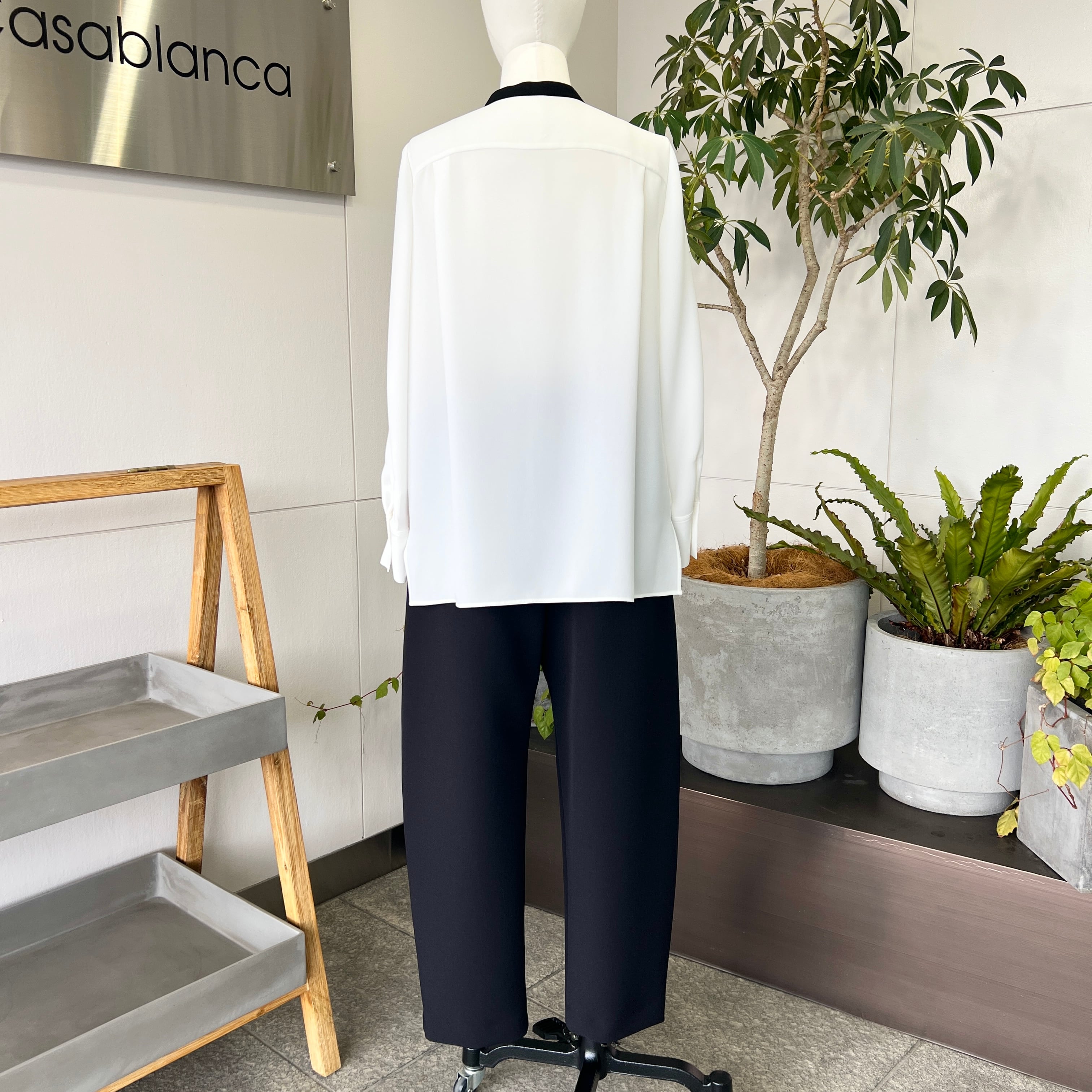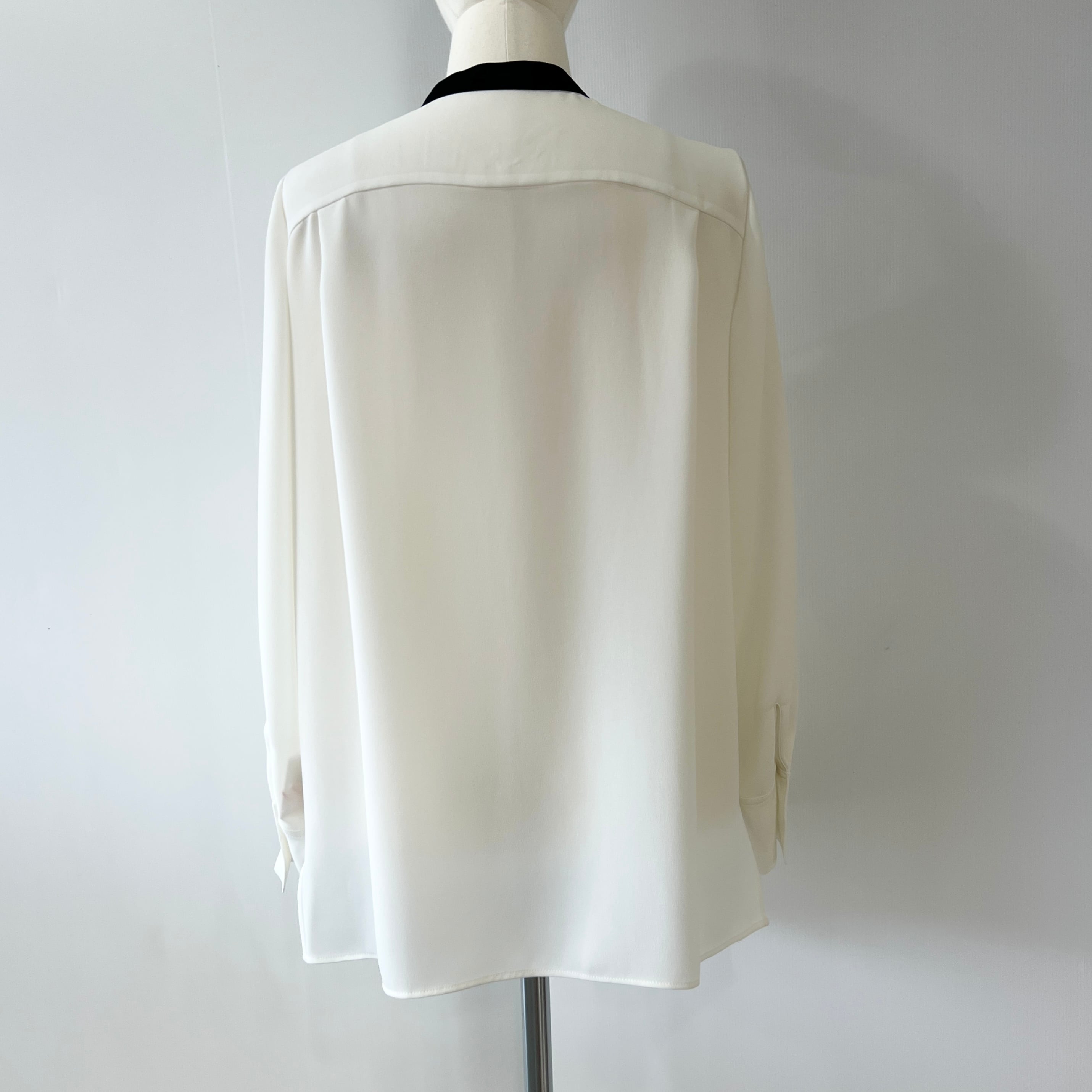 ・フロントタックと配色と華奢なナローボウタイがお洒落なブラウスです。