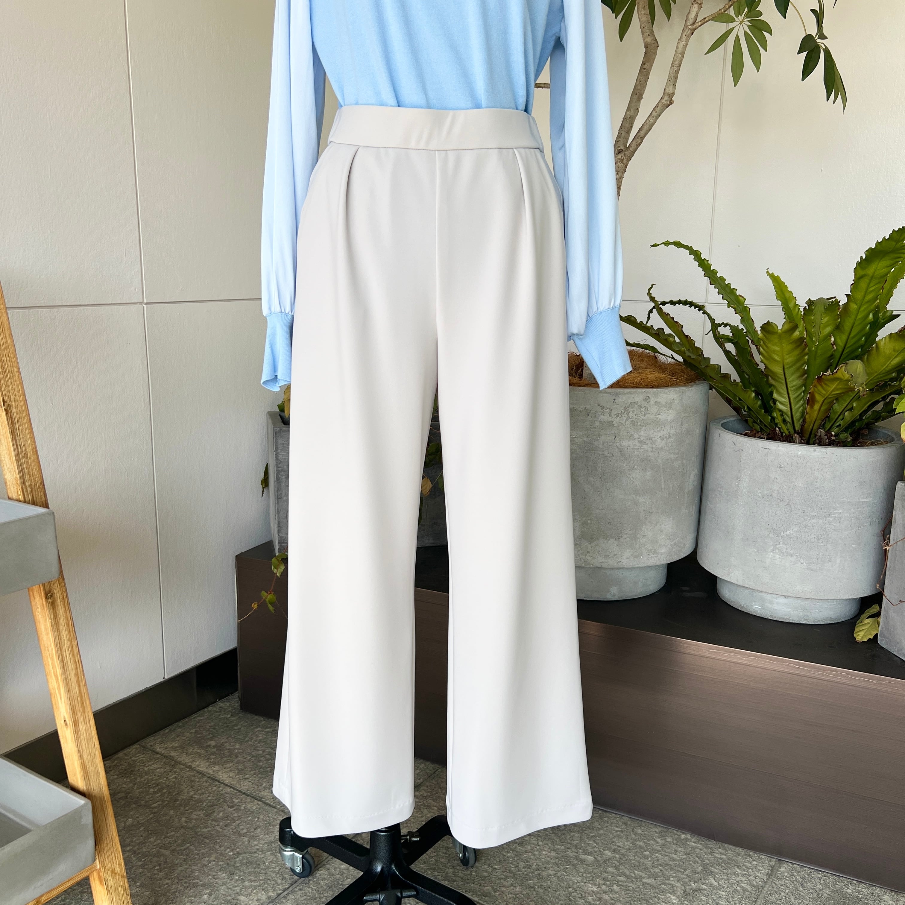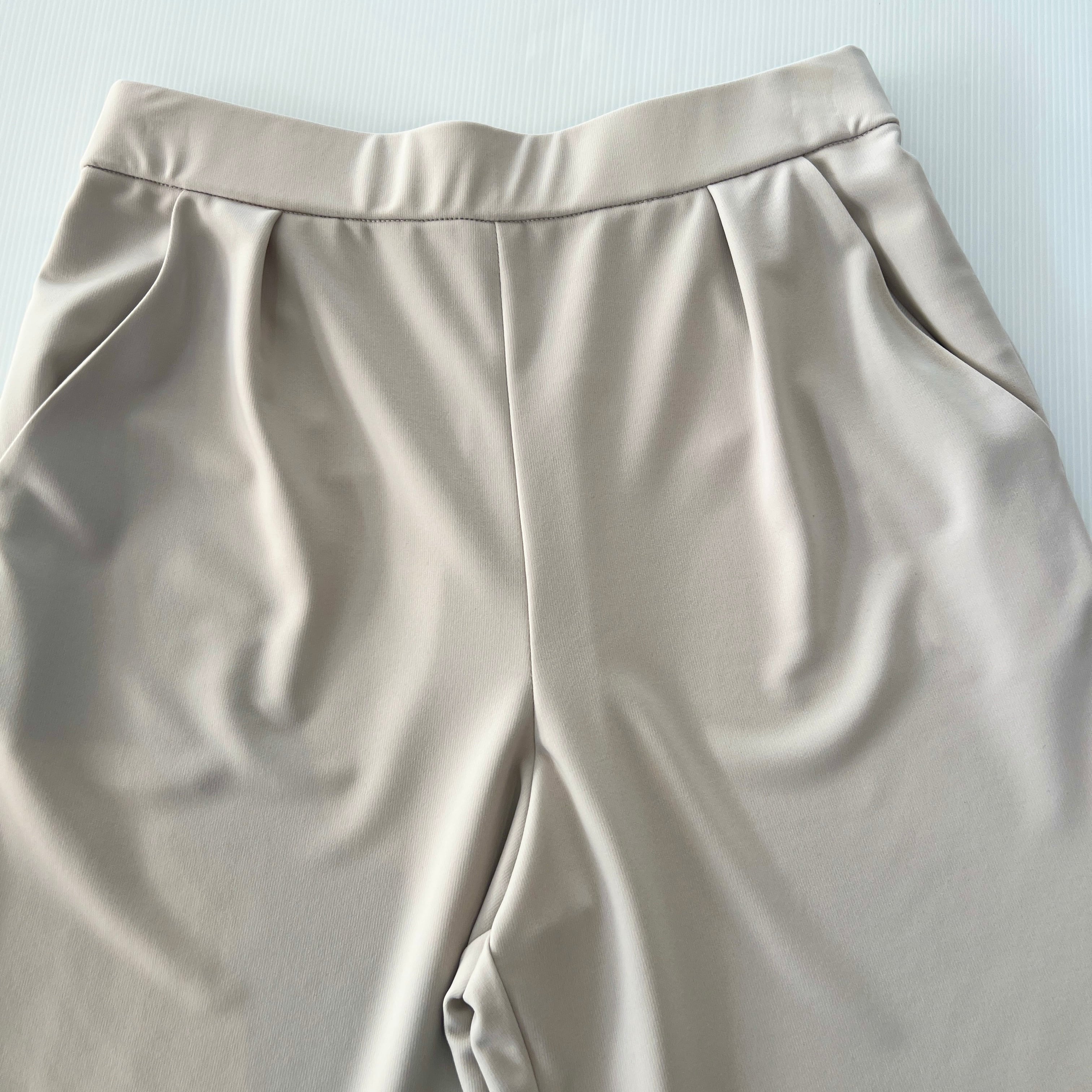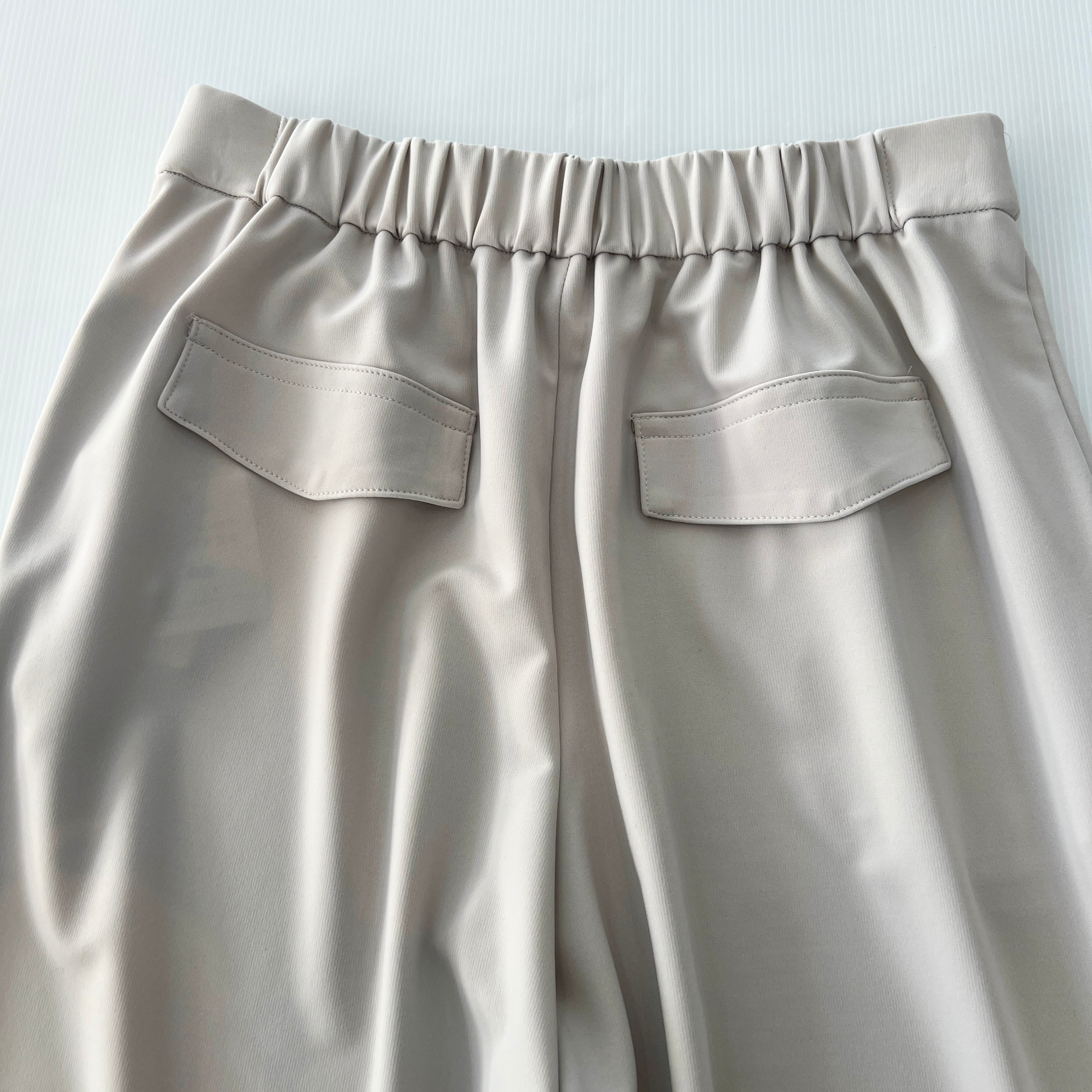 ・ストレッチポリエステルのきれいめセミワイドパンツです。