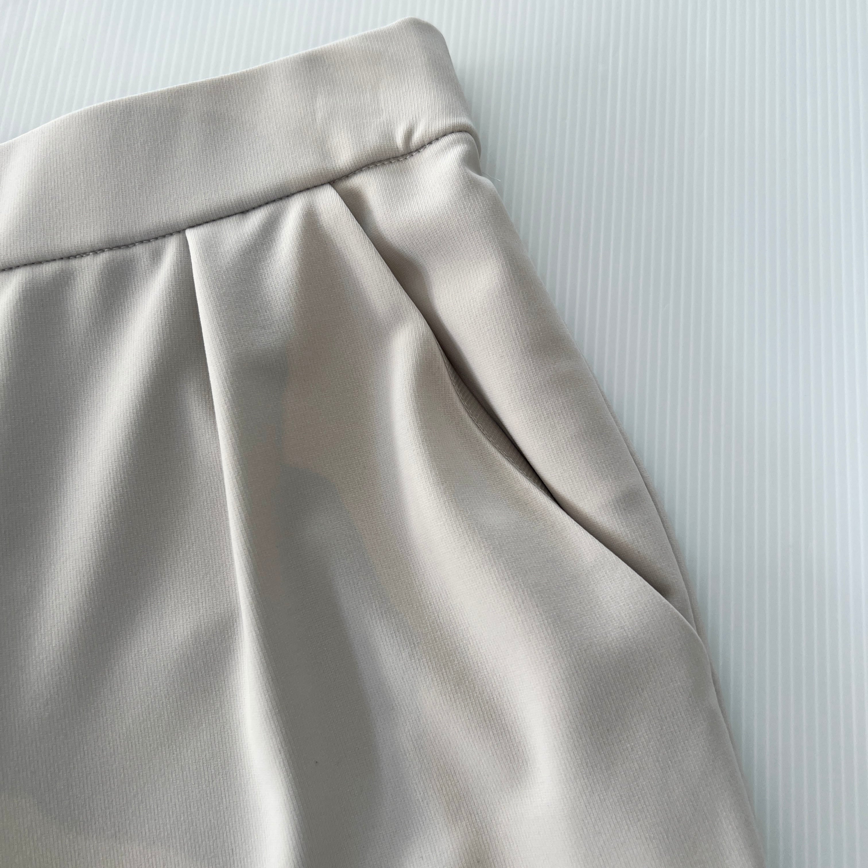 ・程よい肉感でストレッチ性がありおちる素材でウエストは後ろゴムで着心地はイージーで◎