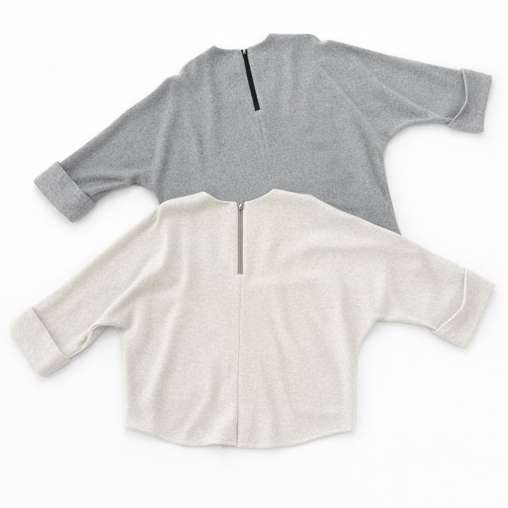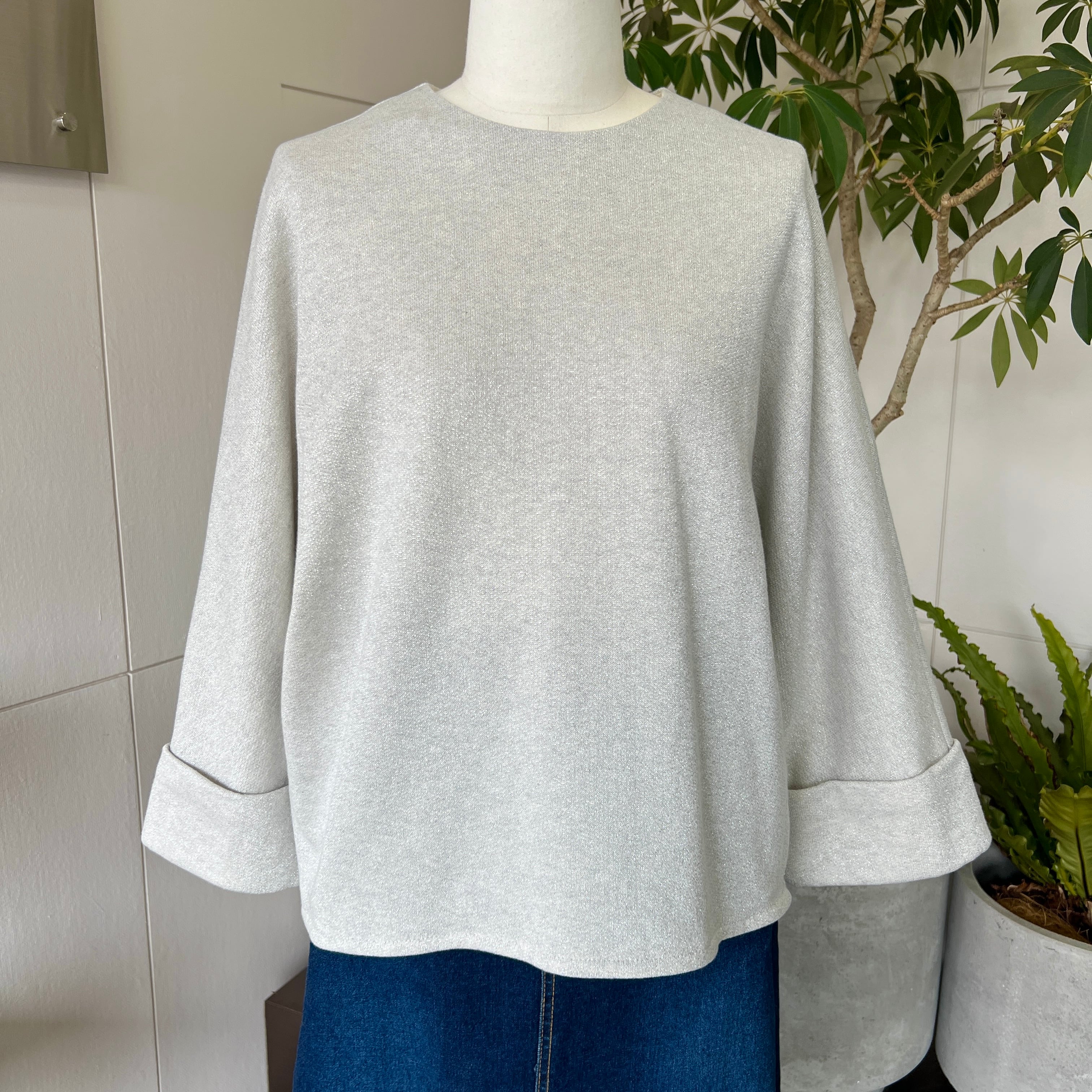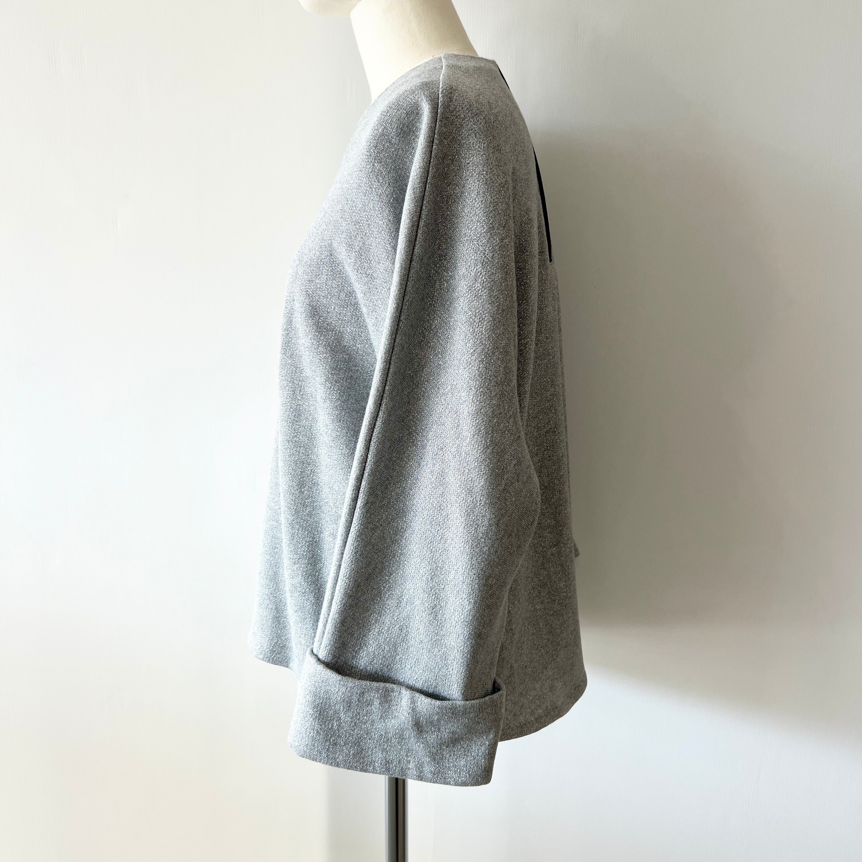 ・ラメがお洒落な裏毛素材の七分袖のクルーネックプルオーバーです。