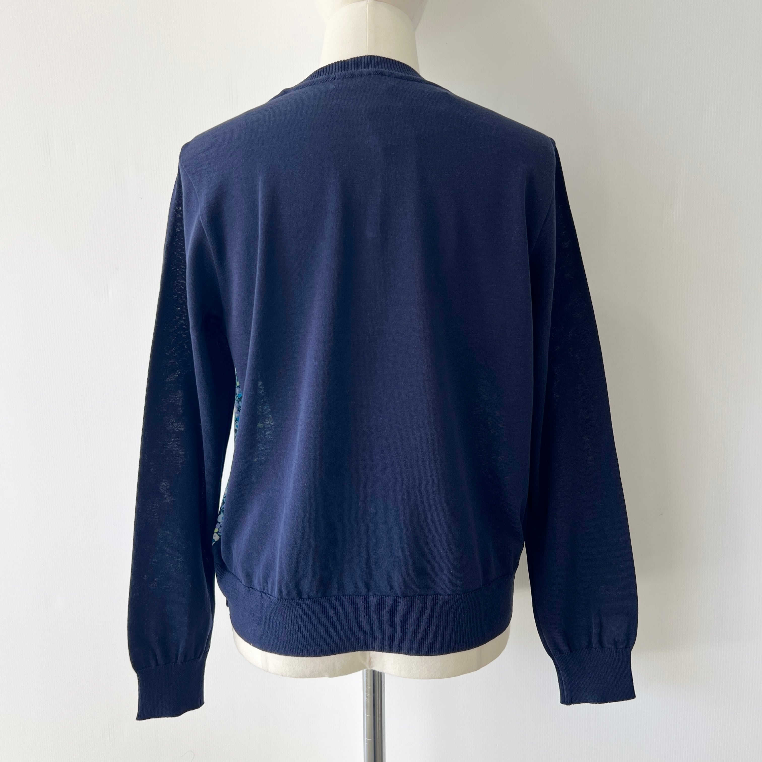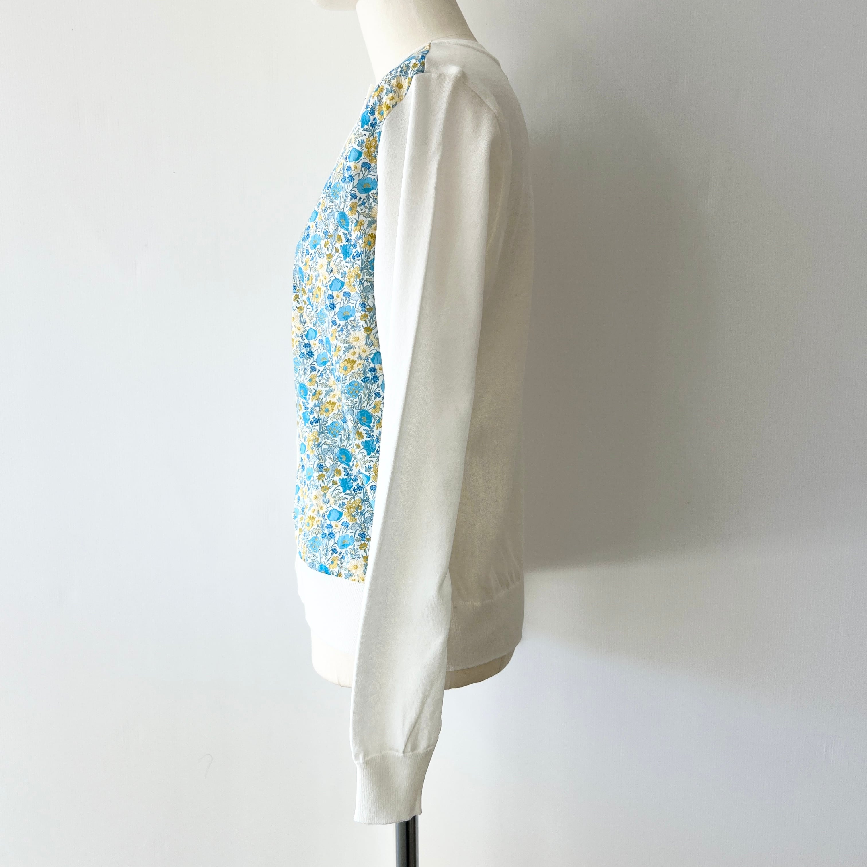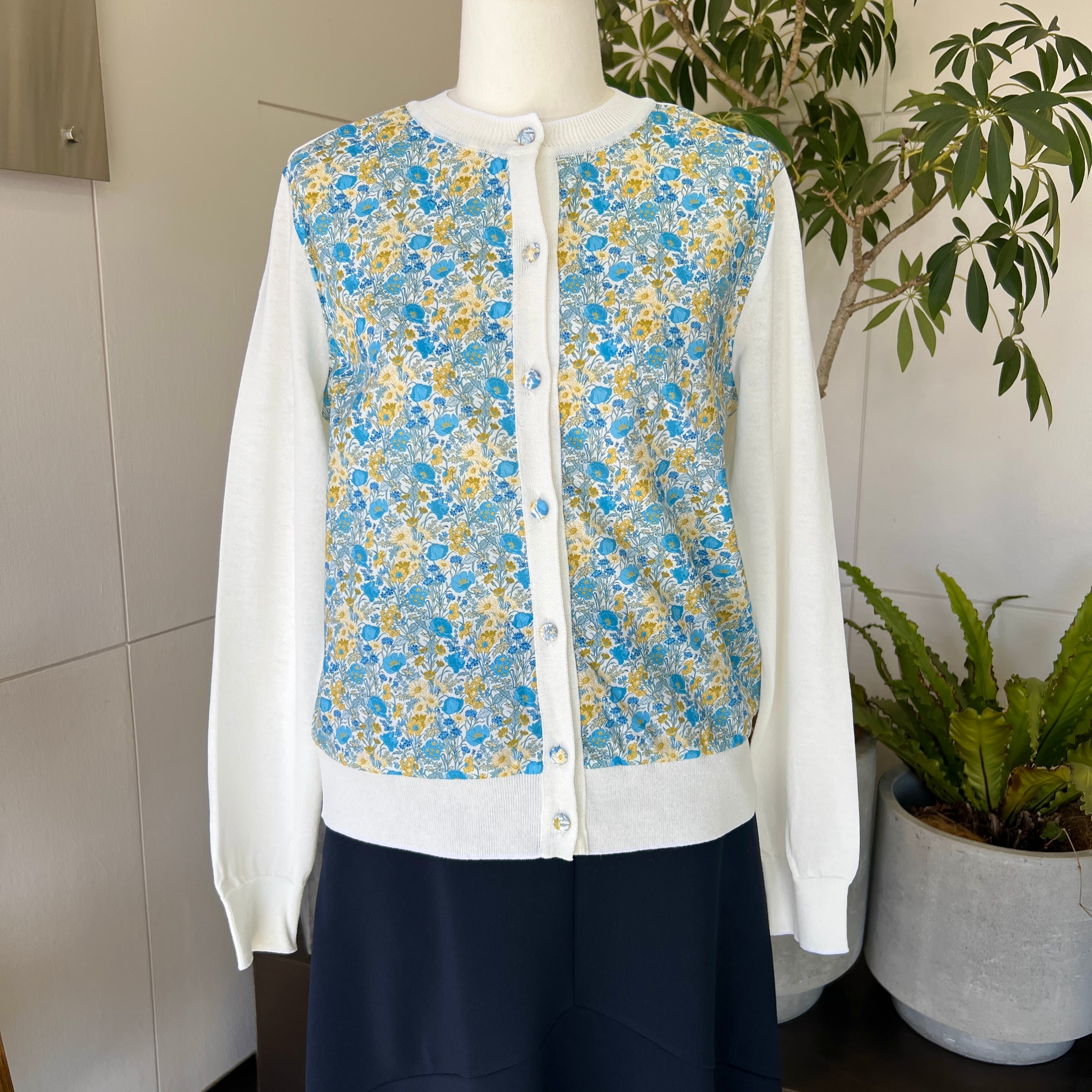 ・リバティプリント×ニットがお洒落なドッキングカーディガンです。