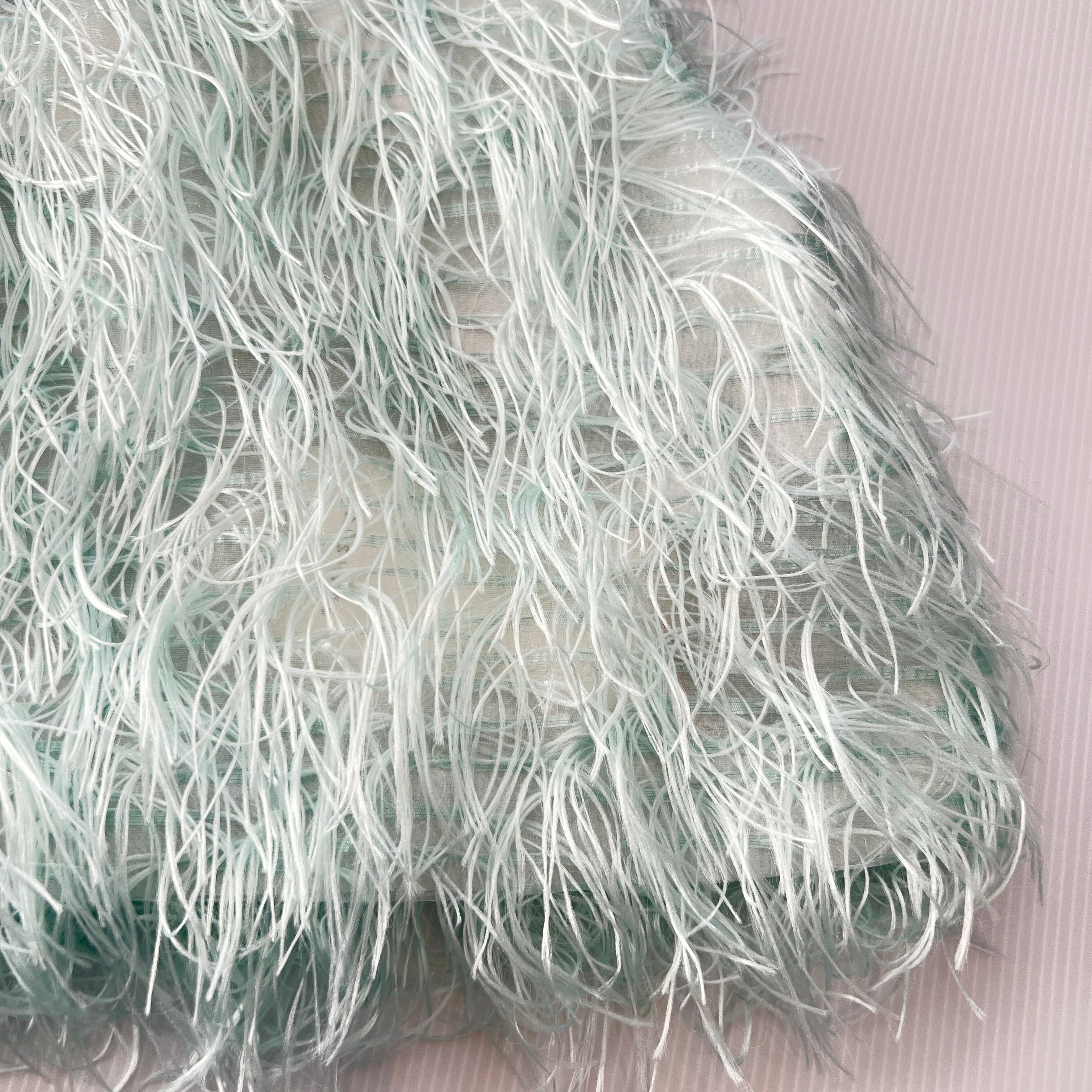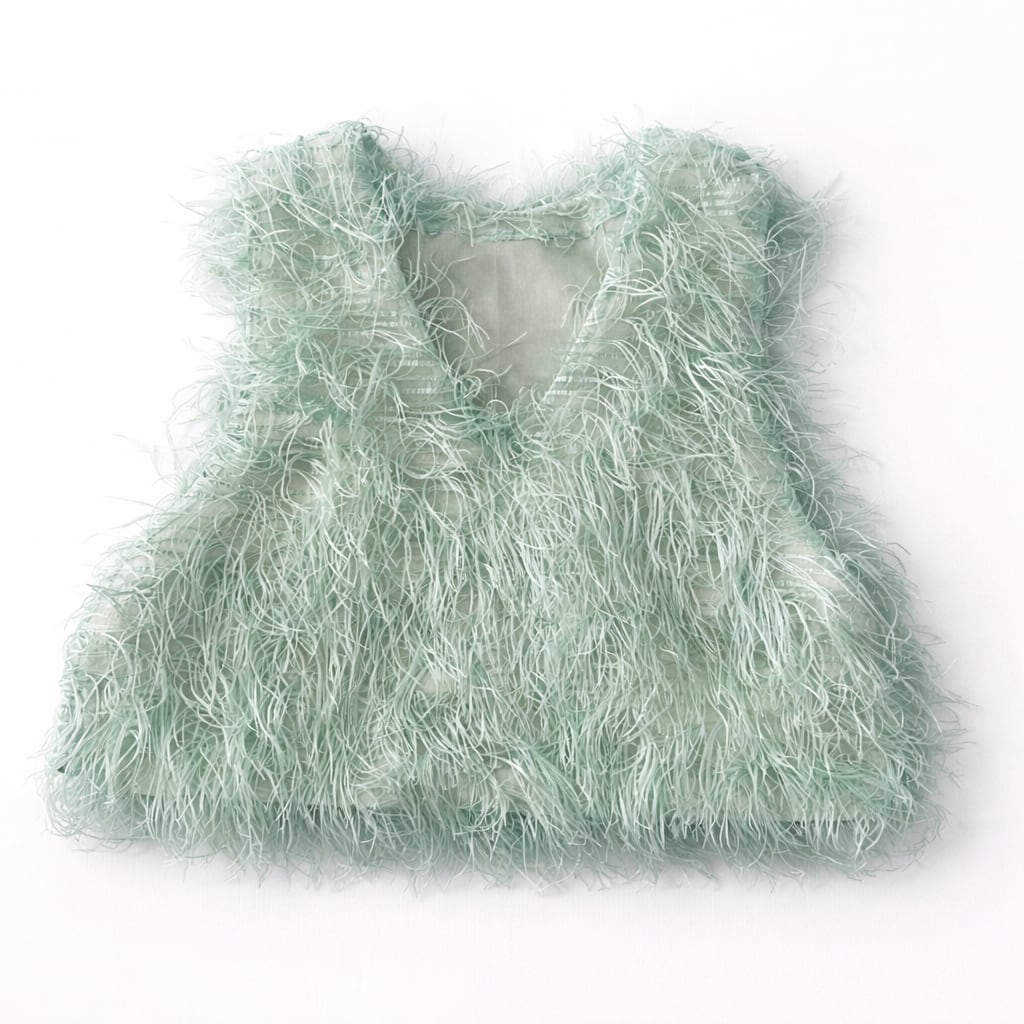 ・繊細で軽やかなフェザー素材が全体を包み込み 動くたびにふわりと揺れる華やかな一枚です。