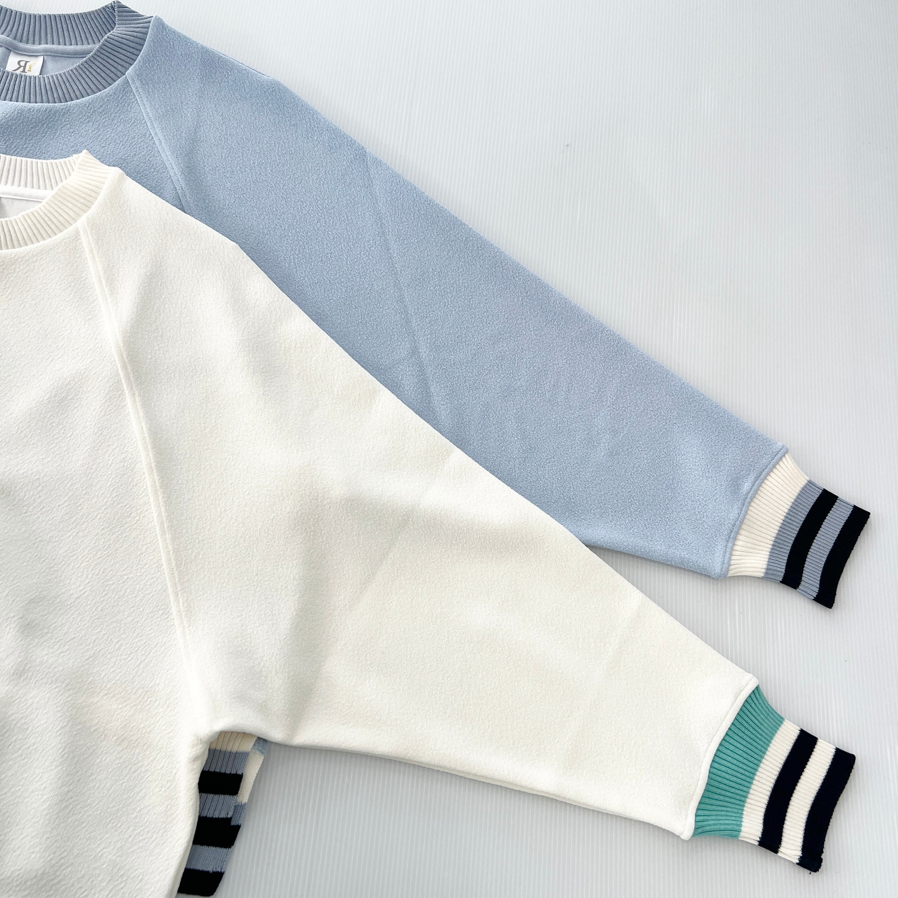 ・袖口と裾の配色ボーダーリブがポイントのクルーネックプルオーバーです。