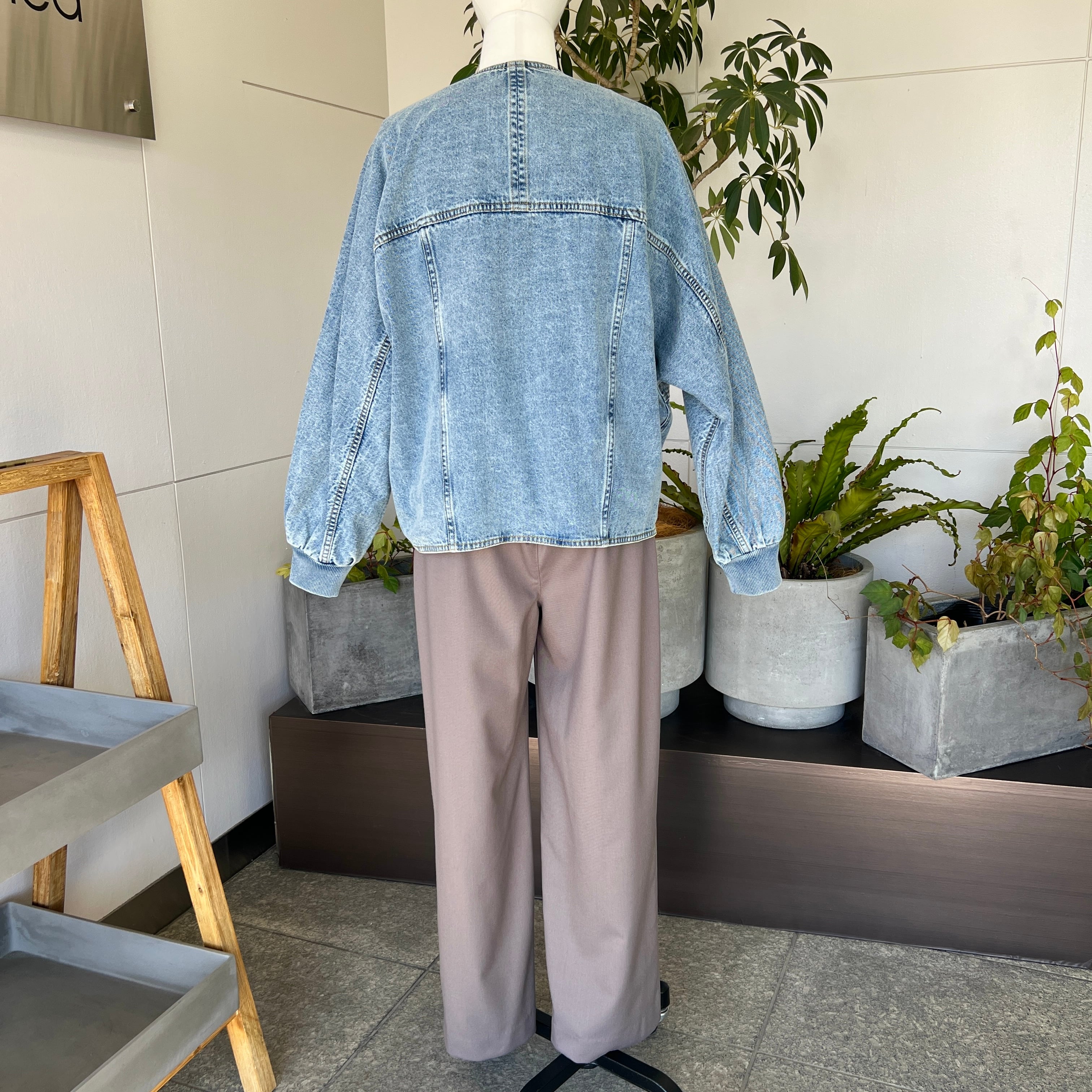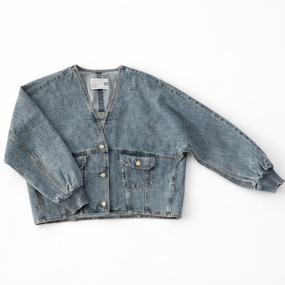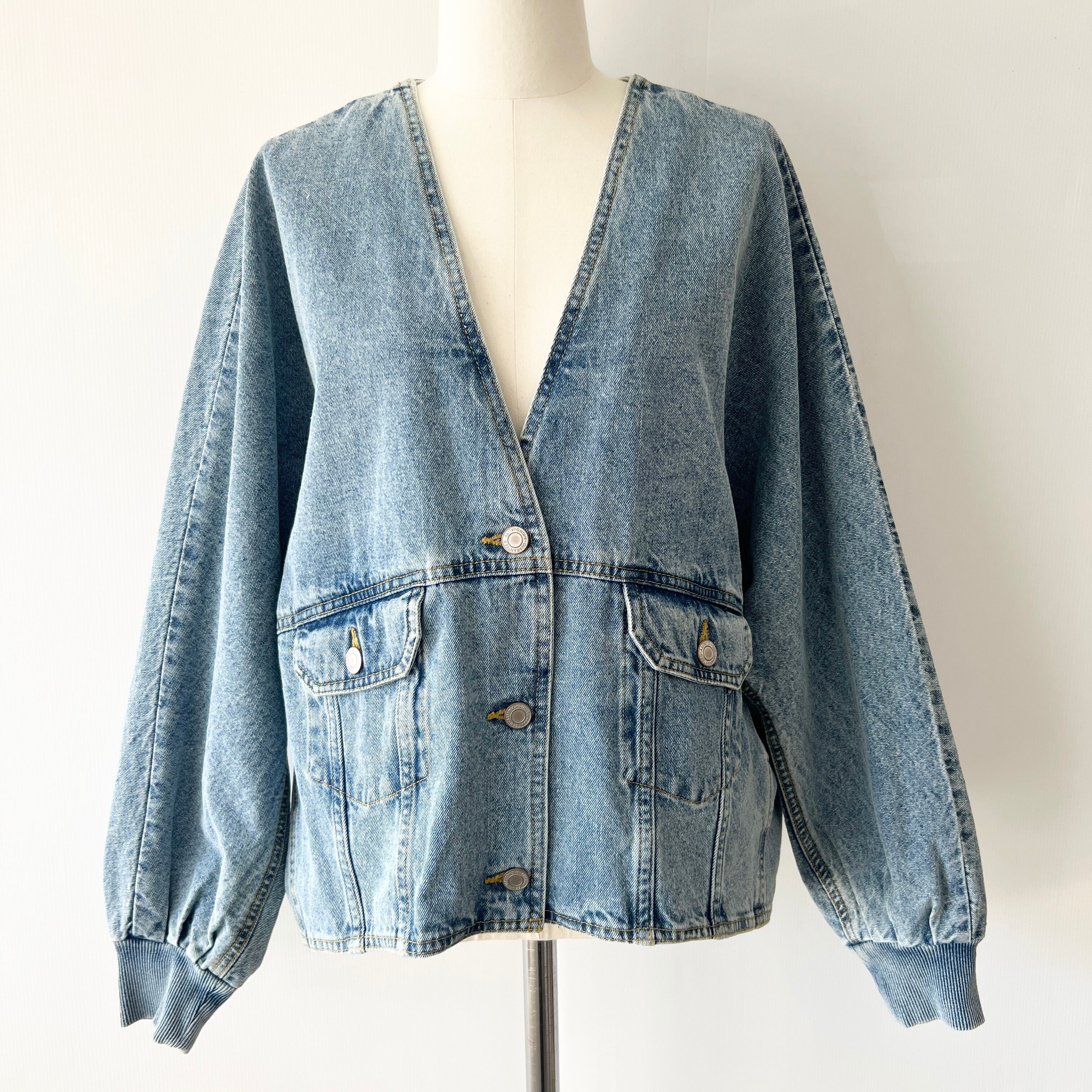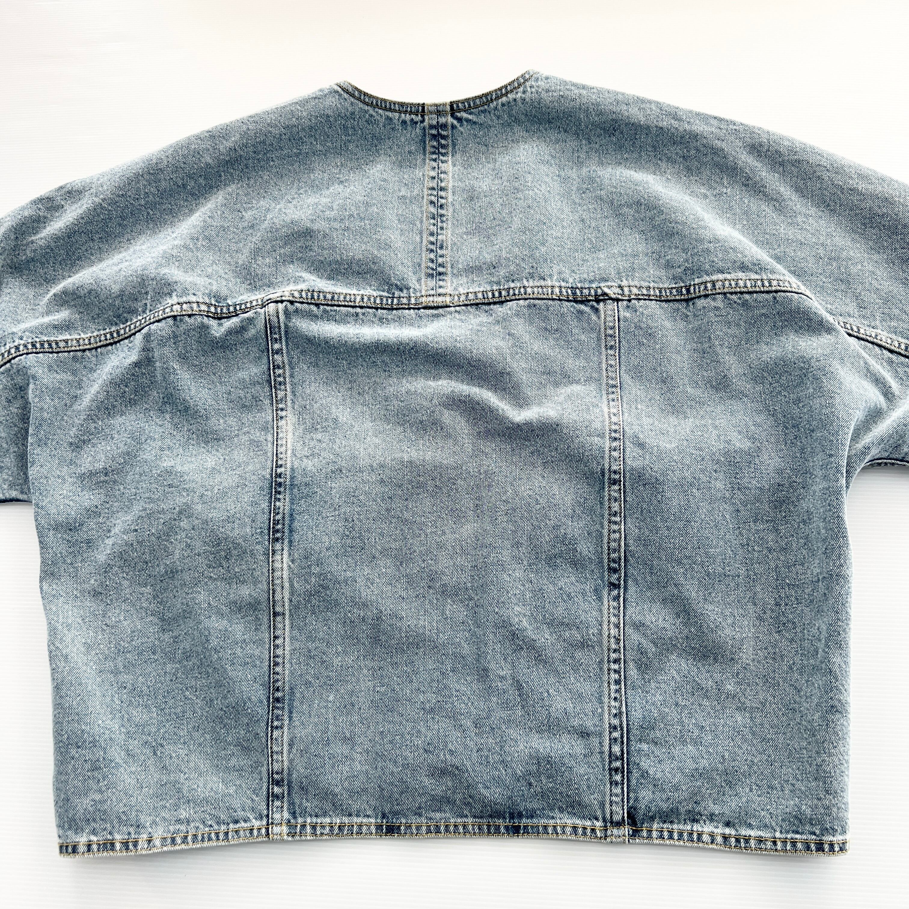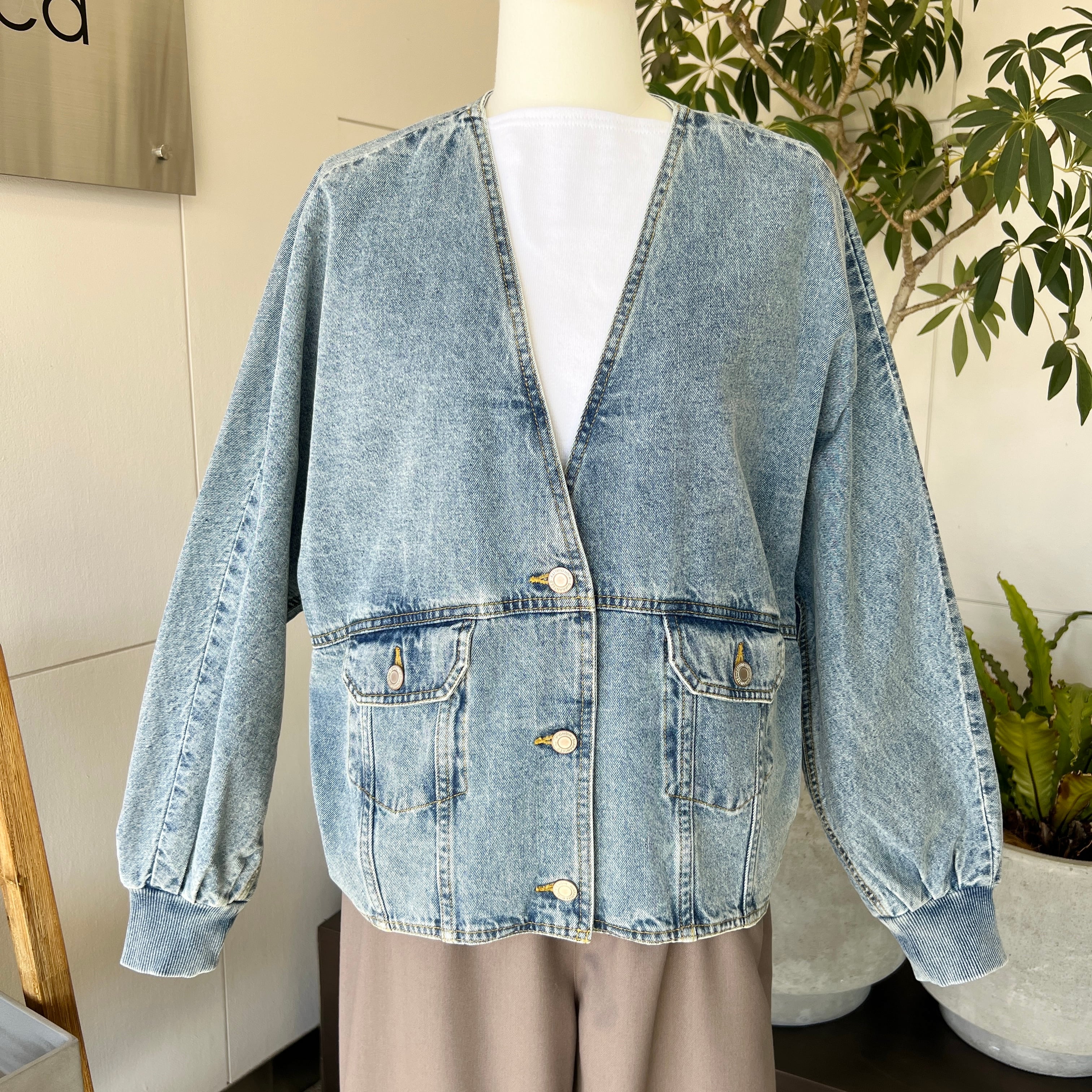 ・深めのVネックがポイントのオーバーサイズデニムジャケットです。