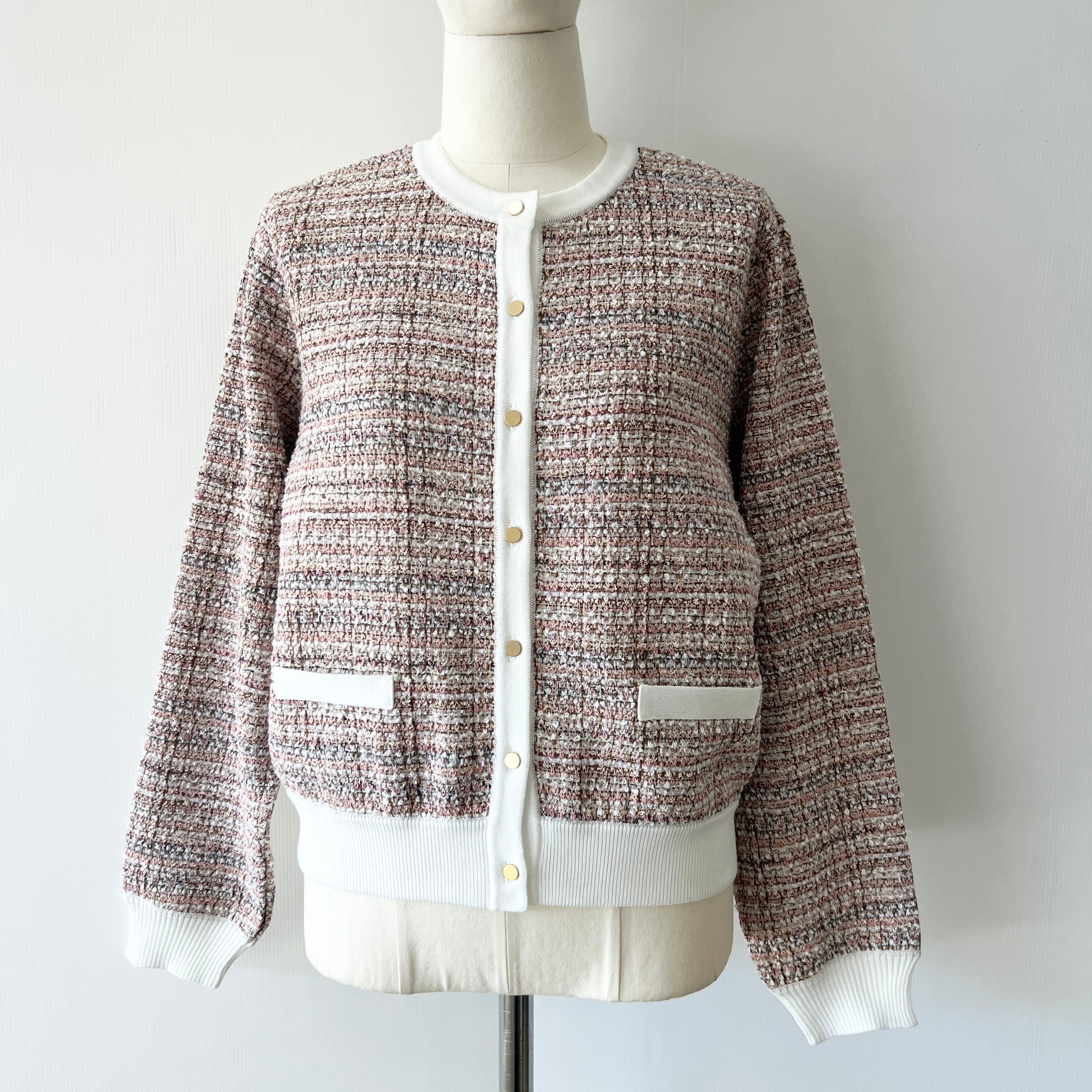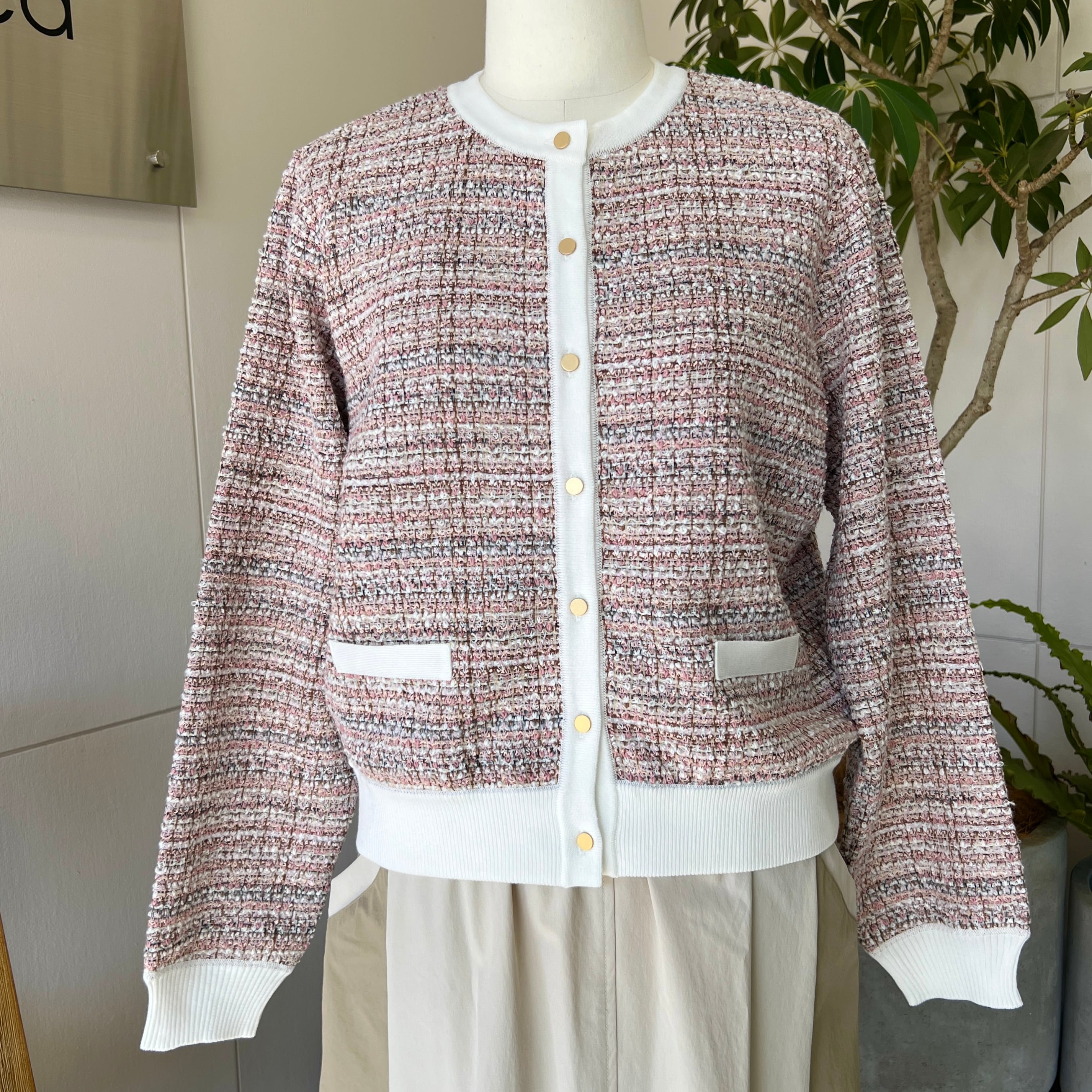 ・ソフトツイードの上品なクルーネックカーディガンです。
