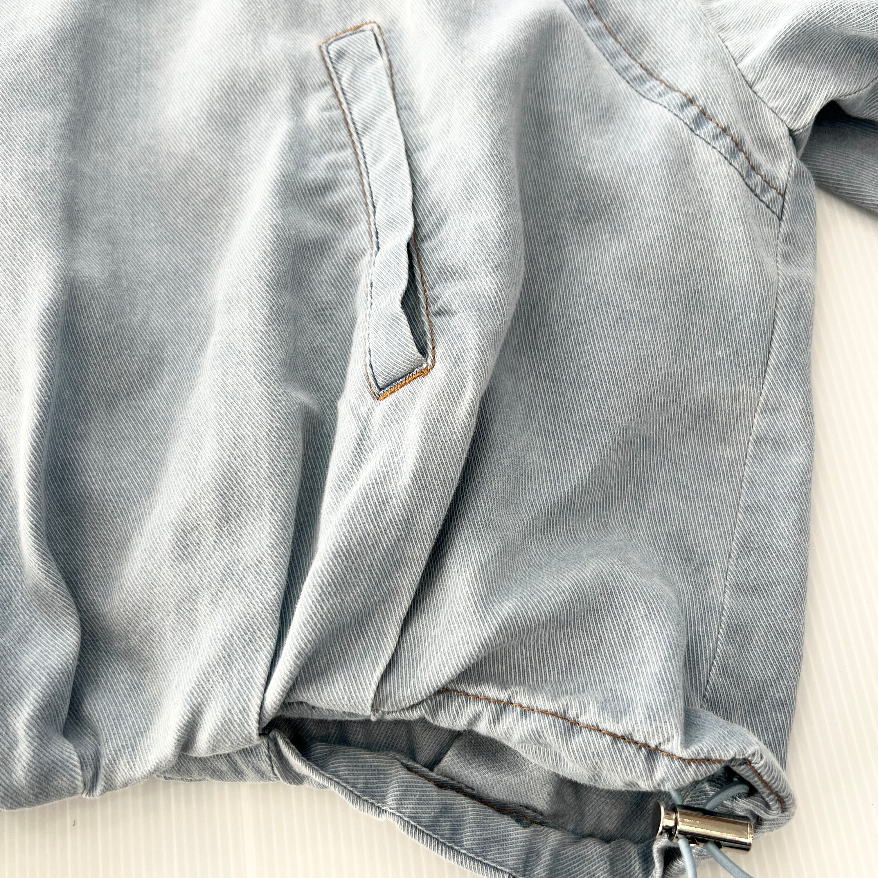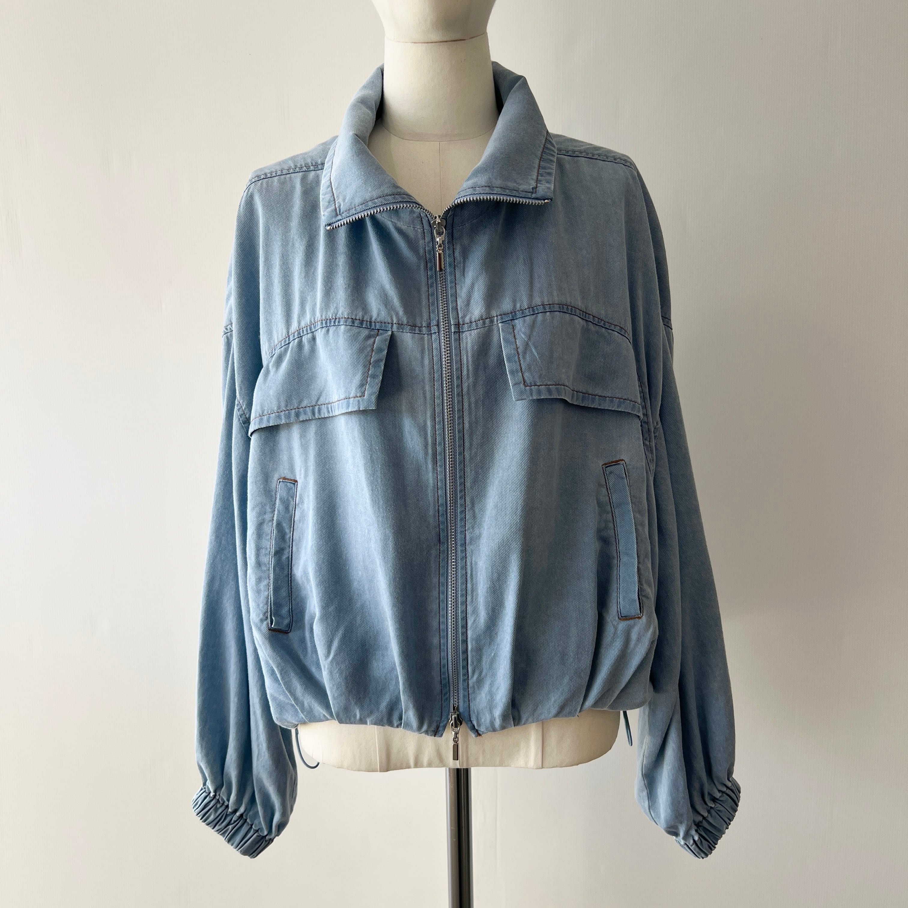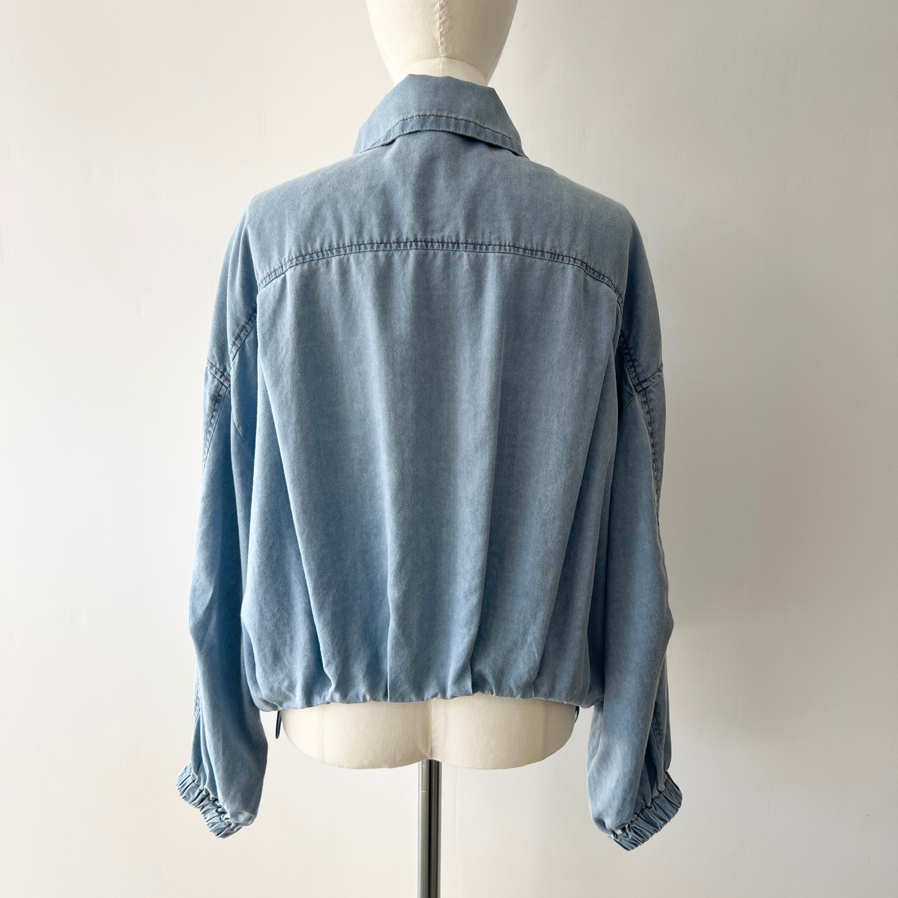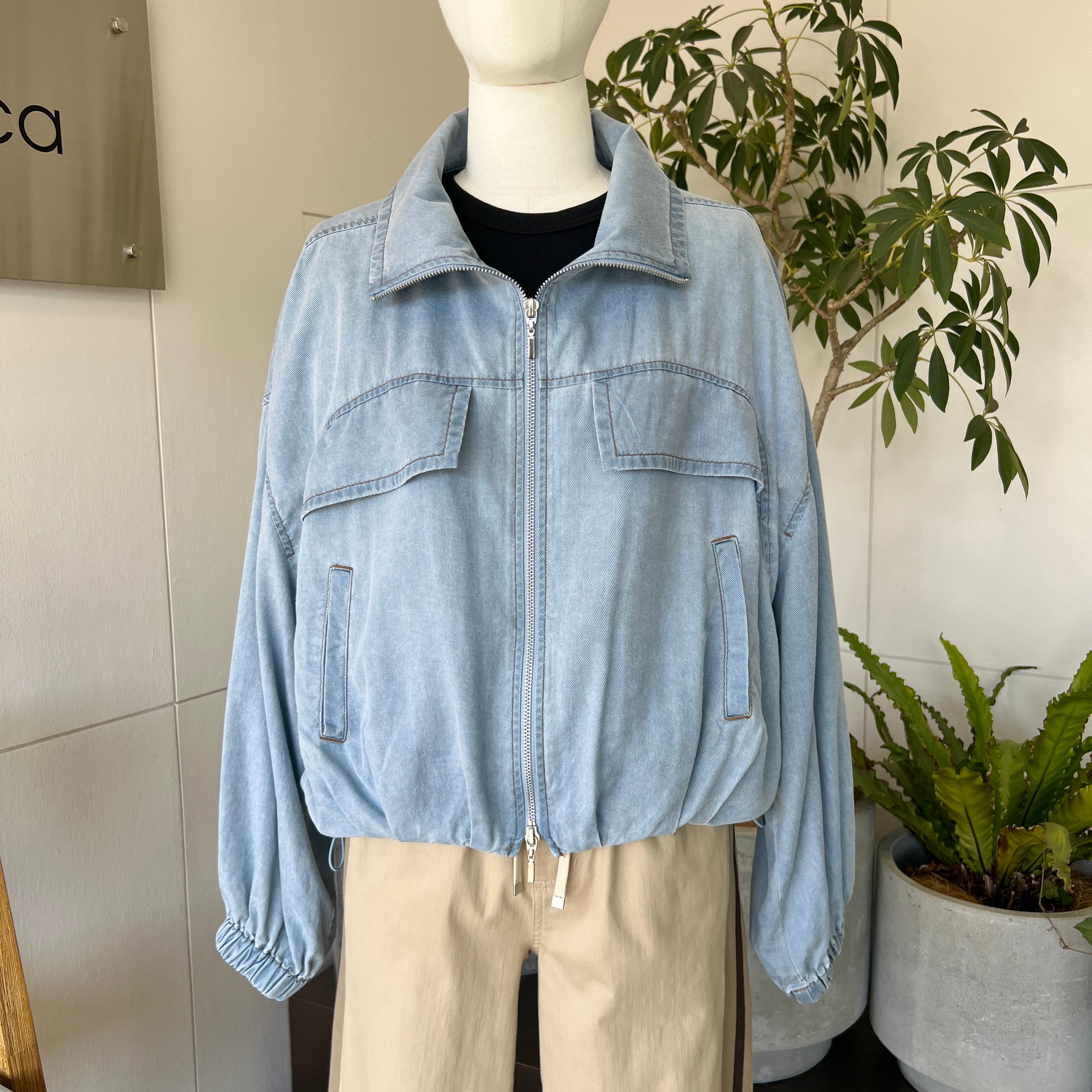 ・裾のタックで丸いシルエットがポイントのソフトデニムジップジャケットです。