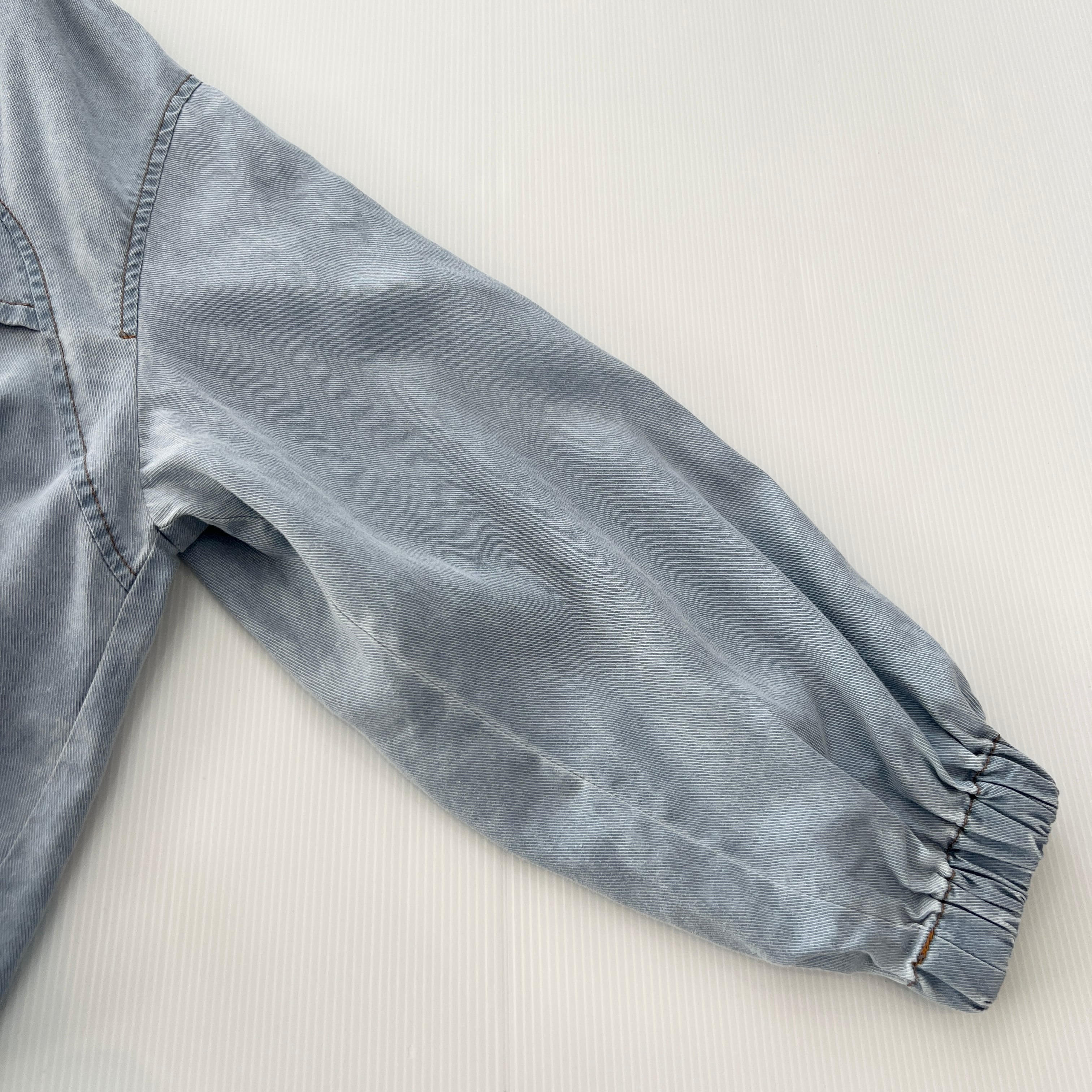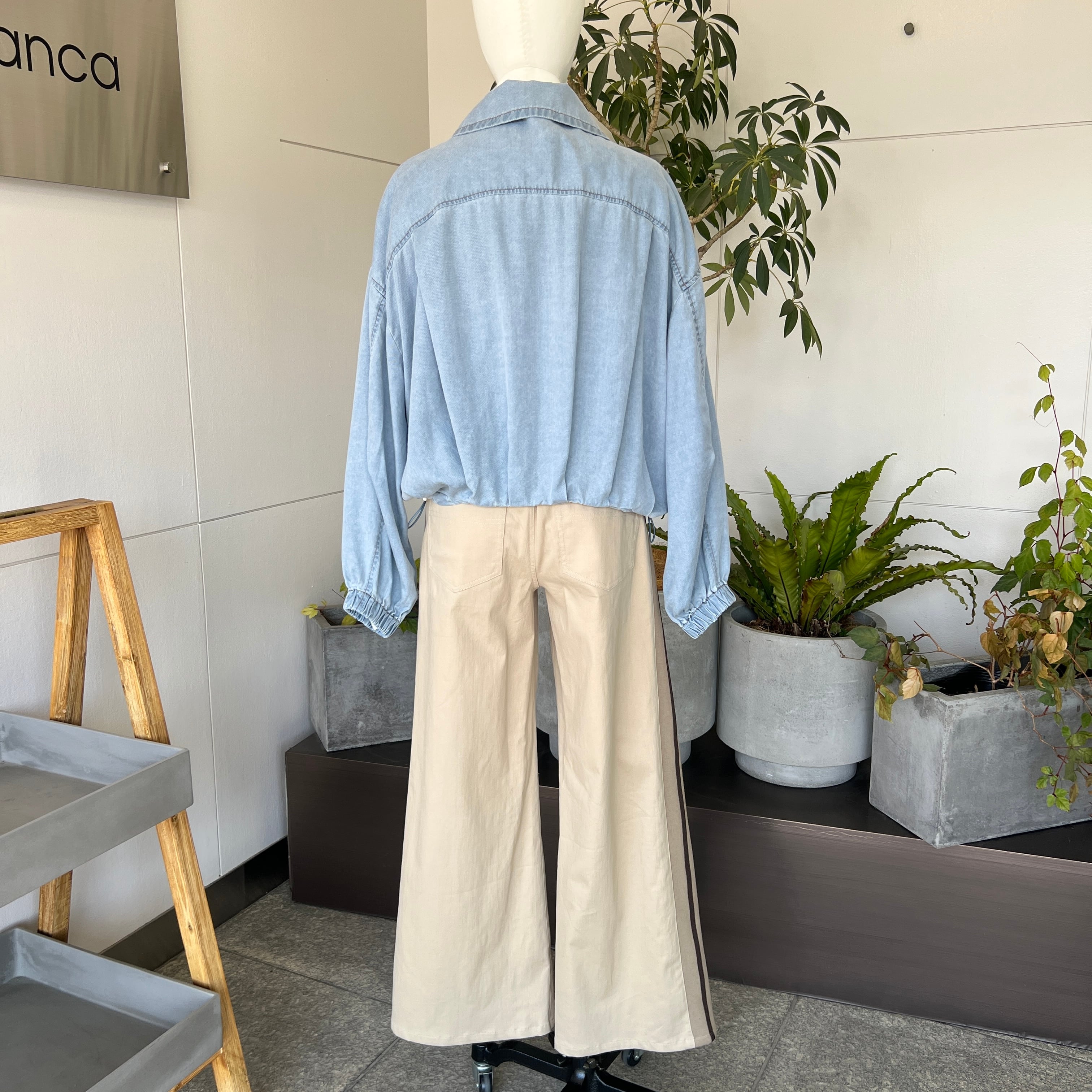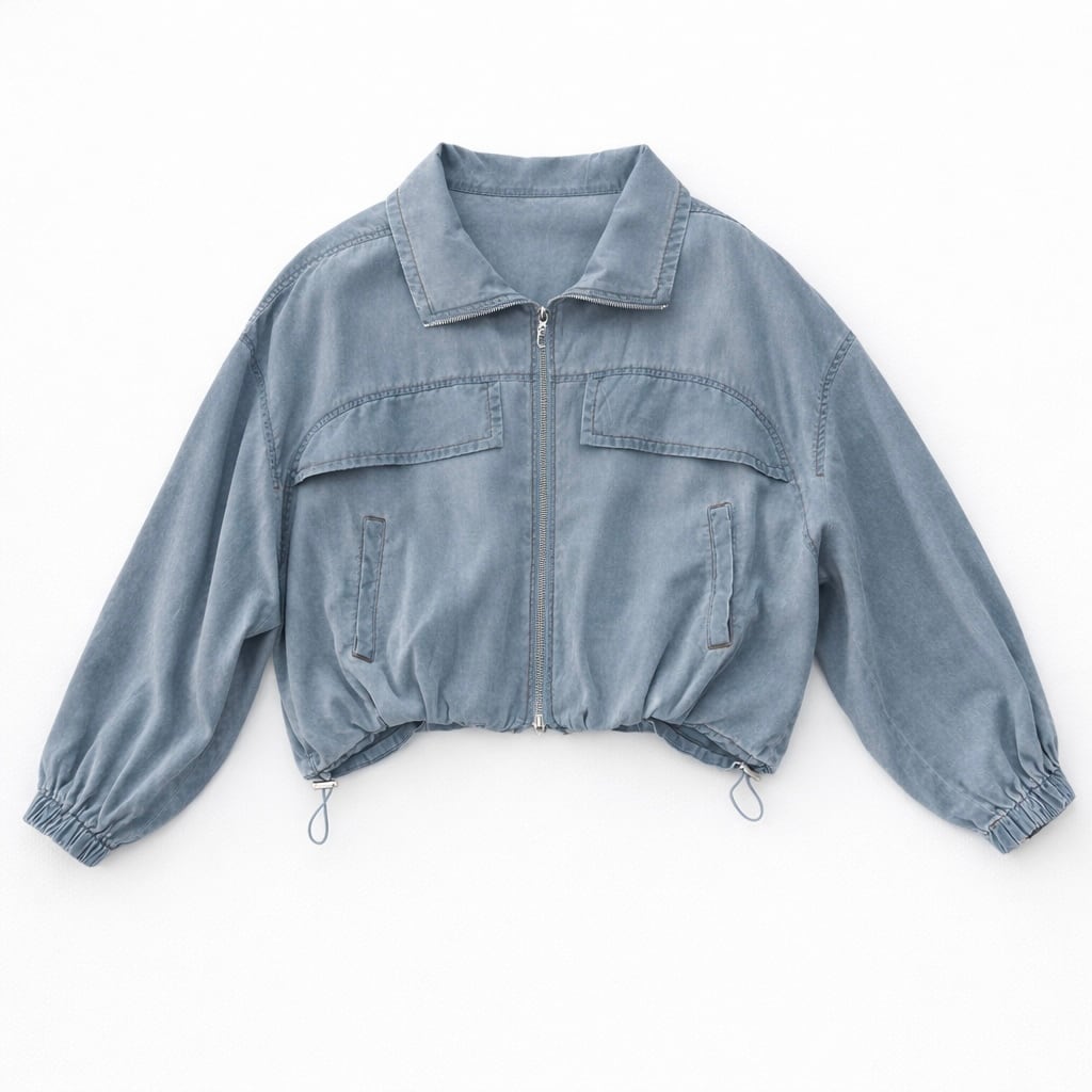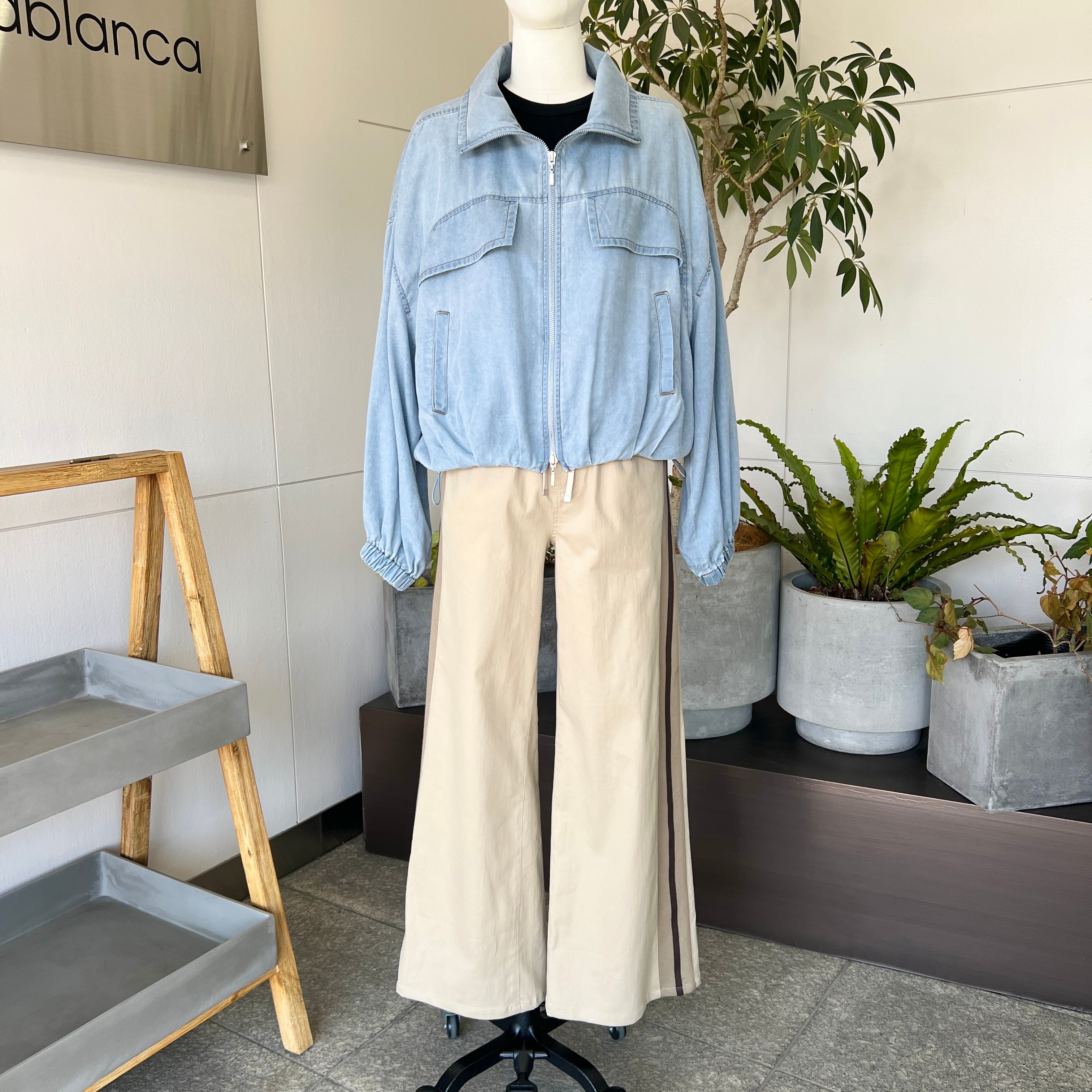 ・裾のタックで丸いシルエットがポイントのソフトデニムジップジャケットです。