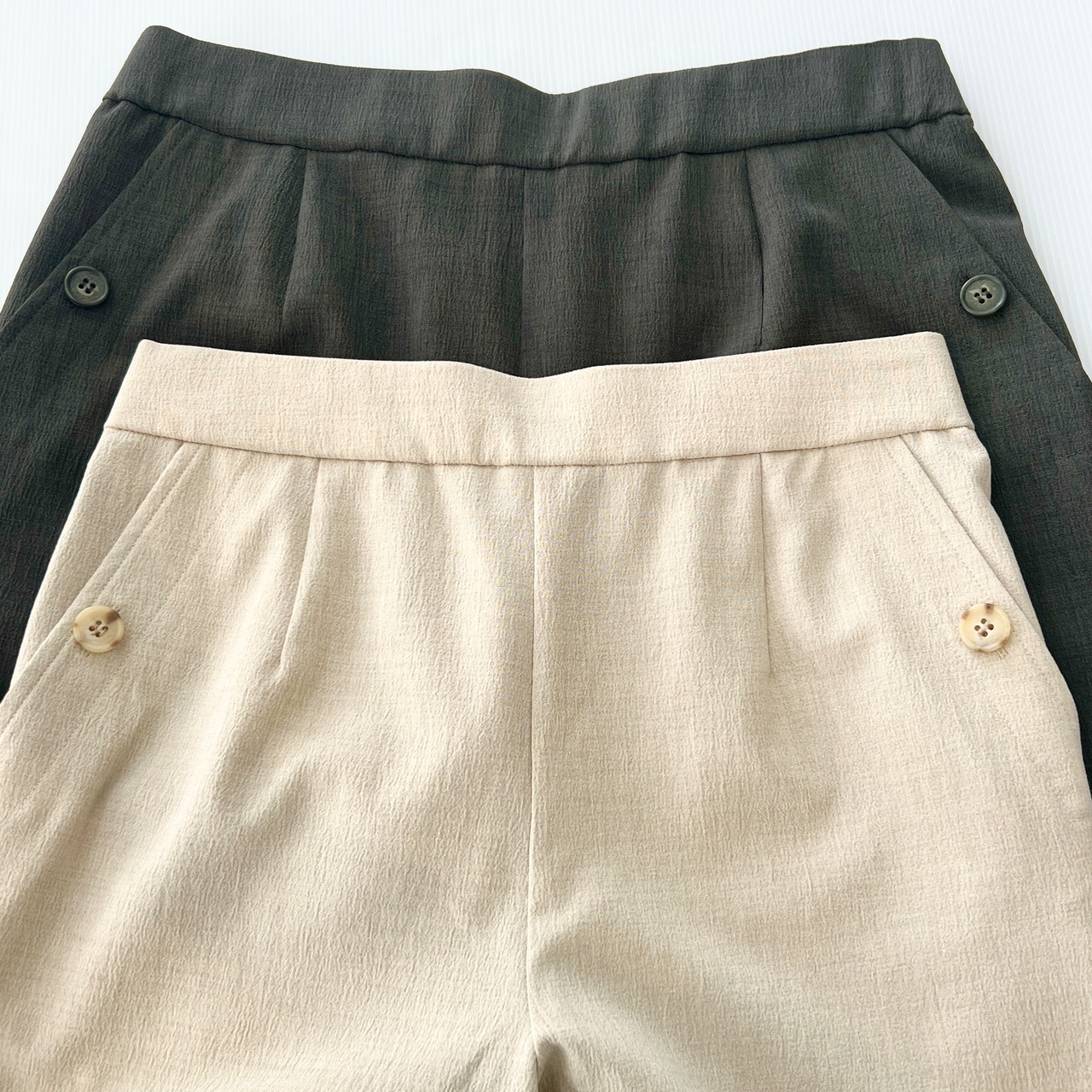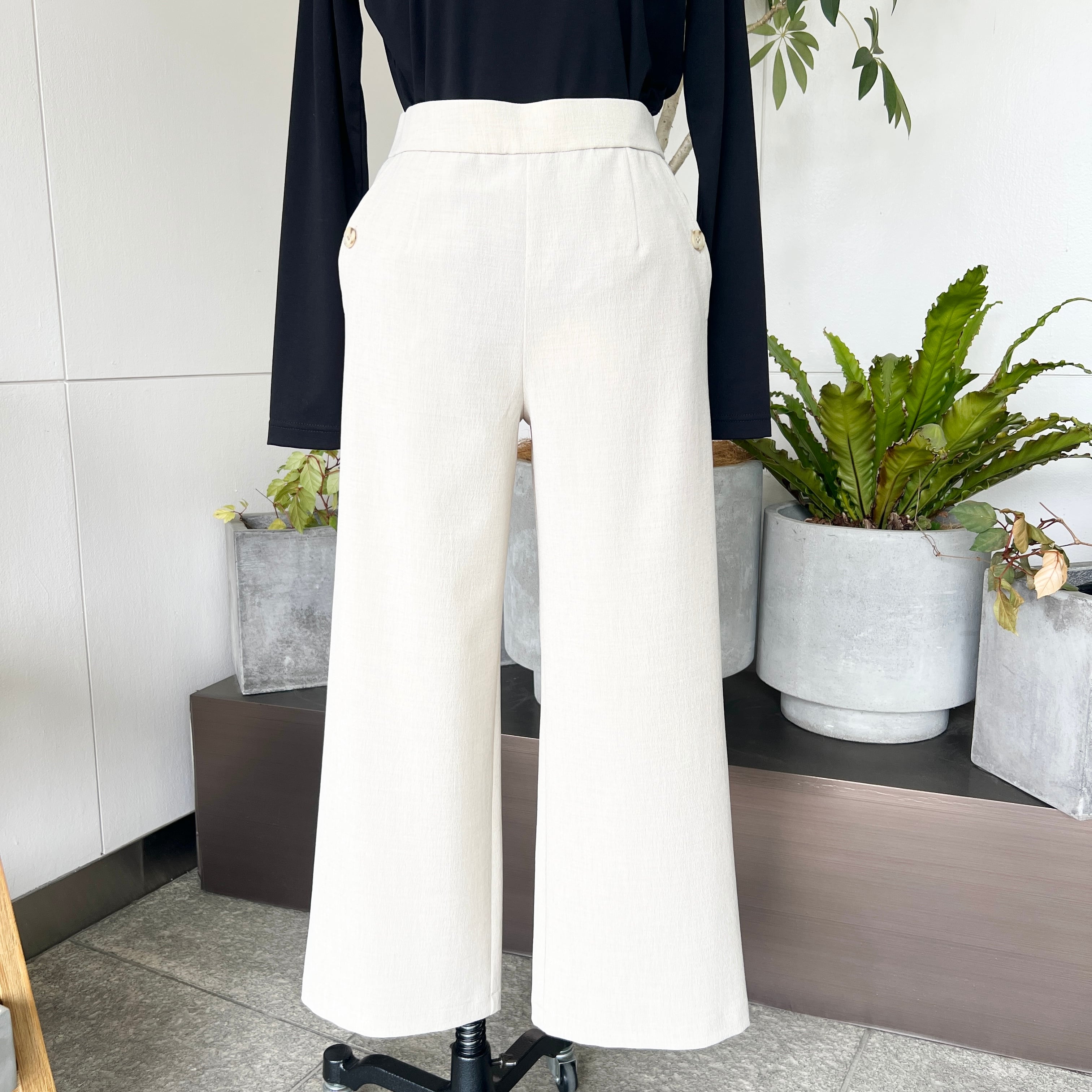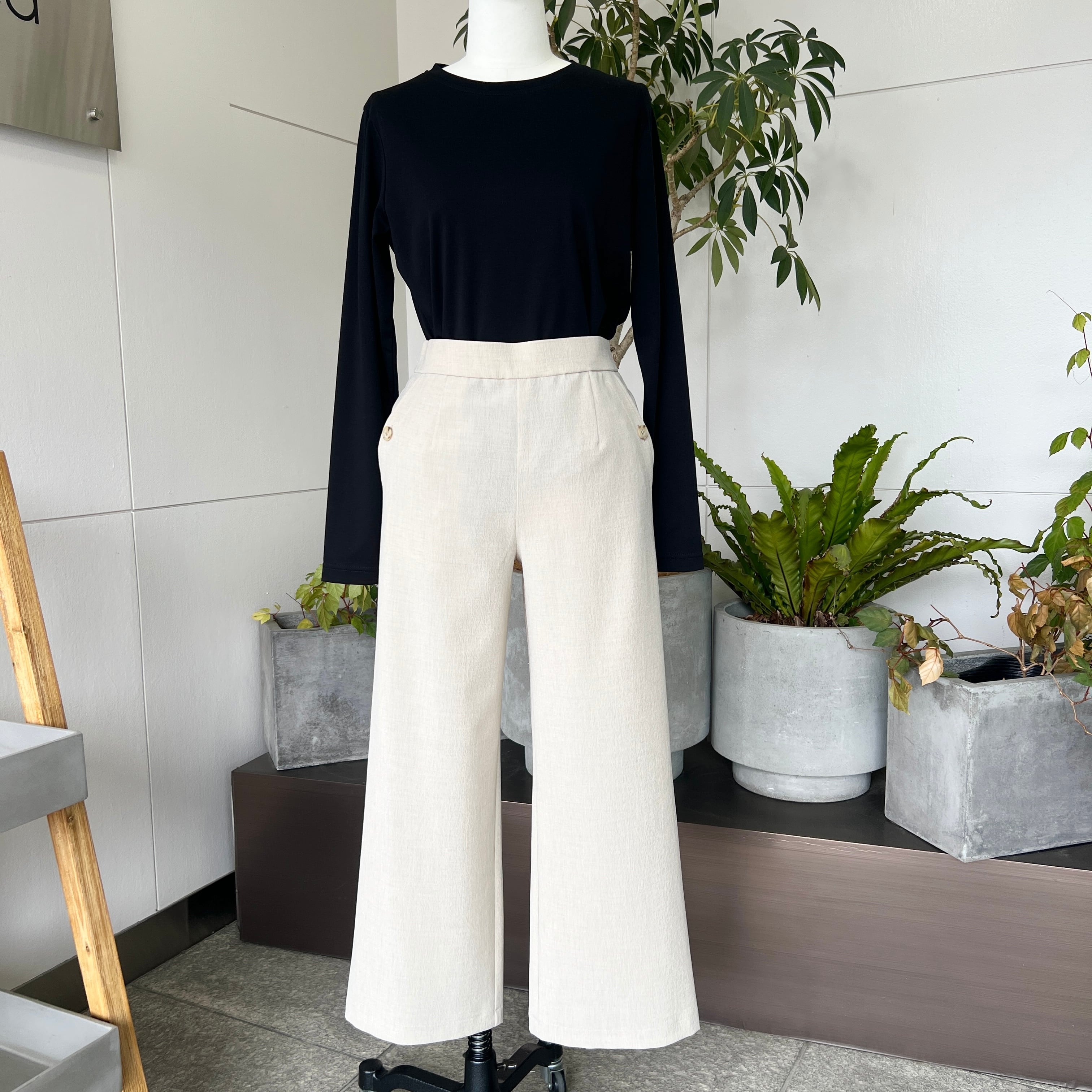 ・ポケットサイドのボタンがポイントのクロップド丈のセミワイドパンツです。