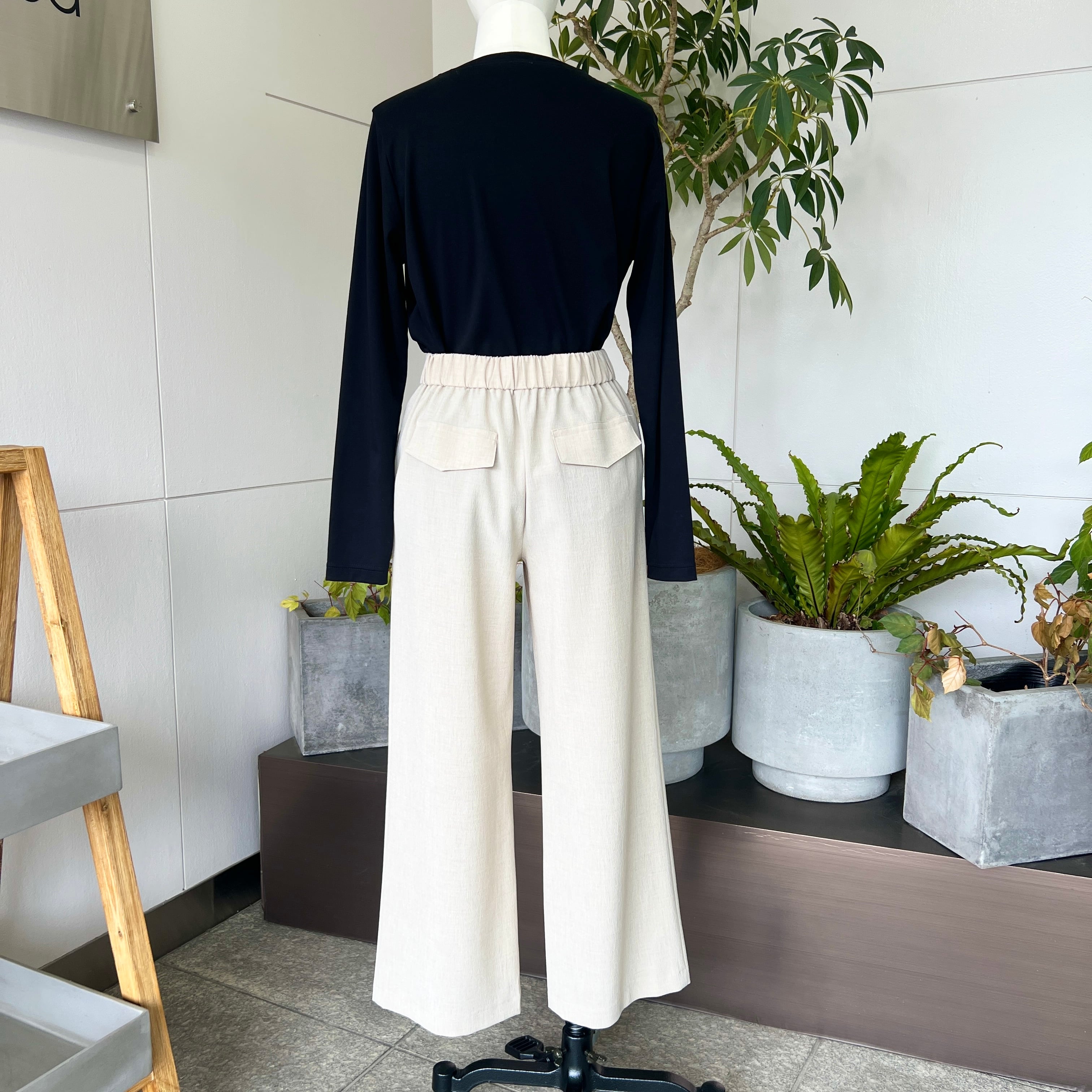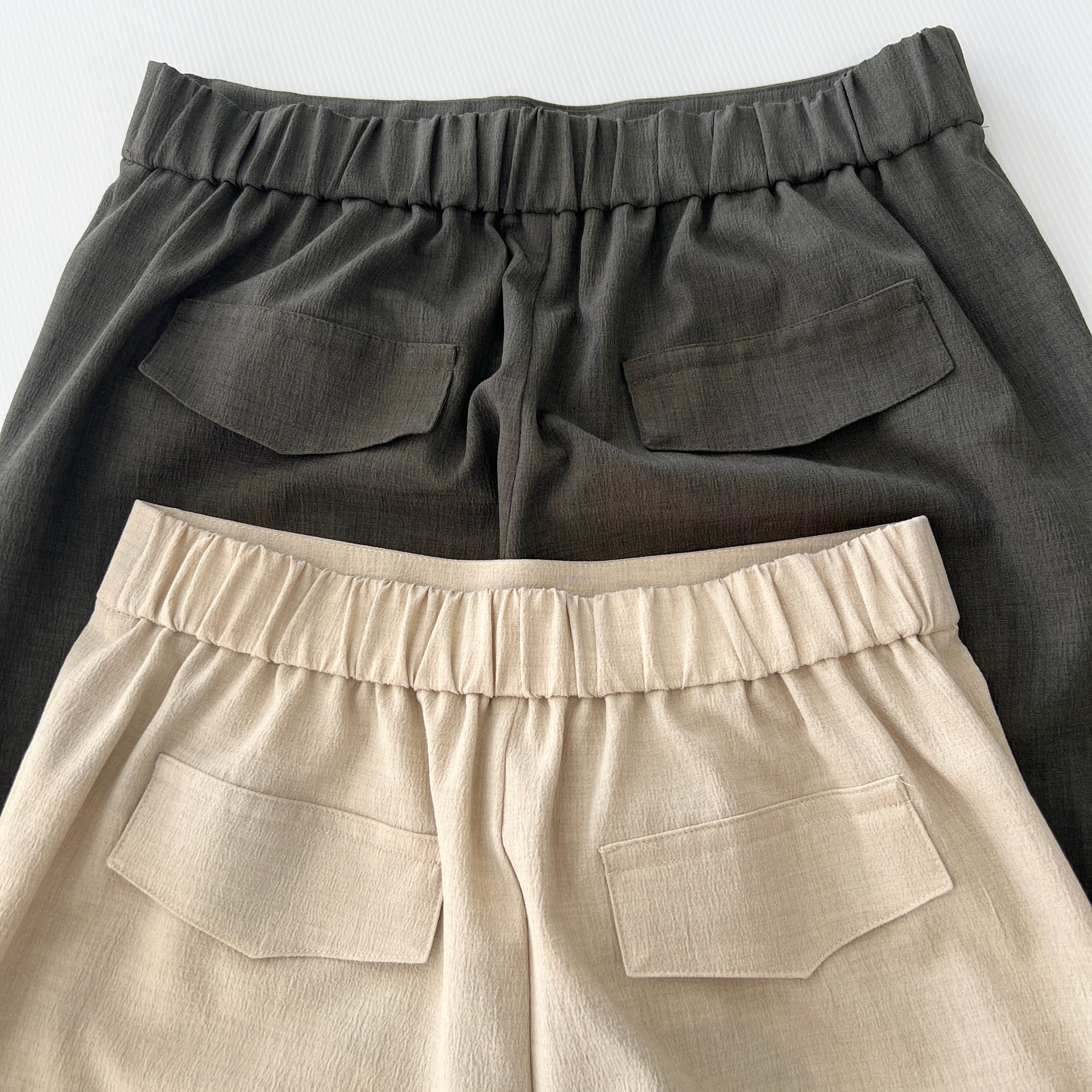 ・落ちる素材でウエストは後ろゴムで着心地はイージーで◎